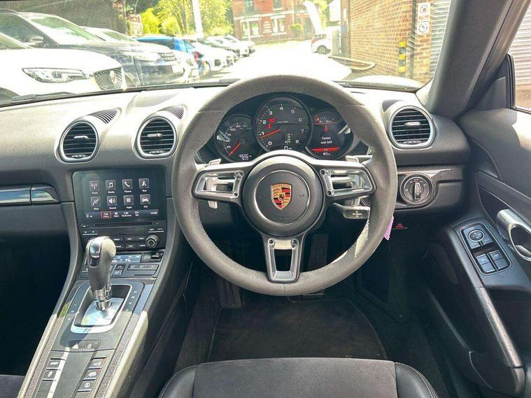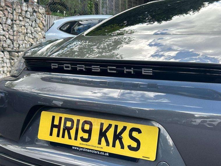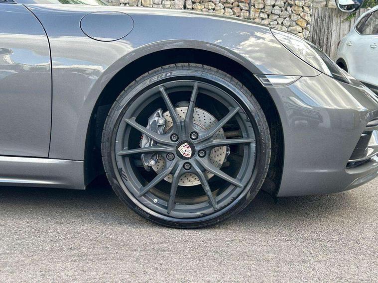 Connect Plus, Apple CarPlay, telephone module, wireless internet access, carfinder, remote vehicle status, remote service, vehicle track, Digital displays for vehicle speed, chosen gear, odometer, trip odometer and clock, Instrument cluster with central rev counter and high-resolution 4.6 inch colour display, Porsche Communication Management (PCM) including online navigation module, mobile phone preparation, audio interfaces and voice control system, 4 valves per cylinder, Aluminium block and cylinder heads, Direct fuel injection (DFI), Gasoline particulate filter, Integrated dry-sump lubrication with an on-demand oil pump, Porsche Doppelkupplung (PDK), Porsche Stability Management (PSM), ABS with extended brake functions, Turbocharger with intercooler, VarioCam Plus variable valve timing and switchable valve lift, Water cooled with thermal management, DAB Digital radio, Integrated compatible SIM including Porsche Connect Services, Wifi and music streaming, Aerodynamic wipers, Automatic headlight activation including welcome home lighting, Automatically extending rear spoiler, Body colour bumpers, Electrically adjustable heated exterior mirrors on door waist rails, aspherical on driver's side, Green tinted heat insulating glass, Heated rear windscreen, Intelligent lightweight body in Aluminium/Steel composite construction, Porsche logo on trim strip and model designation on rear apron in high gloss silver colour, Power windows with one touch operation and door seal protection, Separate auxiliary lights in the front end with LED indicators and position lights, Top tinted windscreen, Twin tract sports exhaust system with central tailpipe in stainless steel, Wide opening rear hatch with heated screen, Windscreen washer system with two wiper speeds and washer jets, 12V sockets in passenger footwell and centre console storage compartment, Adjustable fan with air recirculation and defroster functions, Clothes hooks on front seat backrests, Elevated centre console with uncovered storage compartment and closed storage compartment, Front and rear luggage compartments, Front headrests, LED reading lights, orientation, ignition lock, additionally luggage compartment and glove compartment lighting, Smooth finish leather on steering wheel rim, gear lever and door handles, SPORT button to activate dynamic driving settings for engine, transmission (with PDK), Storage compartments in each doors, Three way catalytic converter and on board diagnostics for monitoring emission control system, Two individual cup holders (integral to dashboard trim strip), Electrically controlled parking brake, Front and rear 4 piston aluminium monobloc fixed calipers, disc internally vented and cross drilled, front/rear disc diameter, brake calipers in black, Front and rear lightweight spring strut axle, Full size driver and passenger airbags, Porsche side impact protection doors with thorax airbag in outer backrest side bolster and head airbag for driver/passenger in door panel, Tyre pressure monitoring system, Alarm system with interior surveillance, Anti-theft wheel bolts, Auto start/stop function including coasting (in connection with PDK), Engine immobiliser with in key transponder, central locking and remote control, Tyre sealing compound and electric air compressor kit,