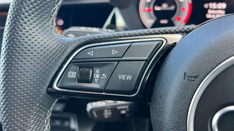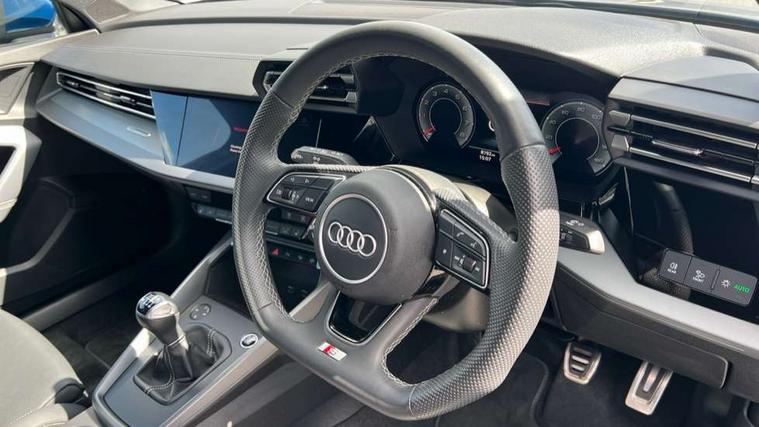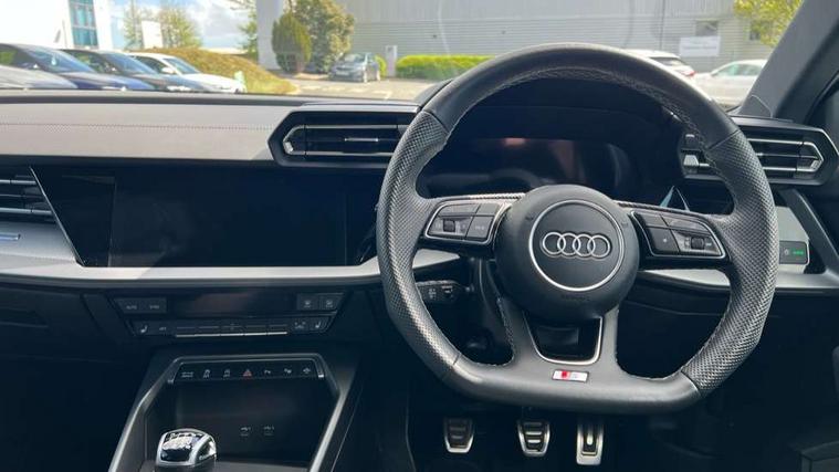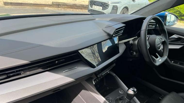 Adjustable speed limiter, Audi drive select, Audi smartphone interface with app store includes wireless Apple carplay, Android auto and Amazon alexa integration, Audi virtual cockpit plus - 12.3" full HD resolution dynamic digital instrument cluster, Automatic start/stop system with recuperation, Bluetooth interface, Camera based traffic sign recognition, Collision avoidance assistant, Cruise control, Distraction and Fatigue warning, e-Call (emergency call), Electromechanical power speed sensitive steering, Lane departure warning system, MMI Navigation Plus with high resolution 10.1" colour touch screen display, Park Assist with parking system Plus, Service indicator, Trip computer, Voice control system with natural language interaction, Sports suspension, Audi Phonebox light with wireless charging, Audi sound system - 10 loudspeakers including centre loudspeaker and subwoofer, DAB Digital radio, USB ports with charging function in the rear, Acoustic glass windscreen, Aluminium window trim, Auto dimming frameless rear view mirror, Body colour exterior mirrors, Chrome exhaust tailpipes, Electrically adjustable/heated/folding/auto dimming door mirrors with integrated LED indications + kerb view function for passenger side, Exterior model badging, Front and rear side air inlets in grained matt black with dark liquid chrome frame, Front electric windows, Front radiator grill in high gloss dark chrome, Heat insulating glass windscreen, Illuminated door sills with aluminium inserts at the front with S logo, LED 3rd brake light, LED daytime running lights, LED headlights with LED rear lights and dynamic rear indicators, Light and rain sensors, Privacy glass - dark tinted rear window, rear door and side windows, Rear boot, Rear diffuser and grill in grained matt black with inlay in dark liquid chrome, Rear electric windows, Rear side wing doors, S line bumpers, Side S line emblems on front wings, Side sill trim in dark liquid chrome, 12V socket and storage compartment in front centre console, 3 seat bench in 2nd row, 3 spoke flat bottomed multi-function leather sport steering wheel, 3-zone deluxe automatic air conditioning, 4 way electrically adjustable lumbar support for driver and front passenger, 40/20/40 split folding rear seat bench, Black cloth headlining, Front and rear centre armrest in artificial leather, Front and rear centre armrest in artificial leather with contrasting stitching on armrests and instrument panel, Front and rear headrests, Front/rear floor mats, Heated front seats, Height and reach adjustable steering wheel, Manual boot compartment lid, Manually adjustable front seats, Rear cup holders, S badging on the steering wheel, Seat side bolsters, Single front passenger seat, Stainless steel pedals and front footrest in black, Twin leather upholstery with front sports seats S embossed logo, Aluminium interior elements pack - A3, Multi-coloured LED interior lighting package - A3, 3x3 point rear seat belts, Driver and front passenger airbag with passenger airbag deactivation, Electronic Stabilisation Control (ESC) including ABS, ASR and EDL, First aid kit with warning triangle and 2 safety vests, Front side airbags with head airbags and interaction airbag, Hill hold assist, Pre-sense front with pedestrian and cyclist detection, Seatbelt monitoring, Tyre pressure loss indicator, Anti theft alarm, Anti-theft wheel bolts, Electronically operated child locks, Immobiliser, Remote central locking with safelock, Dash & door Inlay in dark aluminium Spectrum,