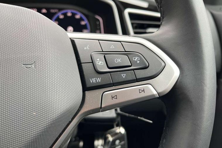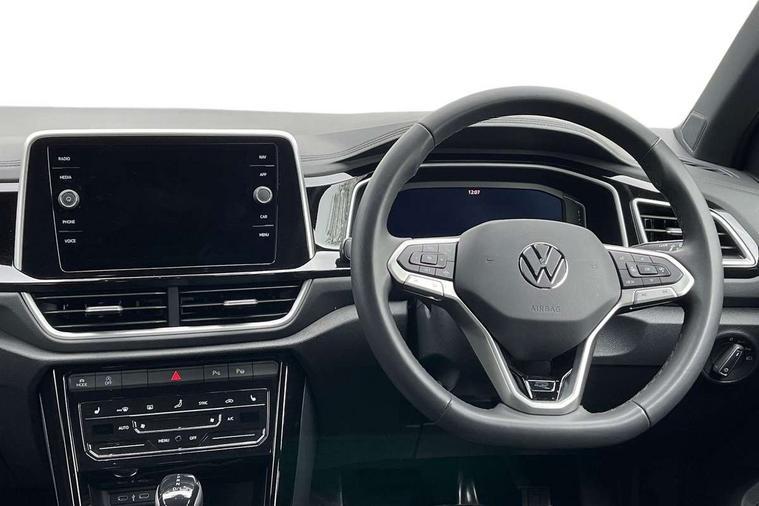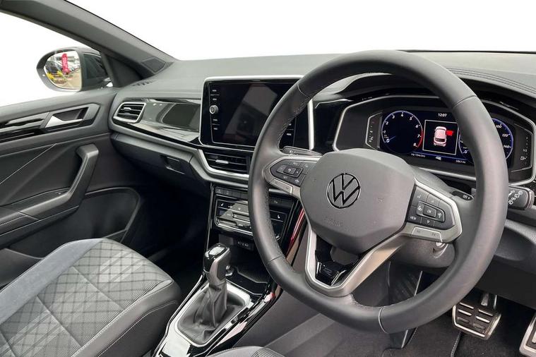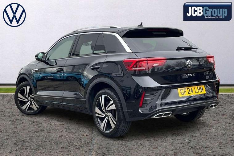 10.25" Digital cockpit pro, Advanced driver attention and drowsiness monitor, Bluetooth mobile phone interface, Emergency call service, Lane keeping system Lane Assist, Modified key software - reduce switch off time for key status change to Long no motion, Online services, Park assist including front and rear parking sensors, Service interval indicator, Tailgate/trunk lid release from outside, Think blue trainer driver tips and journey analysis, Warning sound and light for front seatbelts unfastened, Wireless app connect, Battery regeneration during braking, Start/stop function with battery regeneration, Diversity antenna for FM reception, Music playback - MP3, WMA and AAC files, Premium USB cable in choice of either Apple or Android smartphone compatibility, SD card slot, Simultaneous pairing of 2 compatible mobile devices, Title and cover art display, We Connect and We Connect Plus functionality, 3rd brake light, Auto dimming interior rear view mirror, Automatic hazard lights activation under emergency braking, Automatic headlight control with LED separate daytime running lights with coming/leaving home function, Electrically adjustable and heated door mirrors, Extended roof spoiler, Exterior mirrors aspherical on driver side, convex on front passenger side, External USB type C socket and charging sockets, Front windscreen wiper with intermittent wipe and 4 position delay, Heated rear window, LED rear combination lamps, LED rear number plate lights, Power windows with comfort operation and circuit breaker, R-Line design body coloured bumpers, Rain sensor, Rear exhaust tailpipe, Rear fog light on one side and reversing lights on both sides, Rear side wing doors, Rear wash/wipe with intermittent wipe setting, Remote electrically foldable door mirrors, puddle lights and reverse activated passenger's door mirror, 12V power socket in centre console, 3 rear head restraints, 3 seat bench in 2nd row, 4 load lashing points in luggage compartment, Air care climatronic air conditoning system with active combination filter and 2-zone temperature control, Black roof lining, Chrome plated radiator grille inserts, air vent surrounds and light switch surrounds, Door and side trim panel with leatherette insert, Front + rear carpet mats, Front centre armrest, Front cupholders x 2, Front footwell illumination, Front reading light, Front scuff plates with R Line logo, Front seat back storage pockets, Glove compartment door with light, Instrument lighting, white adjustable panel illumination, Interior ambient lighting and surround lighting, Interior light delay, Isofix child seat preparation, Leather gearshift handle, Load-through provision with cup holder when folded down ('Unsplit rear seat bench, split folding backrest, with centre armrest), Luggage compartment lighting, Single front passenger seat, Stainless steel pedals, Storage compartment in left and right luggage area, Storage compartment in rear doors, Storage compartments in driver and front passenger doors, Sunvisors with illuminated vanity mirrors, Variable boot floor, height adjustable and removable, Driver assistance pack without proactive passenger protection - T-Roc, 3 point height adj front seatbelts + pretensioners, 3 point seatbelts in outer rear with ECE label, ABS, Child locks on rear doors, City emergency braking and pedestrian monitoring, Driver and front passenger airbag with front passenger airbag deactivation, Driver and front passenger safety-optimised head restraints, Drivers seatbelt reminder, Electronic parking brake, Electronic Stability Control (ESC) inc EDL (Electronic Differential Lock) and ASR (Traction Control), Front and rear passengers curtain airbag system including front side airbags, Hill start assist, Predictive pedestrian protection, Rear disc brakes, Two tone horn, Tyre pressure loss indicator, Volkswagen roadside assistance, Anti-theft alarm system with interior monitoring, backup horn, and towing protection, Remote central locking with SAFELOCK, radio remote control with 2 remote control folding keys, Trims for alloy wheels,