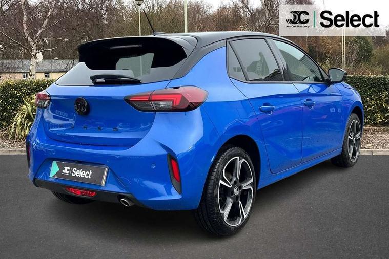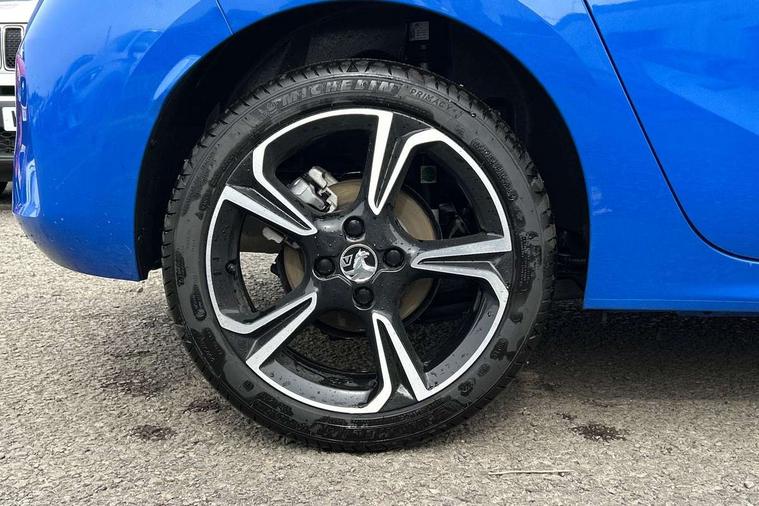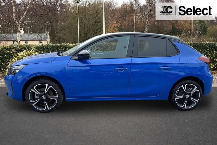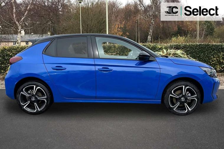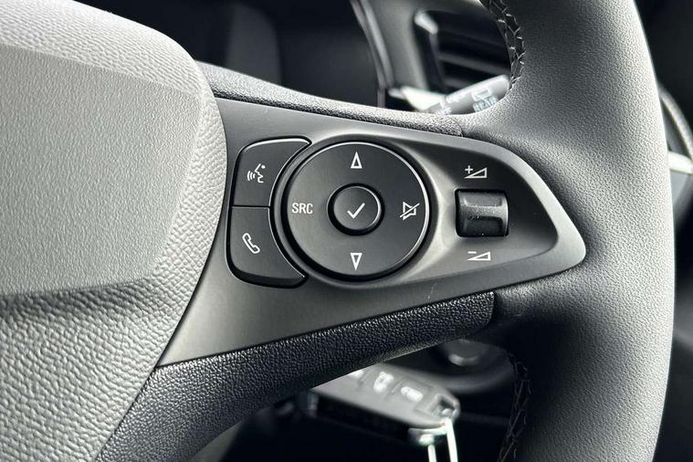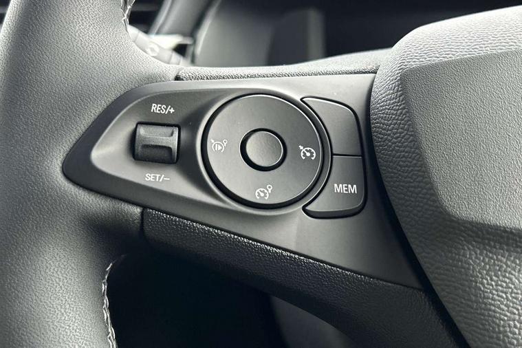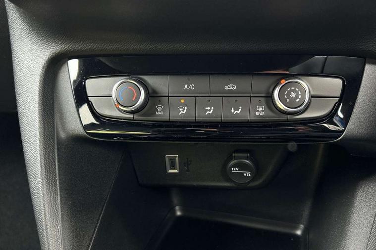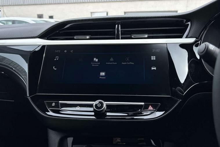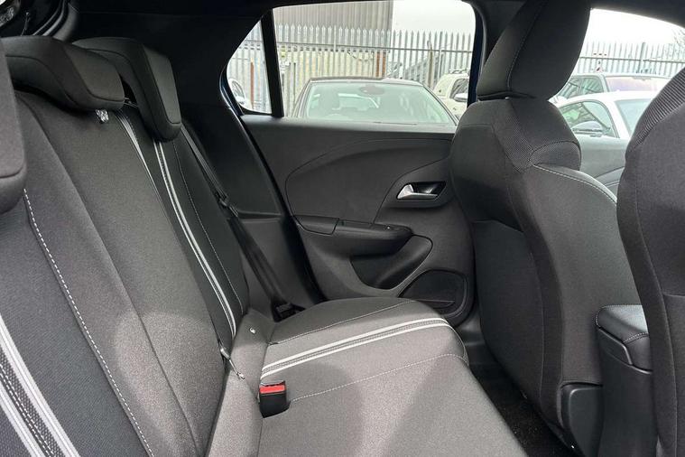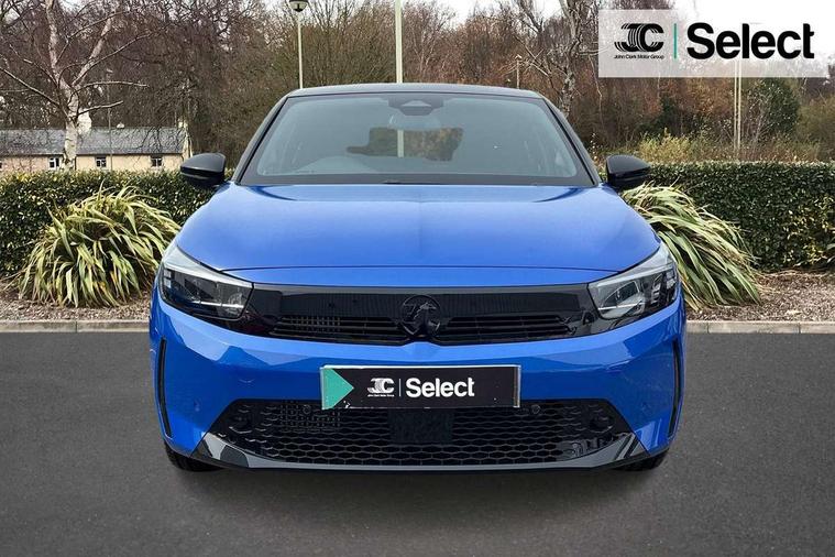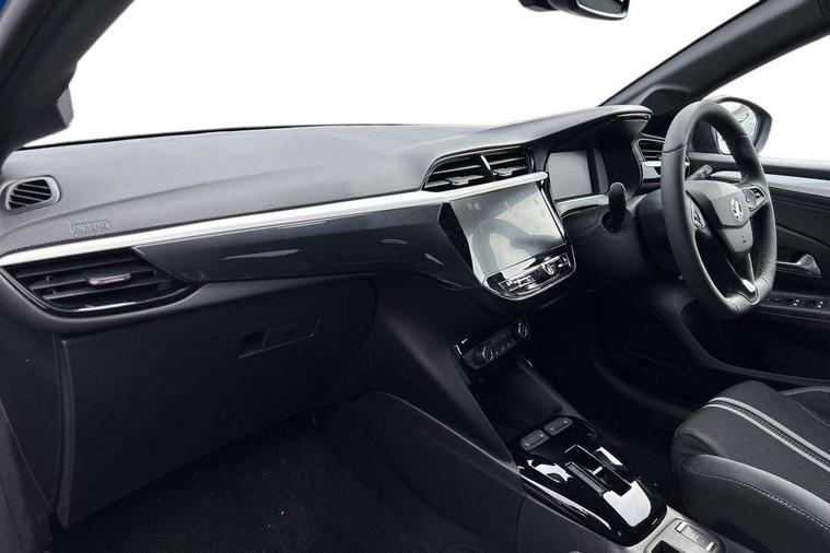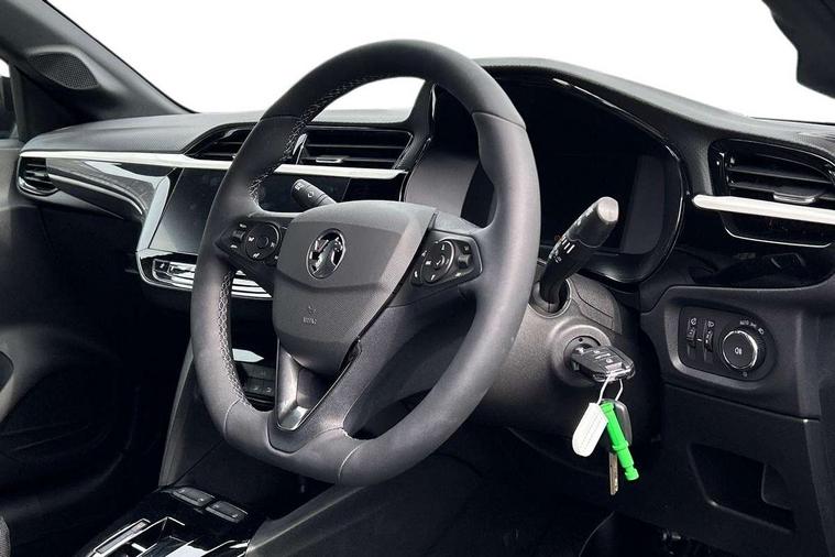 130 degree rear view camera, 7 inch digital instrument cluster display, Auto tele unit 3S vehicle communication system, Breakdown call (b-call), Central facia display with digital clock, outside air temperature and audio information, Cruise control with intelligent speed limiter, Drive modes (sport, normal, eco), Driver drowsiness alert system, E-call, Engine oil life indicator, Front and rear parking sensors, Front camera system, Instrumentation - Speedometer, rev counter, low fuel gauge warning light + water temperature gauge warning light, Lane departure warning, Lane keep assist, Lights on audible warning, Multi function trip computer, Pre conditioning of vehicle temperature, RDS with traffic programme, Remote check of battery level programming and charge management, Service indicator, Smartphone projection, Speed sensitive power steering, Speed sign recognition, Start/stop system, Tailgate, Vauxhall connect box, Vehicle status and information, Wireless Apple CarPlay/Android Auto, Electronic returnless fuel system, Petrol Particulate Filter, Under body shield for aero, AM/FM stereo radio, Bluetooth connectivity with A2DP audio streaming function (Advanced audio distribuition profile), DAB Digital radio, Multimedia with 10-inch touchscreen, Six speakers, Steering wheel audio, phone and cruise controls, USB type C port, Automatic headlight control system, Black door mirror housings, Black Griffin logo and vizor frame, Black lower side window mouldings, Body colour door handles, Body colour front and rear bumpers, Bonnet/headlight/wiper structure, Corsa lettering in tailgate, Dark tinted rear side windows + tailgate window, Electrically adjustable and heated door mirrors, Electrically operated front and rear windows with safety auto reverse and one touch up/down facility, Electrochromic automatic anti-dazzle rear view mirror, Flexible roof mounted aerial, Glazed tailgate and heated rear window with wash/wipe facility, Hazard warning lights, Headlamps for left side traffic, High beam assist, High gloss black finish B pillar, High gloss black honeycomb lower grille with black badging, Intelli-LED headlights, LED 3rd brake light, LED daytime running lights, LED tail lamp, Manual folding door mirrors, Rain sensitive windscreen wipers, Rear fog lamp, Rear reversing lights, Rear side wing doors, Rear wiper, Solar heat absorbing windscreen and windows, Sports front and rear body styling for upper and lower bumper design, Two speed windscreen wipers with variable intermittent wipe, Windscreen and side window demist vents, 12V power sockets, 3 bench rear seats in 2nd row, 4 speed fan with illuminated controls, 4 way manual co-driver seat reach fore/aft, backrest upright/recline, 6 way manual adjustable driver seat height up/down, reach fore/aft, backrest upright/recline, 60/40 split folding rear seat, Air conditioning with air recirculation facility, Alloy effect sport pedals, Banda cloth upholstery, Black headliner, Cabin particulate filter - removes dust, airborne particles and pollen, Driver/passenger sunvisors with vanity mirrors + covers, Four adjustable facia vents, Front centre armrest with storage, Front cupholder, Front headrests, Height adjustable head restraints, Illuminated glovebox with lid, Interior courtesy light, Internal chrome door handles, LED boot light, Polyurethane gear knob/lever, Reach and rake adjustable steering column, Rear cupholder, Rear headrests, Right hand drive (RHD), Single dome lamp with dual front reading lamps, Single front passenger seat, Sports style front seats, Standard floor mats, Two litre open door pockets, Vegan leather steering wheel, 3 rear 3 point seatbelts, Anti-lock braking system (ABS), Automatic emergency braking with pedestrian detection, Cornering brake control, Deactivation switch for front passenger's airbag, Drag torque control, Driver and front passenger airbags, front seat side impact airbags, full size curtain airbags, EBD - Electronic brakeforce distribution, Electrical child lock system in rear door latch, Electronic parking brake, Electronic Stability Programme (ESP), Emergency brake assist, Forward collision alert, Front seatbelt unfastened audible warning and warning light, Front ventilated disc brakes - 282mm, Hill hold and start system, ISOFIX child seat mountings incorporating top tether anchor points located on second row rear seats, Rear disc brakes - 249mm, Seatbelt pretensioners, Single tone horn, Straight line stability control, Traction control, Tyre deflation detection system, 2 keys one folding with integral remote, Electronically protected audio equipment, Engine deadlock and immobiliser, Freewheeling door locks, Locking wheel nuts, Remote control central locking, Remote control security alarm system, Remote locking fuel filler flap, Steering column lock, Visible vehicle identification number, Silent black fascia with blanc banquise insert, 17" Diamond-cut hi-gloss black alloy wheels,