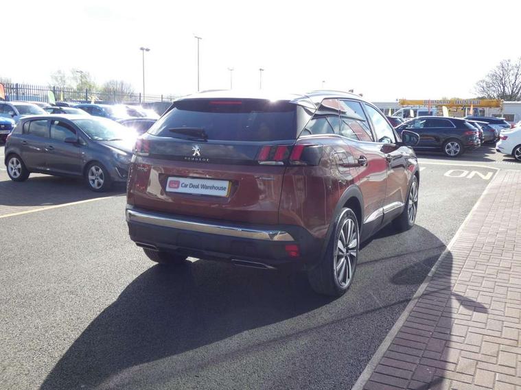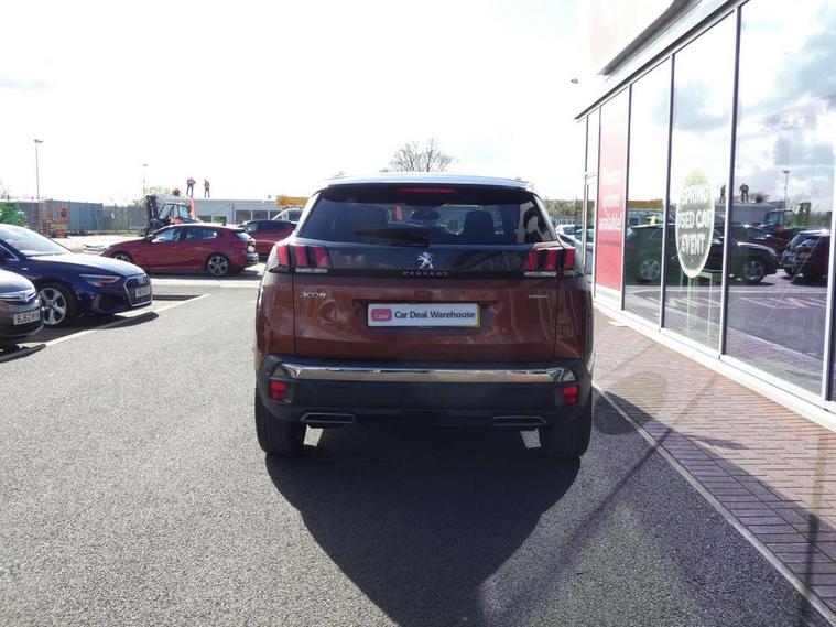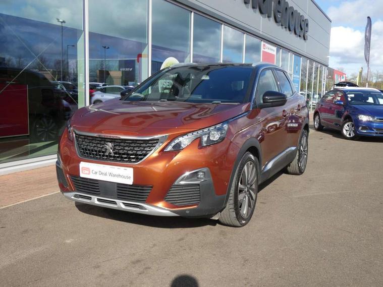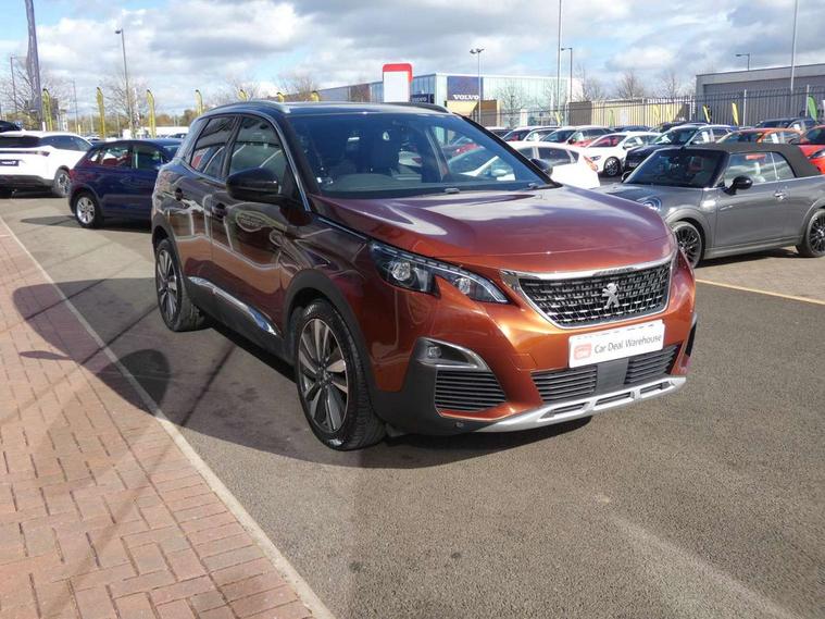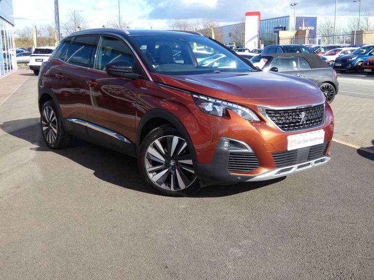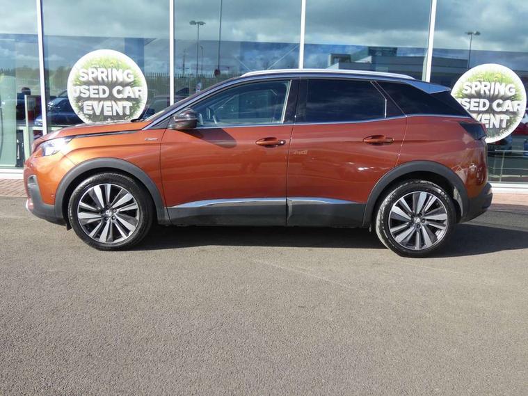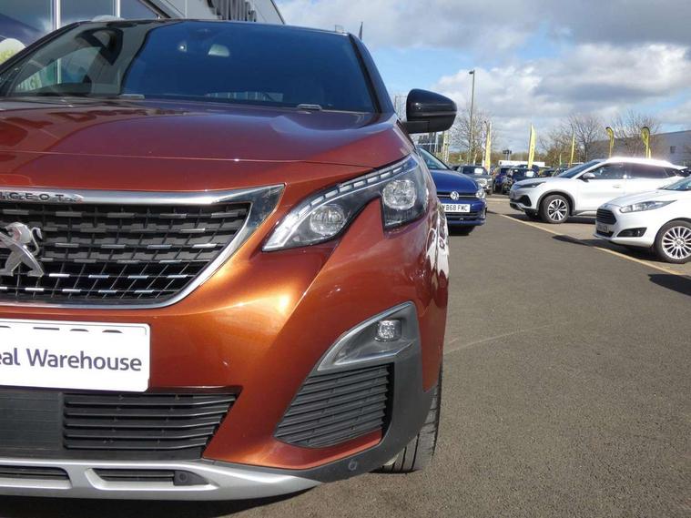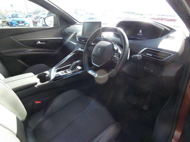 'Lights On' Reminder warning buzzer, 3D connected navigation + voice control + Peugeot connect SOS and assistance, Bluetooth telephone facility, Digital clock, Electric impulse automatic gearbox control, Exterior temperature indicator with ice warning, Front and rear parking sensors, Lane departure warning system, Mirror screen with mirror link, apple carplay and android auto, Multi function trip computer, PEUGEOT i-Cockpit with 8.0" capacitive touchscreen in centre console, PEUGEOT i-Cockpit with compact sports steering wheel, PEUGEOT i-Cockpit with configurable 12.3" Head-up digital instrument panel, Smartphone charging plate, Speed limit recognition and recommendation, Sports button, Diesel particulate filter, Dynamic stability control and electronic anti-skid system, DAB Digital radio, Steering wheel mounted controls, USB socket, 2 X Rear number plate lights, Aluminium longitudinal roof bars, Auto self levelling headlights, Automatic hazard light activation upon heavy brake application, Automatic triggered rear windscreen wiper in reverse gear, Black front wing trim with chrome detail, Body colour door handles, Body colour rear spoiler with stainless steel edging trim, Body coloured bumpers, Body protectors (bottom of front and rear bumpers + wheel arches + protection at bottom of doors) in black, Chrome front fog light trim, Chrome rear bumper facia, Chrome side window trim, Dark tinted rear side windows + tailgate window, Door mirror mounted LED Peugeot lion approach lights, Electric operated/heated door mirrors, Front windscreen wiper with magic wash cleaning system, Full LED headlights with LED fog lights with static cornering function, sports front bumper and grille, Gloss black B and C pillar and aerodynamic deflector trim, Gloss black rear cluster connecting strip, Gloss black windscreen surround, GT Line emblem in satin copper (front wings and tailgate), Headlights left on audible warning, Heated rear windscreen with integrated antenna, LED daytime running lights, LED sequential scrolling front indicators, LED side indicator lights integrated into door mirrors, Lion grey front bumper scuff plate, Nera black door mirrors, One touch electric front/rear windows with pinch protection, Panoramic opening glass roof, Power folding door mirrors with blind spot detection indicator and auto dipping function in reverse gear, Radiator grille in chrome edge trim with chequered design and black 'PEUGEOT' lettering, Rear LED Peugeot signature 'Claw Effect' lights, Stainless steel roof arches, Twin exhaust tailpipe, 1/3 to 2/3 split folding rear seats, 12V Sockets in dashboard, rear cabin and load area, 2 cupholders in front centre console, 2 rear reading spotlights, 230V socket on rear centre console, 2x Rear coat hooks, 3x Isofix child seat fittings in the front passenger and outer rear seats, 4 Grab handles retractable and damped, Aikinite stitching in armrest, gear lever and dashboard facia, Automatic gear lever in satin chrome, Blue ambient lighting for connecting zone, Blue ambient lighting to front door panels, central storage and cupholders, Blue ambient lighting to head up instrument panel, Centre front armrest with butterfly wing opening and illuminated storage compartment, Dual zone automatic climate control, Electric power steering with reach and rake adjustable steering column, Fixing rings 4 in load compartment, Flocked front door pocket interior with blue ambient lighting, Flocked glovebox interior, Fold flat front passenger seat with picnic table, Footwell illumination, Front interior light with 2 reading spotlights and rear interior light with timer, Front passenger seat manual adjustments, Front seat back map pockets, Gear shift indicator, Illuminated glovebox, Illuminated vanity mirrors, Imila cloth/Leather upholstery, LED interior lighting in storage spaces and load area, Mistral floor mats with Aikinite contrast stitching, Mistral full grain perforated leather steering wheel with aikinite stitch detail and satin chrome 'GT Line' emblem, Rear armrest with ski flap and two cup holders, Rear centre console ventilation system, Reclining front seats, Roof LED interior lighting, Roof lining - Mistral black, Satin chrome dashboard trim, Satin chrome digital instrument panel and touchscreen trim, Satin chrome front door panel recess trim, Satin chrome interior door handles, Satin chrome scorpion's tail and toggle switch trim, Seatbelt not fastened audible and visual alert for front seats, Seatbelt unfastened on the move audible and visual alert for front and rear seats, Stainless Steel Scuff Plates, Two position boot floor, Driver sport pack - 3008 Auto, Safety pack - 3008, Safety Plus Pack - 3008, Visibility pack - 3008, 3x Rear three-point retractable seatbelts with force limiters in the outer rear seats, Adaptive driver and front passenger airbags with passenger airbag deactivation function, Anti lock braking system + Electronic brake force distribution, Driver and front passenger side airbags, Electric child locking functionality on rear windows and doors, Electric parking brake, Front and rear curtain airbags, Front optimised safety headrests and 3 x rear retractable headrests with height adjustable, Front three point retractable seatbelts with pre tensioners and force limiters, Front ventilated disc brakes and rear disc brakes, Height adjustable front seatbelts, Hill start assist, Tyre pressure sensor, Anti theft alarm, Automatic door locking when moving off, Central locking button on dash, Deadlocks, Electric tailgate with Peugeot open & go system, Electronic immobiliser, Locking wheel bolts, Remote control central locking with two plip keys, Brumeo fabric Dashboard, front and rear door panel finish, 19" Washington two tone diamond cut alloy wheels, Space saver spare wheel,