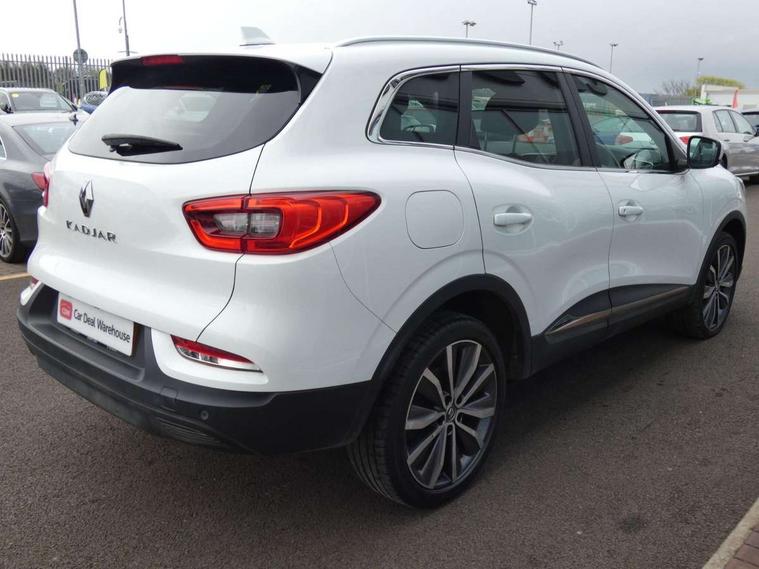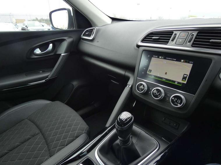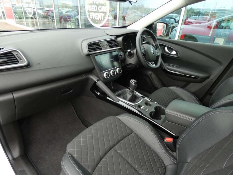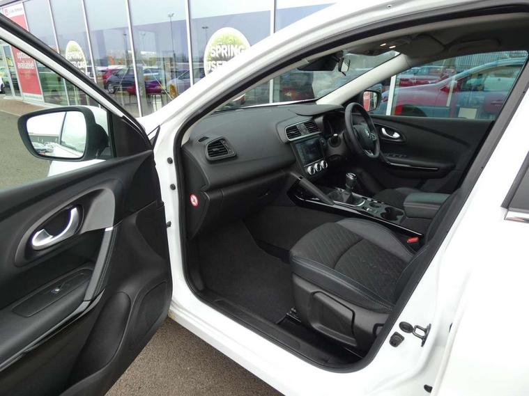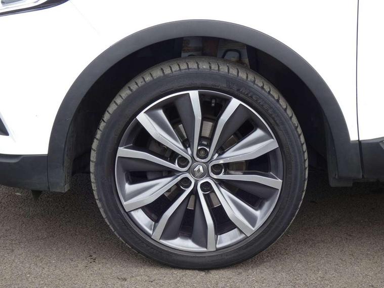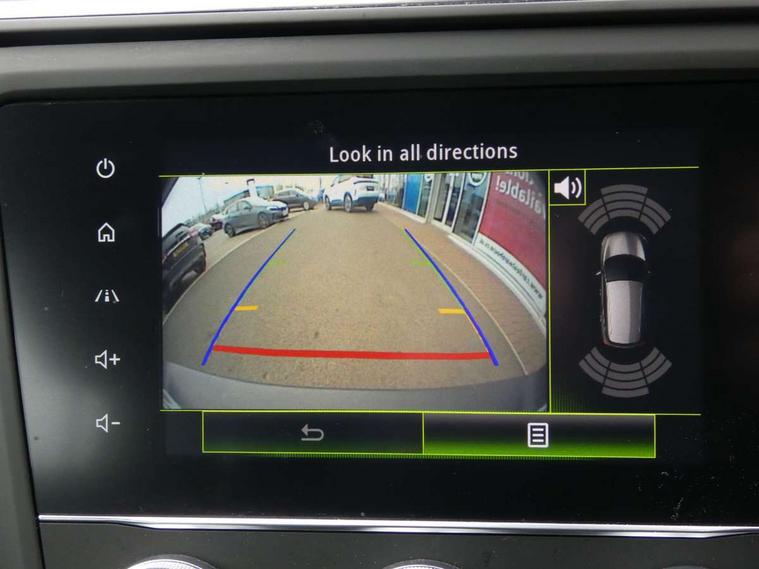 Cruise control + speed limiter, Digital speedometer with 7 TFT screen, Door/boot open warning light, Eco mode, Exterior temperature indicator, Front and rear parking sensors with rear parking camera, Gear change indicator, Lane departure warning system, Low fuel level warning light, Multi function trip computer, Oil level gauge, PAS, R-Link 2 Multimedia system + 7" touchscreen, TomTom + West European Map, DAB/FM/AM radio, bluetooth + hands free, USB/AUX, voice control, Rev counter, Smartphone integration, Gasoline particulate filter, 4x35W speakers with 3D sound, Fingertip controls for audio system, Two rear USB sockets, Automatic headlights, Automatic high/low beam, Automatic windscreen wipers with variable speed adjustment, Body colour door handles, Body coloured bumpers, Body coloured door mirrors, Bodyside mouldings with chrome inserts, Chrome roof rails, Chrome window surround, Day/night rear view mirror, Electric adjustable/heated/folding door mirrors, Extra tinted glass in rear windows and tailgate, Front and rear electric windows, Front and rear towing rings, Front fog lamps with cornering function, Halogen headlights, Heated rear windscreen, Integrated C shape indicators with side repeaters, Integrated fuel filler cap, LED daytime running lights, LED rear fog light, Rear wiper, Shark fin antenna, 12V socket in front, 3 height adjustable rear headrests, 3 seat rear bench, 60/40 split folding rear seat, Accessory power point, Adjustable dashboard illumination, Air recirculation system, Centre rear armrest with cup holder, Driver sunblind with illuminated mirror and ticket holder, Driver's seat with lumbar adjustment, Driver/passenger reading lights, Dual zone automatic climate control, Easy life quick folding rear seat, Faux leather wrapped steering wheel, Front courtesy lights, Front footwell illumination, Front/rear floor mats, Height adjustable driver's seat, Height adjustable front headrests, Height adjustable passenger seat, Height/reach adjust steering wheel, Illuminated boot, Illuminated centre console, ISOFIX child seat anchorage points attached on outer rear seats, Multi positional boot floor, Pollen filter, Rear courtesy lights, Rear passenger air vents, Sliding front centre armrest, Storage glovebox, Synthetic leather/cloth upholstery, ABS/EBD, Driver/passenger 2 stage auto adaptive airbags, Electronic parking brake, Emergency brake assist, ESP with ASR and UCL (understeer control logical), Front and rear curtain airbags, Front lateral airbags, Front seat belts warning, Height adjustable front seatbelts with double pretensioners, Hill start assist, Manual passenger airbag deactivation function, Rear seatbelt warning indicator, Side impact protection, Three point rear center seatbelt, Traction control, Tyre pressure monitor, Anti-drill door locks/ignition barrel, Deadlocks, Insurance approved Cat 1 alarm system, Insurance Approved Immobiliser, Key card hands free with walk away lock function, RAID (Renault Anti-Intruder Device) with automatic door locking, Remote central locking, 19'' Zeus diamond cut alloy wheels,