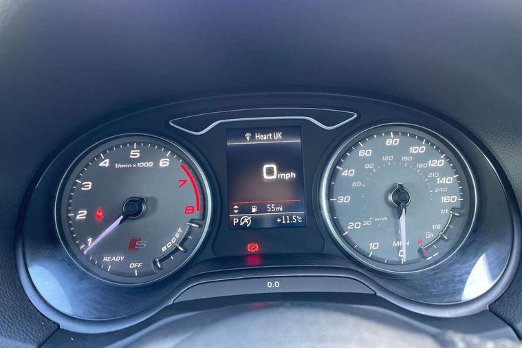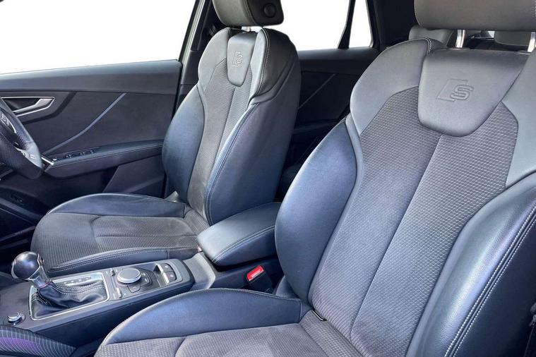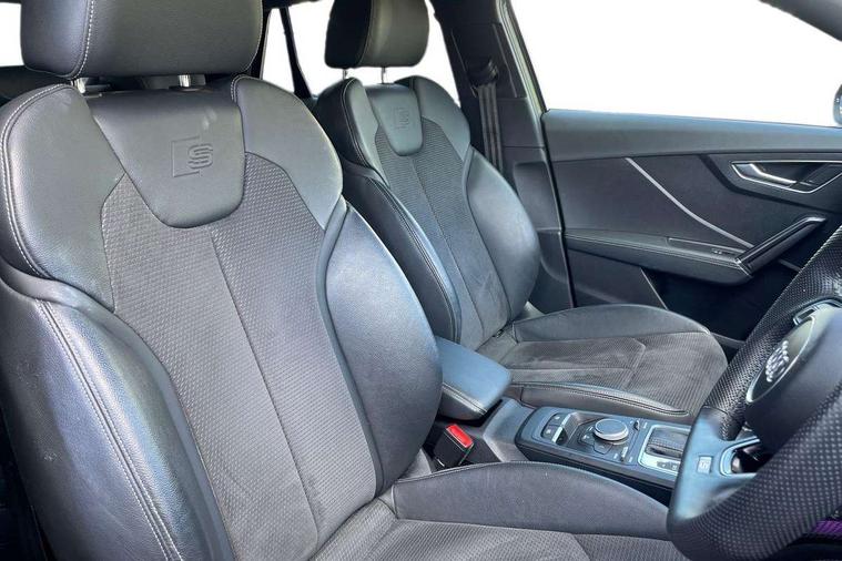 Audi drive select, Audi smartphone interface, Automatic start/stop system with recuperation, Bluetooth interface includes bluetooth audio streaming, Cruise control, Driver's information system - 3.5" colour display, Instrument dials with S logo, MMI SD card integrated nav with 3D map display, dynamic route guidance with TMC, MMI search, natural voice recognition and myAudi special destinations, Power operated tailgate, Progressive steering, Service interval indicator, S sports suspension with lowered by 20mm, 2 x SDXC card reader, Audi music interface - apple iPod, apple iPhone, USB storage media, compatible MP3 players, 2 x USB charging points and 1 x Aux-in, CD Drive, DAB digital radio and AM/FM radio, MMI radio plus with 7" colour MMI screen and MMI controller, Black window trims, Electrically adjustable and heated door mirrors with integrated LED side indicators, Enhanced rear spoiler, Exhaust tailpipes in black, Front and rear electric windows, Front windscreen with grey tinted sunband, Headlight washers, Interior mirror, LED headlights with LED rear lights + dynamic rear indicators, LED indicator lights, Manual folding door mirrors, Privacy glass - dark tinted rear and rear side windows from B-pillar backwards, Rain and light sensors, Rear wiper, S design body styling - underbody protection, SQ2 - front bumper with S design inlets, rear diffuser in silver and roof spoiler, S design radiator grille with horizontal struts and SQ2 logo, 3 spoke flat bottomed high multi-function leather sport steering wheel with gearshift paddles, 60/40 split folding rear seat bench, Black cloth headlining, Dual zone electronic climate control, Floor mats with contrast stitching, Front centre armrest, Front headrests, Front sport seats with S embossed logo, Height/reach adjust steering wheel, Illuminated door sill trims with S logo, ISOFIX child seat mounting for front passenger with airbag deactivation and outer rear seat including top tether attachment point for outer rear seats, Manual seat adjustment including seat height adjustment for front seats, Stainless steel pedals, Storage compartments - Glovebox, cupholder compartment in centre console, storage compartment in rear centre console, front and rear door pockets, Three rear headrests, Black styling pack - Q2, Extended interior upholstery pack - Q2, Non smoking pack - Q2, 3x3 point rear seatbelts, 6 airbags - Front, curtain and front side airbags, Electromechanical parking brake, Electronic stabilisation control including ABS, ASR and EDL, Extended and proactive pedestrian protection, Hill hold assist, Multi collision brake assist, Pre-sense front with pedestrian recognition, S model enhanced braking system, Seatbelt monitoring, Tyre pressure warning light, Warning triangle and first aid kit, Anti theft alarm, Anti theft wheel bolts, Central locking system with remote control key, Electronically operated child locks, Aluminium interior element, 19" 5 twin spoke V design alloy wheels with diamond cut finish,