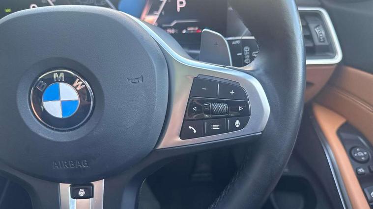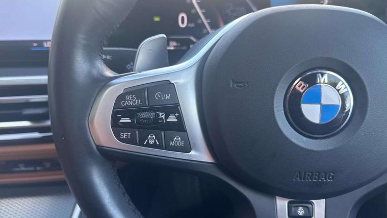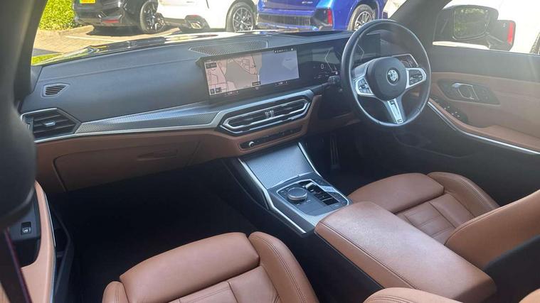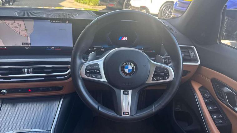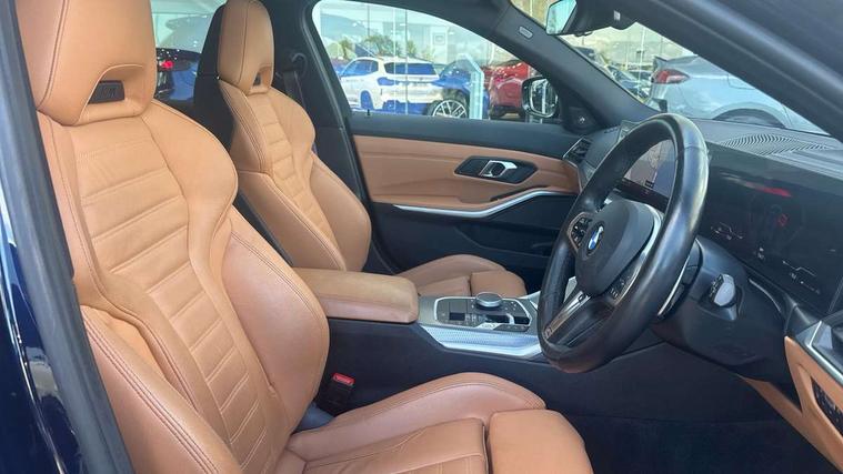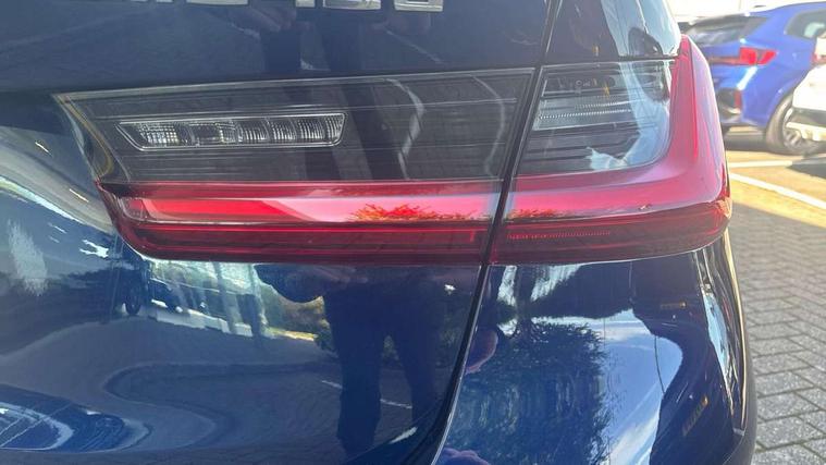 Active guard plus, Attentiveness assist, Automatic Start/stop button, BMW iDrive, BMW Teleservices, Condition based service, ConnectedDrive Services, Driving experience switch, Oil sensor for level and grade, Preparation for driver assistance, Shifting point display, Variable sport steering, 48V Mild hybrid technology, Double joint spring strut front axle, Electronic differential lock control (EDLC), Fuel tank breather system, Larger capacity fuel tank, M Sport differential, Sport automatic transmission with steering-wheel mounted gearshift paddles and launch control, DAB tuner, 3rd brake light, Acoustic glazing, Adaptive LED Headlights, Automated High beam assist, Automatic headlight beam throw control with load dependent regulating reaction, dynamic compensation of braking dive and acceleration squat, BMW emblem, engine compartment lid and tailgate, BMW individual lights shadow line, BMW M Individual high gloss shadow line with extended contents, Body colour roof fin, Door sill strips, Electric windows - front and rear, with open/close fingertip control, anti-trap facility and comfort closing, Follow me home headlight function, Front and rear bumper system with replaceable deformation elements, Front apron plastic in body colour, Fuel filler flap - right rear in body colour, Heated washer jets, High gloss shadow line exterior trim, High gloss shadow line roof rails, Illuminated bow type door handles in body colour drivers side with door lock, Interior rear view electrochromatic mirror with automatic anti dazzle function, LED daytime running lights, LED rear lights, LED turn indicator, Licence plate panel integrated into front bumper and tailgate, Matt black B-pillar finsher, Matt black window recess cover, Model designation on right side of tailgate, One piece front bumper cover including towing eye cover in body colour, Rain sensor with automatic headlight activation, Rear side wing doors, Rear wiper, Reversing lights, Side frame decorative moulding black matt, Sun protection glass, Visible exhaust tailpipe finisher, Welcome lights in interior and door handle area, 12V power socket in front storage compartment, 2 front cupholder in centre console with clamping elements and matt black inlay, 3 seat bench in 2nd row, 3 zone automatic air conditioning, 40:20:40 split folding rear seat with loading system, Ambient inside door handle light, Ambient light design projected onto the left and right entering and exiting area, Ambient lighting front and rear with 9 selectable colours, Ambient storage compartment lighting in the centre console, Anthracite headlining, Armrest integrated in front and rear door trim + front centre console armrest, BMW ID, Contour lighting in instrument panel and door trim panel, Cruise control operation in steering wheel, Driver backrest width adjustment, Folding rear centre armrest with 2 cupholders, Front and rear ambient footwell lighting, Front and rear door exit lighting (left / right), Front and rear headrests, Front and rear reading lights, Front and rear velour floor mats, Heated front seats, Height adjustable mechanically and infinitely variable steering column, Illuminated armrest storage compartment, Illuminated glove compartment, Illuminated luggage compartment, Lashing eyelets in luggage compartment, M Sport multifunction leather steering wheel, Make-up mirror lights, Single front passenger seat, Standard seat for driver and passenger with manual adjustment, Sunvisors with vanity mirrors and ticket pocket, Toolkit located in luggage compartment, Connected pack professional - 3 Series Saloon/Touring, Interior and exterior mirror pack - 3 Series Touring/Saloon, M Aerodynamics package - 3 Series Saloon/Touring, M sport exterior styling pack - 3 Series Saloon/Touring, Storage compartment pack - 3 Series Saloon/Touring, 3x3 point rear seatbelts, BMW emergency call, Child locks on rear doors, Crash sensor activating of airbags, Unlocking doors, hazard warning lights, interior light, safety battery terminal, Driver and front passenger with seat occupancy detection for driver's and passenger side, Driver and passenger side airbags, body protection at side and airbags deploy from seat backrests, Dynamic brake control, Dynamic stability control + (DSC+) - Anti-lock Braking System (ABS) with brake assist and cornering brake control + Automatic Stability Control (ASC), Dynamic Traction Control - DTC, Electric parking brake including automatic hold function and automatic release of the parking brake when driving off, Head airbags in 1st and 2nd row, head protection at side, curtain airbags open from headliner above 1st and 2nd row, M Sport brakes in red calipers, M sport seatbelt, Plastic fuel tank, Side impact protection, Tyre pressure monitoring with three level warning strategy, Ventilated front and rear disc brakes, Warning triangle and first aid kit, Alarm system, Centre lock switch, Closing system with central locking, Electronic vehicle immobiliser, Sensatec instrument panel,