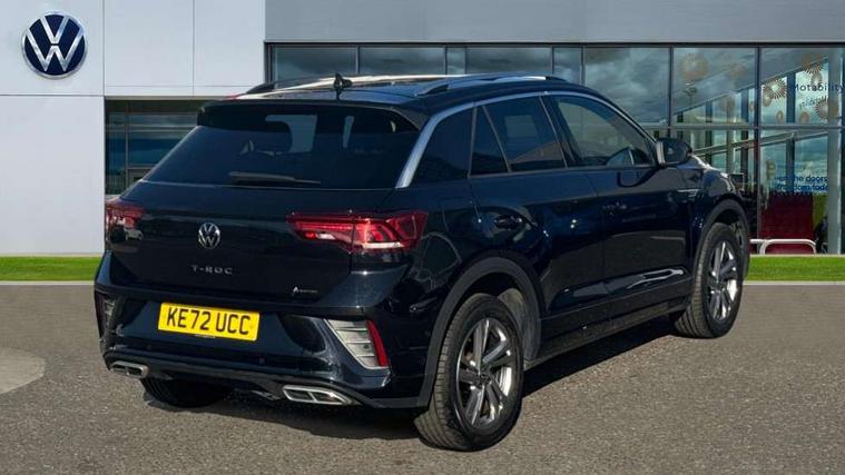 10.25" Digital cockpit pro, Bluetooth mobile phone interface, Driver alert system with fatigue detection, Driver tips and journey analysis, Emergency call service, Lane keeping system Lane Assist, Modified key software - reduce switch off time for key status change to Long no motion, Online services, Park assist including front and rear parking sensors, Service interval indicator, Tailgate/trunk lid release from outside, Think blue trainer driver tips and journey analysis, Warning sound and light for front seatbelts unfastened, Wireless app connect, Battery regeneration during braking, Four wheel drive, Start/stop function with battery regeneration, Diversity antenna for FM reception, Front and rear 6 speakers, Music playback - MP3, WMA and AAC files, Premium USB cable in choice of either Apple or Android smartphone compatibility, SD card slot, Simultaneous pairing of 2 compatible mobile devices, Title and cover art display, We Connect and We Connect Plus functionality, 3rd brake light, Auto dimming interior rear view mirror, Automatic hazard lights activation under emergency braking, Automatic headlight control with LED separate daytime running lights with coming/leaving home function, Extended roof spoiler, Exterior mirrors aspherical on driver side, convex on front passenger side, External USB type C socket and charging sockets, Front windscreen wiper with intermittent wipe and 4 position delay, Heated rear window, LED Plus headlamps, LED rear combination lamps, LED rear number plate lights, LED tail lamp rear comination lamps, Power windows with comfort operation and circuit breaker, R-Line design body coloured bumpers, Rain sensor, Rear exhaust tailpipe, Rear fog light on one side and reversing lights on both sides, Rear side wing doors, Rear wash/wipe with intermittent wipe setting, Remote electrically foldable door mirrors, puddle lights and reverse activated passenger's door mirror, 12V power socket in centre console, 3 rear head restraints, 3 seat bench in 2nd row, 4 load lashing points in luggage compartment, Air care climatronic air conditoning system with active combination filter and 2-zone temperature control, Black roof lining, Chrome plated radiator grille inserts, air vent surrounds and light switch surrounds, Door and side trim panel with leatherette insert, Drawer under drivers seat, Front + rear carpet mats, Front centre armrest, Front cupholders x 2, Front footwell illumination, Front reading light, Front scuff plates with R logo, Instrument lighting, white adjustable panel illumination, Interior ambient lighting and surround lighting, Interior light delay, Isofix child seat preparation, Leather gearshift handle, Load-through provision with cup holder when folded down ('Unsplit rear seat bench, split folding backrest, with centre armrest), Luggage compartment lighting, Single front passenger seat, Stainless steel pedals, Storage compartment in left and right luggage area, Storage compartment in rear doors, Storage compartments in driver and front passenger doors, Sunvisors with illuminated vanity mirrors, Variable boot floor, height adjustable and removable, Driver assistance pack without proactive passenger protection - T-Roc, 3 point height adj front seatbelts + pretensioners, 3 point seatbelts in outer rear with ECE label, ABS, Child locks on rear doors, Driver and front passenger airbag with front passenger airbag deactivation, Driver and front passenger safety-optimised head restraints, Drivers seatbelt reminder, Electronic parking brake, Electronic Stability Control (ESC) inc EDL (Electronic Differential Lock) and ASR (Traction Control), Front and rear passengers curtain airbag system including front side airbags, Front assist with city emergency braking and pedestrian monitoring, Front seat side impact airbags, Hill start assist, Predictive pedestrian protection, Rear disc brakes, Single tone horn, Tyre pressure loss indicator, Volkswagen roadside assistance, Alarm with interior protection, Anti-theft alarm system with interior monitoring, backup horn, and towing protection, Remote central locking with SAFELOCK, radio remote control with 2 remote control folding keys, Trims for alloy wheels,