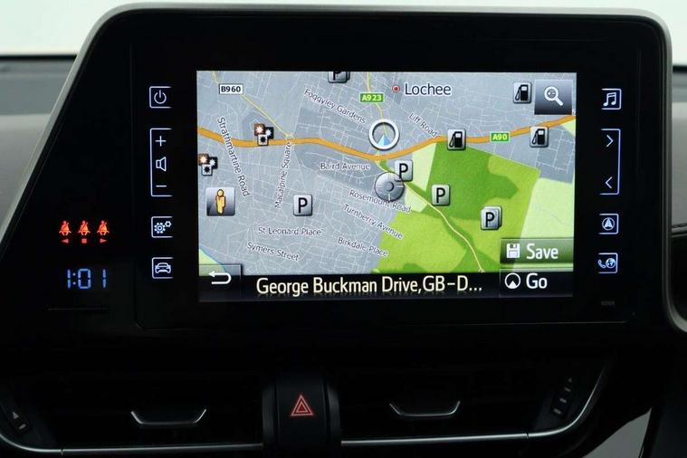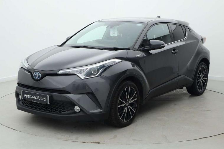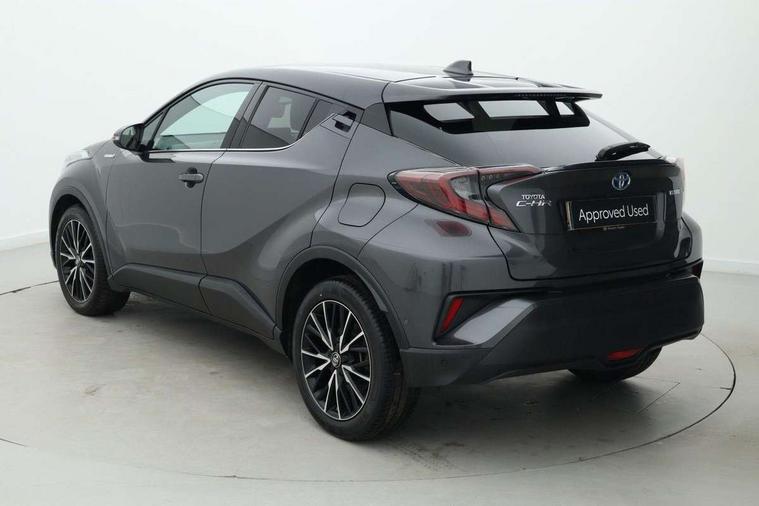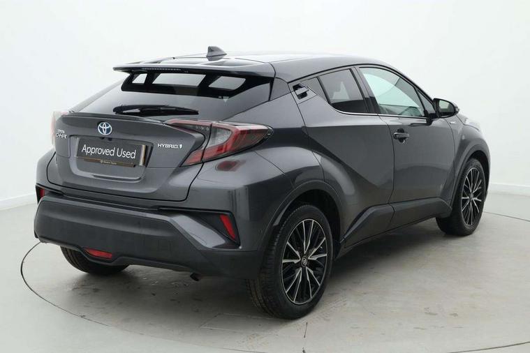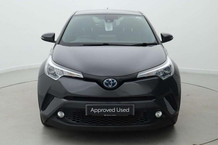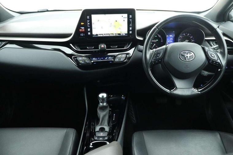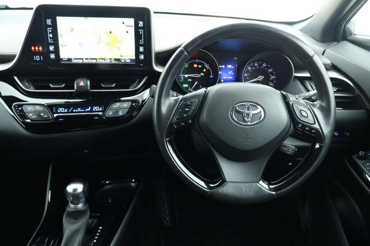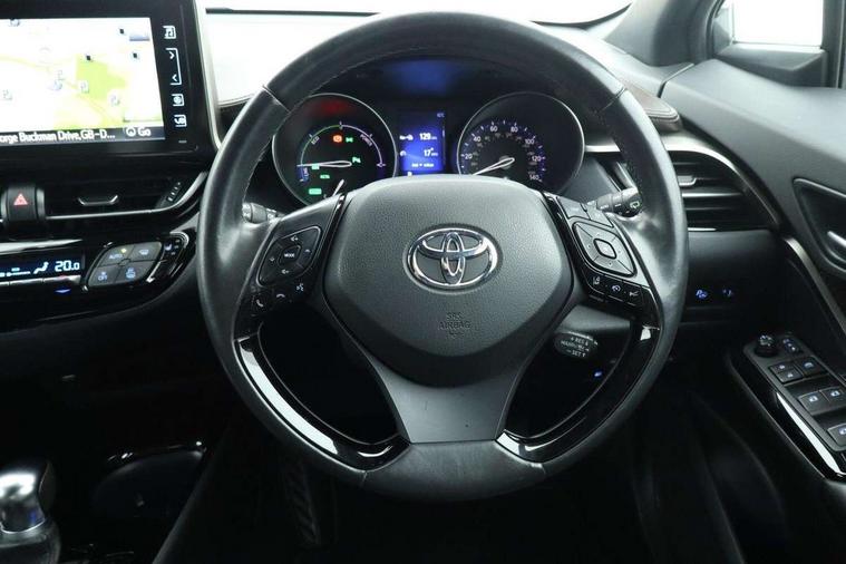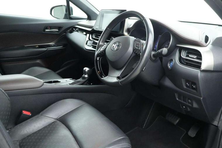 4.2" Colour TFT driver information display, 8" touch screen, Adaptive cruise control, Adjustable speed limiter, Bluetooth system, Collision prevention assist, Lane change assist and blind spot monitor, Lane departure warning system, Lights on warning, PAS, Rear cross traffic alert, Reversing camera, Touch 2 Go navigation system, Traffic sign recognition, Trip computer, Vehicle Stability Control (VSC), 6 speakers, Auxiliary input socket, DAB Digital radio, Steering wheel mounted controls, USB connection, Auto dimming rear view mirror, Auto folding mirrors, Auto high beam, Body colour door handles, Body colour heated door mirrors, Body coloured bumpers, Electric folding/heated door mirrors with integrated indicators, Follow me home headlights, Front and rear electric windows, Front fog lights, Heated rear windscreen, LED daytime running lights, LED rear lights, Privacy glass, Rain sensitive windscreen wipers, Rear spoiler, Rear wiper, Shark fin roof aerial, 12V Accessory socket, Ambient lighting, Child seat anchorage points, Chrome interior door handles, Driver/passenger sunvisors and illuminated vanity mirrors, Dual zone automatic air conditioning, Folding rear seats, Front and rear door pockets, Front centre armrest, Front cupholders x 2, Front head restraints, Glovebox illumination, Heated front seats, Height adjustable drivers seat, Illuminated door sills, Illuminated entry system, Leather gear knob, Leather upholstery, Lumbar support, Nappa leather steering wheel, Rear headrests, Tilt/telescopic steering column, Whiplash Injury Lessening (WIL) feature (active headrest) for seats, Parking pack - C-HR, 3x3 point rear seatbelts, ABS+EBD+Brake assist, Airbag deactivation switch, Driver/Front Passenger airbags, Driver/front passenger side airbags, Drivers knee airbag, ESP + traction control, Front and rear curtain airbags, Front and rear seatbelt reminder, Hill start assist control (HAC), Rear child proof door locks, Road sign information display, Toyota safety sense, Tyre pressure monitoring system, Alarm, Immobiliser, Remote central locking, Smart entry, Tyre repair kit,