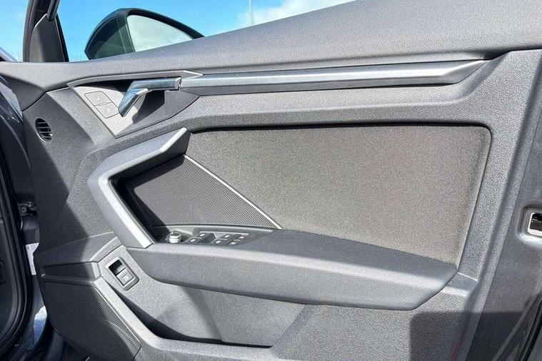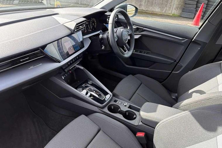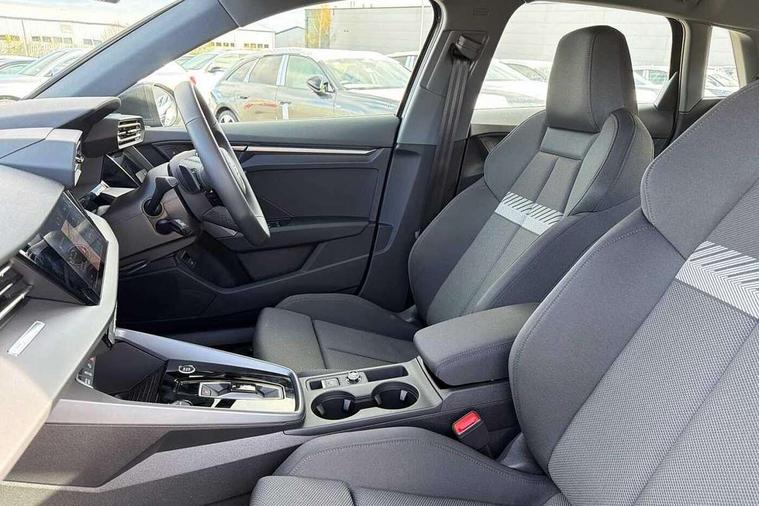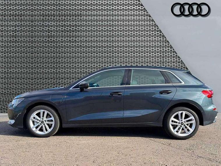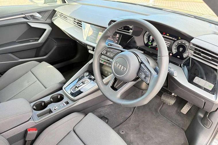 Adjustable speed limiter, Audi drive select, Audi smartphone interface with app store includes wireless Apple carplay, Android auto and Amazon alexa integration, Audi virtual cockpit plus - 12.3" full HD resolution dynamic digital instrument cluster, Automatic start/stop system with recuperation, Bluetooth interface, Camera based traffic sign recognition, Collision avoidance assistant, Cruise control, Distraction and Fatigue warning, e-Call (emergency call), Electromechanical power speed sensitive steering, Emergency assist, Lane departure warning system, MMI Navigation Plus with high resolution 10.1" colour touch screen display, Park Assist with parking system Plus, Service indicator, Trip computer, Voice control system with natural language interaction, 3 pin 10 amp domestic charging cable, CCS socket for DC charging, Charging cable for public charging, mode 3 (type 2), 32 A, Compact charging system, Industrial connector CEE 32 A, 230 V, length 1.6 m, Standard suspension, Type 2 socket for AC charging, Audi Phonebox light with wireless charging, Audi sound system - 10 loudspeakers including centre loudspeaker and subwoofer, DAB Digital radio, USB ports with charging function in the rear, 3rd brake light, Acoustic glass windscreen, Aluminium window trim, Auto dimming frameless rear view mirror, Body colour exterior mirrors, Body colour roof spoiler, Dipped beam, main beam, position light and turning light, Electrically adjustable/heated/folding/auto dimming door mirrors with integrated LED indications + kerb view function for passenger side, Exterior model badging, Front electric windows, Front radiator grill in high gloss dark chrome, Front side air inlets in grained matt black with silver frame, Heat insulating glass windscreen, LED daytime running lights, LED headlights and halogen rear lights, Light and rain sensors, Rear diffuser and grill in grained matt black with silver frame, Rear electric windows, Rear side wing doors, Rear window, rear door windows and rear side windows in clear glass, Rear wiper, 12V socket and storage compartment in front centre console, 3 seat bench in 2nd row, 3 spoke leather multifunction steering wheel with gear shift paddles, 3-zone deluxe automatic air conditioning, 4 way electrically adjustable lumbar support for driver and front passenger, 60/40 split folding rear seat bench, Black front and rear floor mats, Convenience auxiliary air conditioning, Front and rear headrests, Front centre armrest, Front door sill trims with aluminium inlay, Heated front seats, Height and reach adjustable steering wheel, Manual boot compartment lid, Manually adjustable front seats, Routine cloth upholstery with front sports seats, Seat side bolsters, Single front passenger seat, Steel grey cloth headlining, Aluminium interior elements pack - A3, LED interior lighting pack -A3, 3x3 point rear seat belts, Acoustic vehicle alerting system, Driver and front passenger airbag with passenger airbag deactivation, Electronic Stabilisation Control (ESC) including ABS, ASR and EDL, First aid kit with warning triangle and 2 safety vests, Front side airbags with head airbags and interaction airbag, Hill hold assist, Pre-sense front with pedestrian and cyclist detection, Seatbelt monitoring, Tyre pressure loss indicator, Anti theft alarm, Anti-theft wheel bolts, Electronically operated child locks, Immobiliser, Remote central locking with safelock, Black dashboard, Inlays in volcano grey fine paint finish, Tyre repair kit,