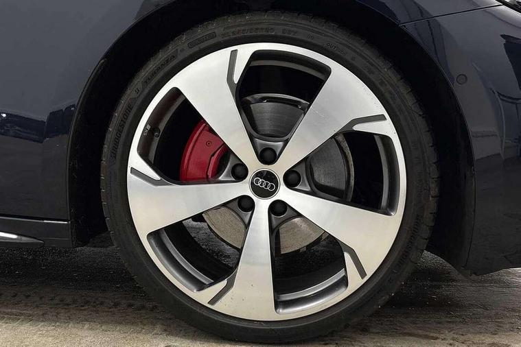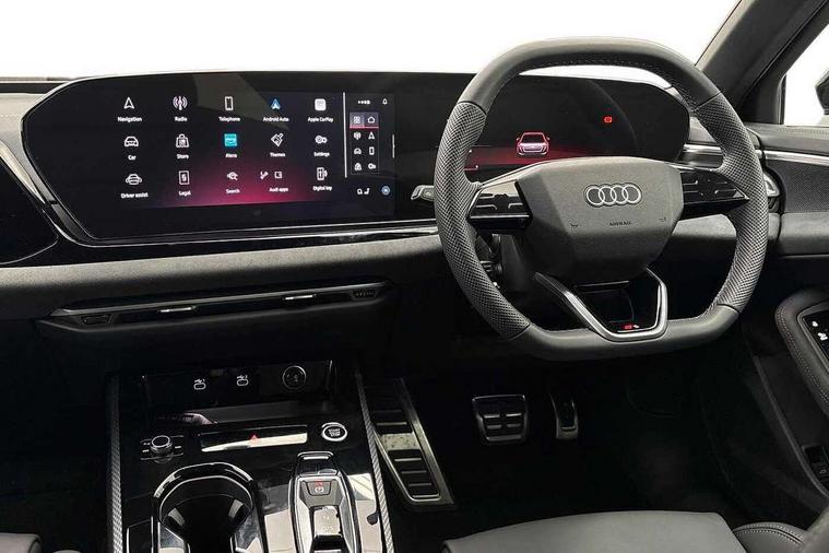 Adaptive cruise control, Advanced driver attention and fatigue montior, Audi application store, Audi assistant, Audi connect emergency call and service, Audi drive select, Audi virtual cockpit plus with 11.9" OLED colour display, Automatic start/stop system with coasting functionality, Camera based traffic sign recognition, Intersection assist, Lane change assistant with exit warning system, rear cross traffic alert and rear turn assist, Lane departure warning with emergency assist, MMI 10.9" front passenger touch display, MMI navigation plus with high resolution 14.5" OLED touchscreen colour display, Park assist plus, Parking system plus with 360 display, Progressive steering with servotronic, Smartphone interface, Swerve assist and turn assist, Top view camera, Traffic sign based speed limiter, Sports suspension lowered by 20mm, 2 USB-C ports in both the front and rear, Audi sound system impressive sound with 8 loudspeakers including centre speaker and subwoofer, 6-channel amplifier with a total output of 180 watts, DAB digital radio reception, Smartphone compartment with wireless charging, Aluminium window trims, Auto dimming rear view mirror, Black door handles, Black roof rails, Dark chrome-plated tailpipe trims, Door mirrors - electrically adjustable, heated, folding and auto dimming on both sides, Front and rear electric windows, Front door sill trims with aluminium inlays, illuminated with 'S' logo, Headlight cleaning system, High beam assist, LED daytime running lights, LED rear lights pro incl. dynamic rear indicators and illuminated light strip with animated coming and leaving home function, LED third brake light, Matrix LED headlights with eight light signatures selectable via the MMI or the myAudi app, Privacy glass, Rear and side windows with heat insulating glass, Rear side wing doors, Rear wash/wipe, S Line badges on the front wings, S line bumpers, radiator grille and diffuser in phantom black and diffuser insert in matt anthracite, White rhombus logo projection light in exterior mirrors, Windscreen with acoustic glazing, 3 rear headrests, 3 seat rear bench, 3 spoke leather steering wheel with multi-function buttons with touch control, flattened on top and bottom, with S badging and contrast stitching, 3-zone automatic climate control, 40:20:40 split folding rear seat bench with centre armrest and cup holders, Comfort front centre armrest, Electrically adjustable front seats, Front and rear floor mats, Front sport seats with integrated headrest and S embossed logo, Headlining in black cloth, Heated front seats, i-Size child seat mounting on the front passenger side and outer rear seats, i-Size and top tether on the outer rear seats, Luggage compartment lid, electrically opening and closing, Manual steering column height and depth adjustment, Memory function for driver seat, Single front passenger seat, Stainless steel pedals and footrest, Steering wheel grips in perforated leather and shift paddles, Ambient lighting package plus - A5, Black styling package plus - A5, 3x3 point rear seat belts, Acoustic vehicle alerting system, Convenience key with safelock, Driver airbag, Electric child safety locks, First aid kit with warning triangle and vests, Front emergency brake assist, Front passenger airbag, Front passenger airbag deactivation, Hill hold assist, Occupant detection in rear seat area, Proactive passenger protection system for front, sides and rear, Red brake calipers, Seat belt monitoring with rear seat occupant reminder, Side airbags in front and rear with head airbag system and front interaction airbag, Tyre pressure loss indicator, Anti theft alarm, Anti-theft wheel bolts, Keyless Go, Accent surfaces and control buttons in gloss black, Black dashboard with contrast stitching, Softwrap in Dinamica with contrast stitching, Upper and lower interior elements in dinamica microfiber, 20" 5 arm fold design Audi sport alloy wheels in silk matt grey and gloss turned finish, Tyre repair kit,