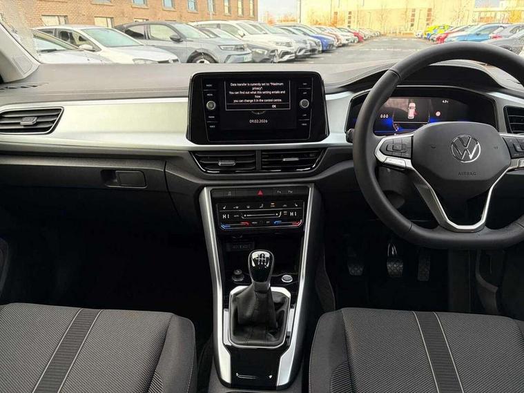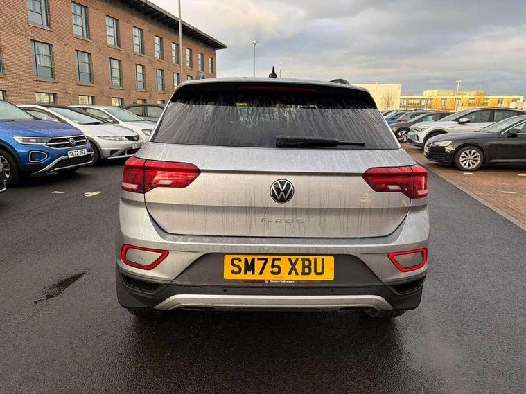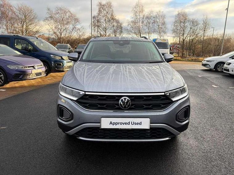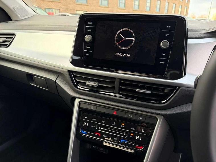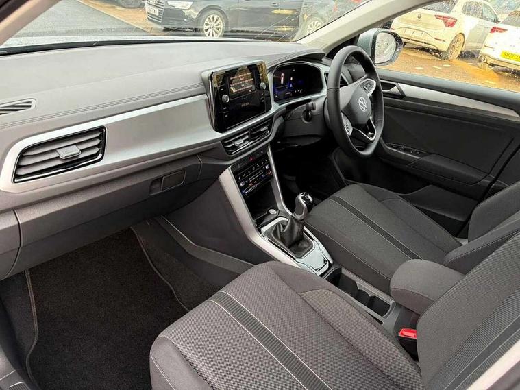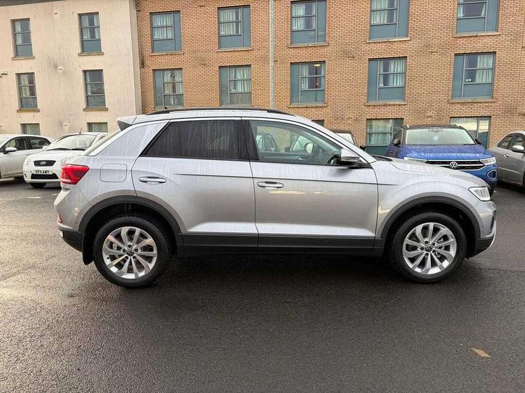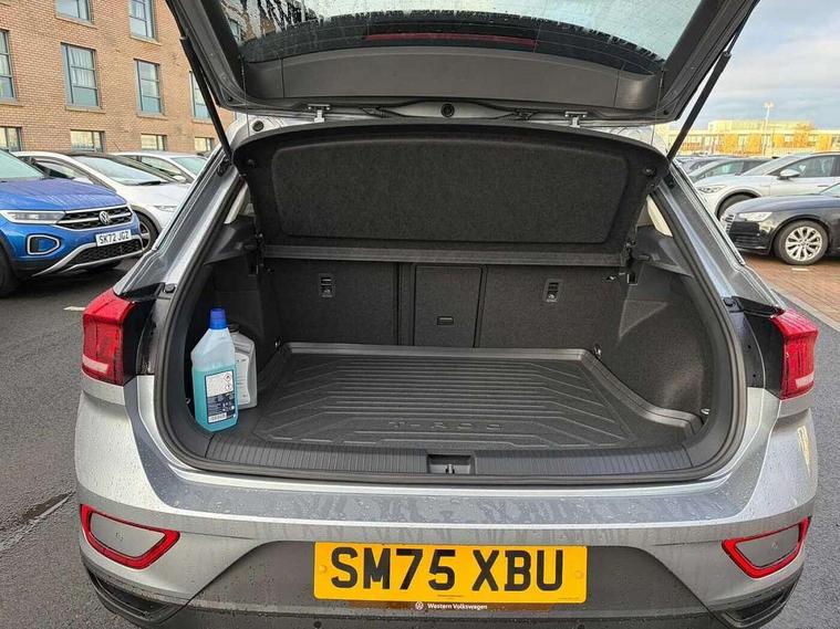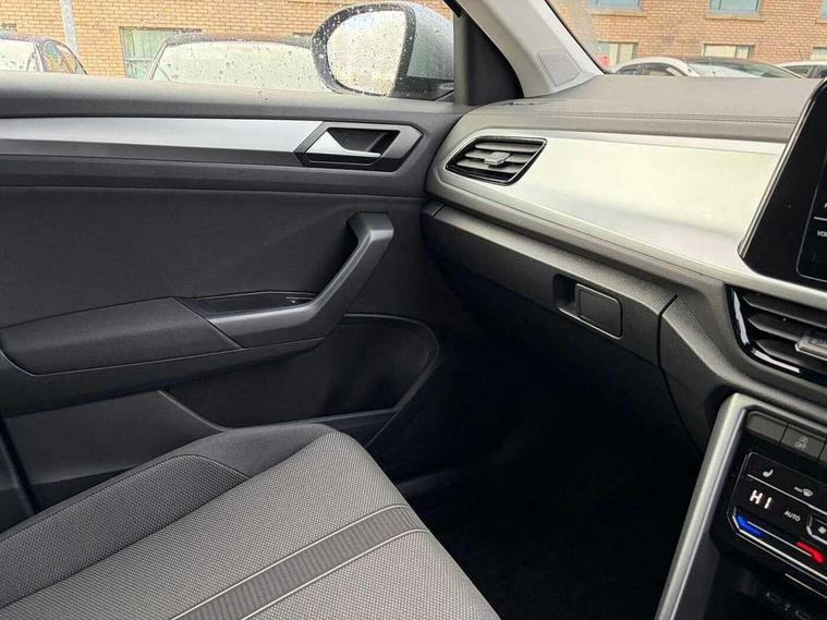 Advanced driver attention and drowsiness monitor, Dynamic road sign display, Emergency call service, Lane keeping system Lane Assist, Mobile phone interface, Modified key software - reduce switch off time for key status change to Long no motion, Online services, Park assist including front and rear parking sensors, Power assisted speed sensitive steering, Rear view camera, Service interval indicator, Tailgate/trunk lid release from outside, Think blue trainer driver tips and journey analysis, Warning sound and light for front seatbelts unfastened, Wireless app connect, Battery regeneration during braking, Front shock absorption, Rear shock absorption chassis with increased ride height, Start/stop function with battery regeneration, DAB Digital radio, Diversity antenna for FM reception, Music playback - MP3, WMA and AAC files, SD card slot, Simultaneous pairing of 2 compatible mobile devices, Title and cover art display, We Connect and We Connect Plus functionality, Auto dimming interior rear view mirror, Automatic hazard lights activation under emergency braking, Automatic headlight control with LED separate daytime running lights with coming/leaving home function, Black roof rails, Body coloured bumpers and radiator grille with chrome trim and front fog lamps with chrome bezel, Body coloured exterior mirror housings and door handles, Electrically adjustable and heated door mirrors, Extended roof spoiler, Exterior mirrors aspherical on driver side, convex on front passenger side, External USB type C socket and charging sockets, Front windscreen wiper with intermittent wipe and 4 position delay, Heated rear window, LED 3rd brake light, LED rear combination lamps, LED rear number plate lights, Power windows with comfort operation and circuit breaker, Privacy glass for rear side windows and rear window, Rain sensor, Rear exhaust tailpipe, Rear fog light on one side and reversing lights on both sides, Rear side wing doors, Rear wash/wipe with intermittent wipe setting, Remote electrically foldable door mirrors, puddle lights and reverse activated passenger's door mirror, 12V power socket in centre console, 3 rear head restraints, 3 seat bench in 2nd row, 4 load lashing points in luggage compartment, Air care climatronic air conditoning system with active combination filter and 2-zone temperature control, Black stitching for floor mats, Ceramique roof liner, Cloth upholstery, Door and side trim panel in cloth, Drawer under drivers seat, Driver/front passenger seat height adjustment, Front centre armrest, Front comfort sports seats, Front cupholders x 2, Front reading light, Front seat back storage pockets, Glove compartment door with light, Instrument lighting, white adjustable panel illumination, Interior ambient lighting and surround lighting, Interior light delay, Isofix child seat preparation, Leather gearshift handle, Load-through provision with cup holder when folded down ('Unsplit rear seat bench, split folding backrest, with centre armrest), Luggage compartment lighting, Lumbar support for driver's and front passengers seat, Non-folding front passenger seat backrest, Single front passenger seat, Storage compartment in left and right luggage area, Storage compartment in rear doors, Storage compartments in driver and front passenger doors, Sunvisors with illuminated vanity mirrors, Variable boot floor, height adjustable and removable, Driver assistance pack without proactive passenger protection - T-Roc Life/Match, 3 point height adj front seatbelts + pretensioners, 3 point seatbelts in outer rear with ECE label, ABS, Child locks on rear doors, City emergency braking and pedestrian monitoring, Driver and front passenger airbag with front passenger airbag deactivation, Driver and front passenger safety-optimised head restraints, Drivers seatbelt reminder, Electronic parking brake, Electronic Stability Control (ESC) inc EDL (Electronic Differential Lock) and ASR (Traction Control), Front and rear passengers curtain airbag system including front side airbags, Front disc brakes, Hill start assist, Predictive pedestrian protection, Rear disc brakes, Two tone horn, Tyre pressure loss indicator, Volkswagen roadside assistance, Alarm with interior protection, Keyless locking and starting system keyless access with safelock, Pewter matt decorative inserts for intrument panel, centre console and door panels at the front, Trims for alloy wheels,