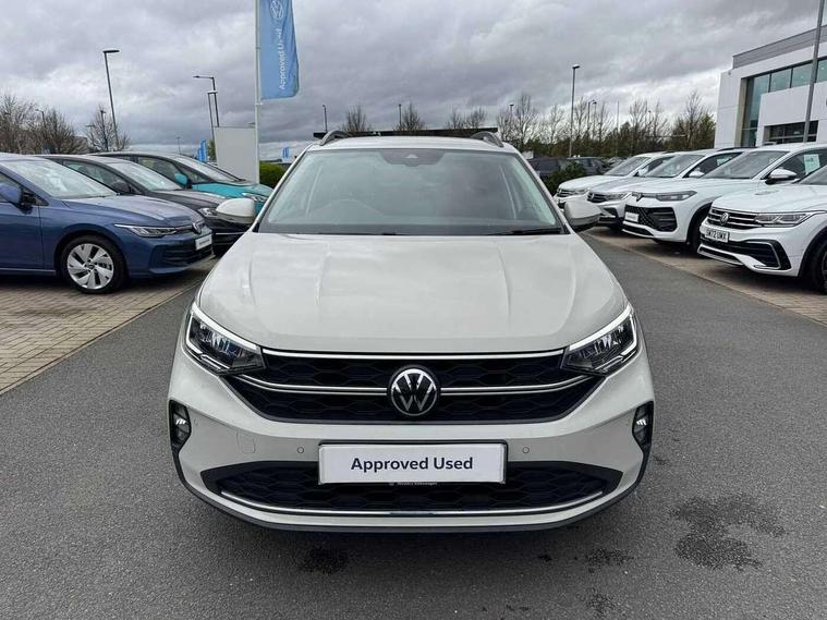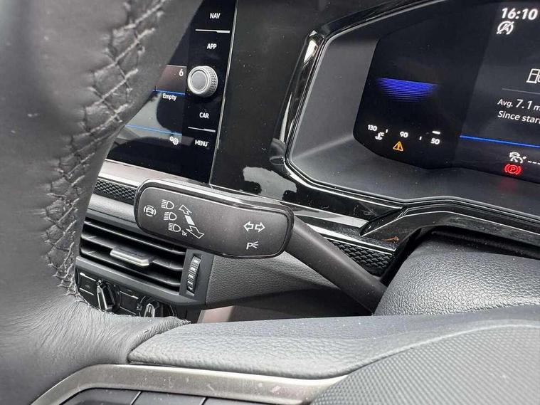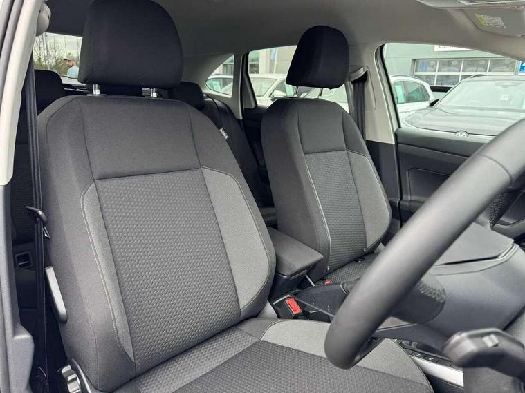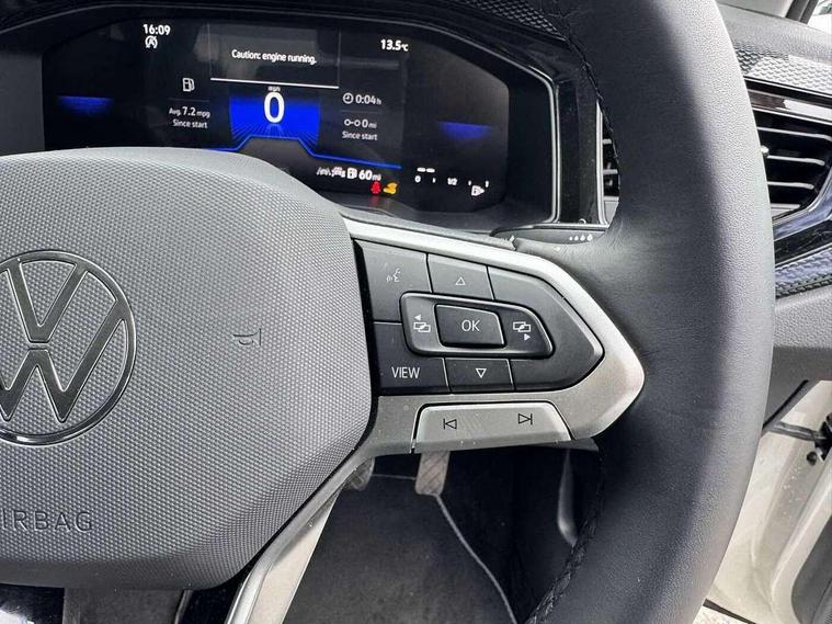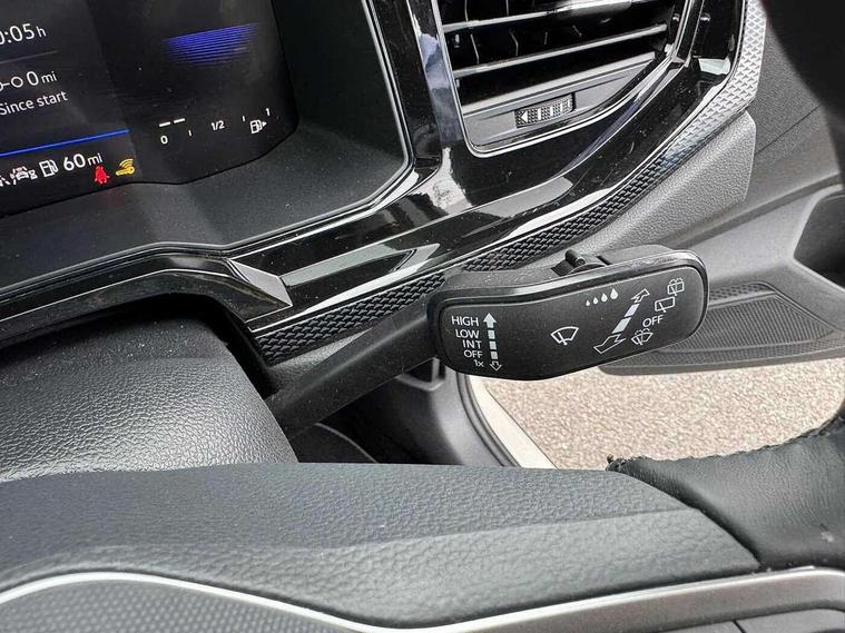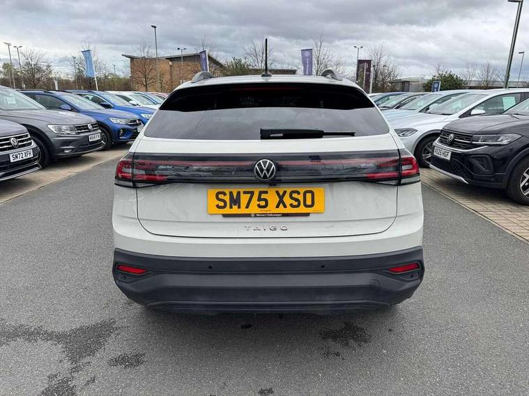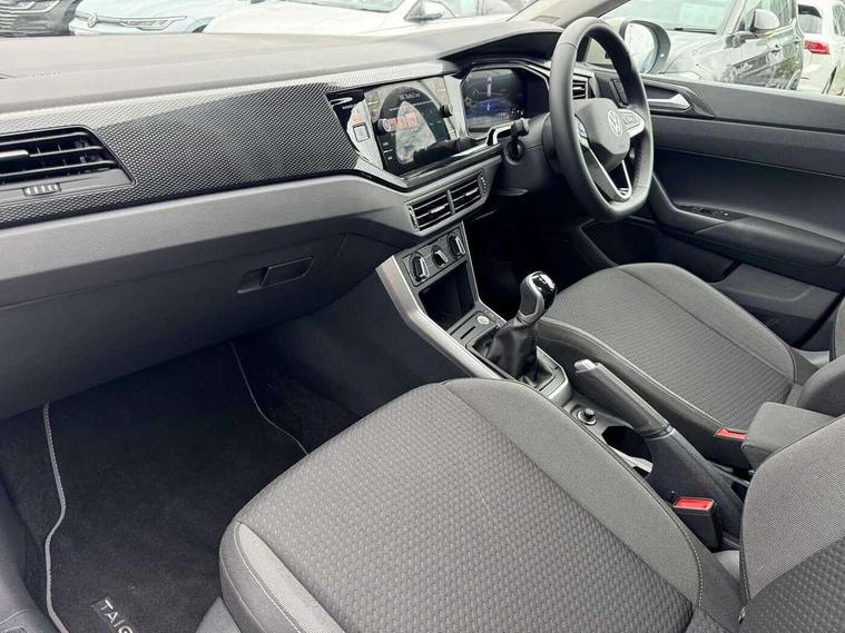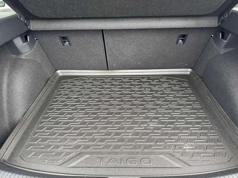 8" Digital cockpit basic display, Advanced driver attention and drowsiness monitor, Dynamic road sign display, e-Call (emergency call), Power Steering, Predictive adaptive cruise control, Rear view camera, Travel assist including emergency assist, Washer fluid level indicator, Wireless Charging including Bluetooth, Start-stop system with battery regeneration (recuperation - energy recovery during braking), Digital radio reception (DAB+), WeConnect plus, Ambient lighting with logo projection, Aspherical driver's exterior mirror, Body coloured bumpers, Body coloured exterior mirror housings and door handles, Electric windows, External USB type C socket and charging sockets, Heat insulating glass windscreen, LED rear combination lamp, LED third brake light, Left convex exterior mirror, Power folding adjustable/heated exterior mirrors and front passenger exterior mirror lowering function, Rear fog light on one side, reversing light on both sides, Rear side wing doors, Rear wash/wipe with intermittent wipe setting, Side windows in heat-insulating glass, from B-pillar and rear window dark tinted, 'Slash/ Austin' Cloth upholstery, 12V socket in centre console, 2 front reading lights, 3 rear head restraints, 3 seat bench in 2nd row, Black carpets, Ceramique headliner, Child seat anchor for child seat system i-Size, 2x top tether and child seat anchor in front on front passenger side, Door and side trim panels in titan black, Driver and front passenger seat height adjustment, Front + rear carpet mats, Front centre armrest, Handbrake lever handle in leather, Height and reach adjustable steering wheel, Leather trimmed gear knob, Leather wrapped multifunction steering wheel, Luggage compartment floor, Luggage compartment light, Lumbar support for driver's and front passengers seat, Seat covers in titanium black, Single front passenger seat, Split folding backrest with centre armrest and unsplit rear seat bench, Storage compartment under front seats, Sun visors with illuminated vanity mirrors, Titanium black instrument panel, Chrome Package - Taigo, Drivers assistance package - Taigo, Light and sight pack - Taigo, 2 x 3-point seatbelts/outer rear seats with ECE label, 3-point seat belts in front with pretensioner and height adjustment, 3-point seatbelt for centre rear seat, Driver and front passenger airbag with front passenger airbag deactivation, Driver and front passenger safety-optimised head restraints, Electronic stability control, Extended and predictive pedestrian/ cyclist protection, Front and rear disc brakes, Front curtain and side airbags with center airbag, Hill start assist, Manual rear child locks, Single tone horn, Tyre pressure loss indicator, Anti-theft alarm system with interior monitoring, backup horn, and towing protection, Keyless locking and starting system keyless access with safelock, Black (slush) Dashboard, Lava stone black gloss/matt decorative inserts in dash and front door panels, Low rolling resistance tyres,
