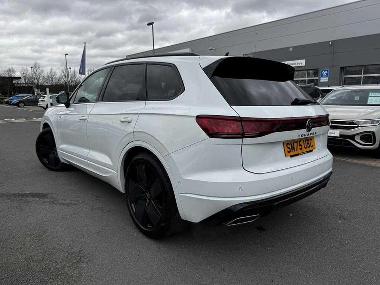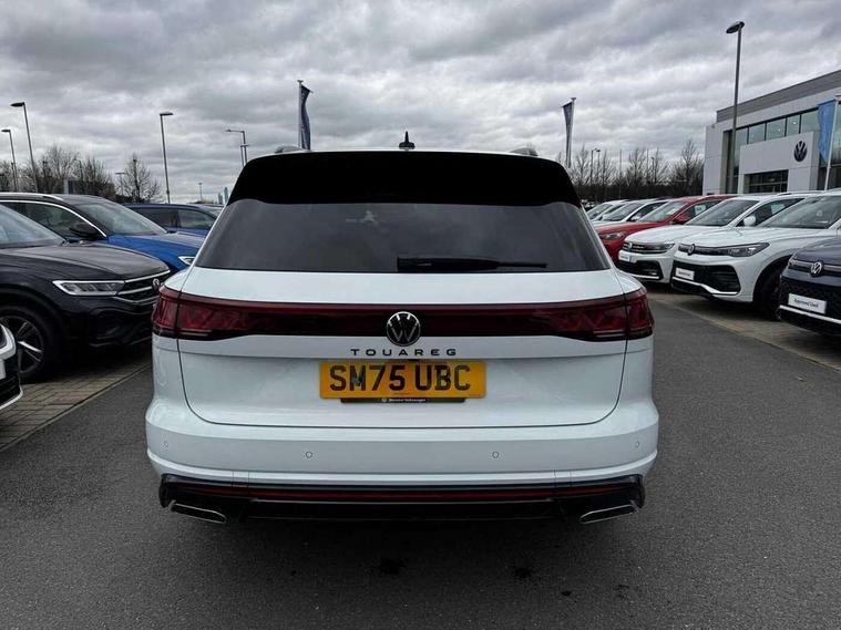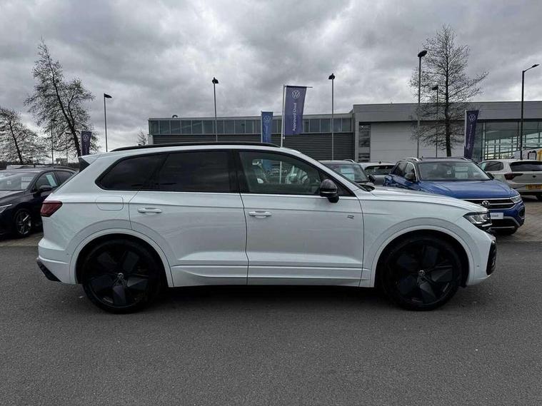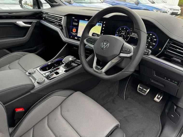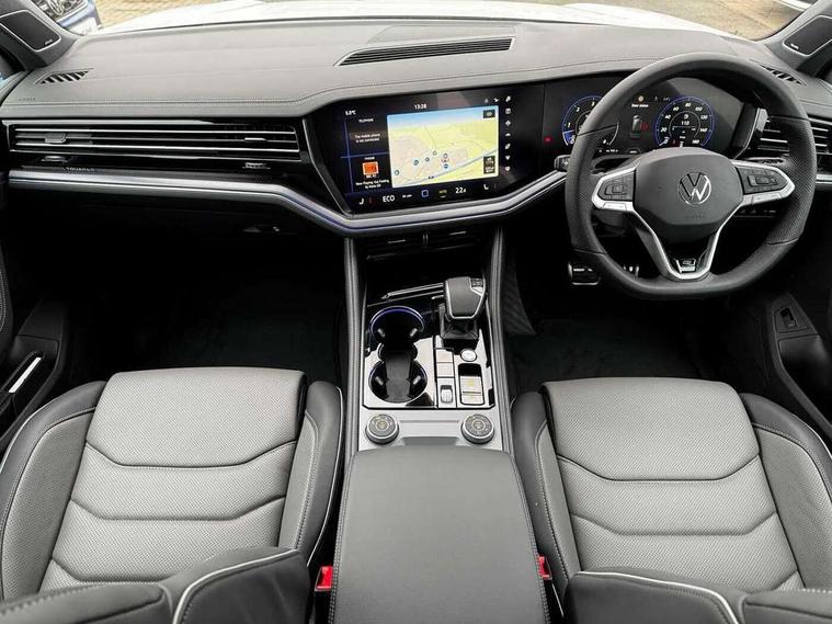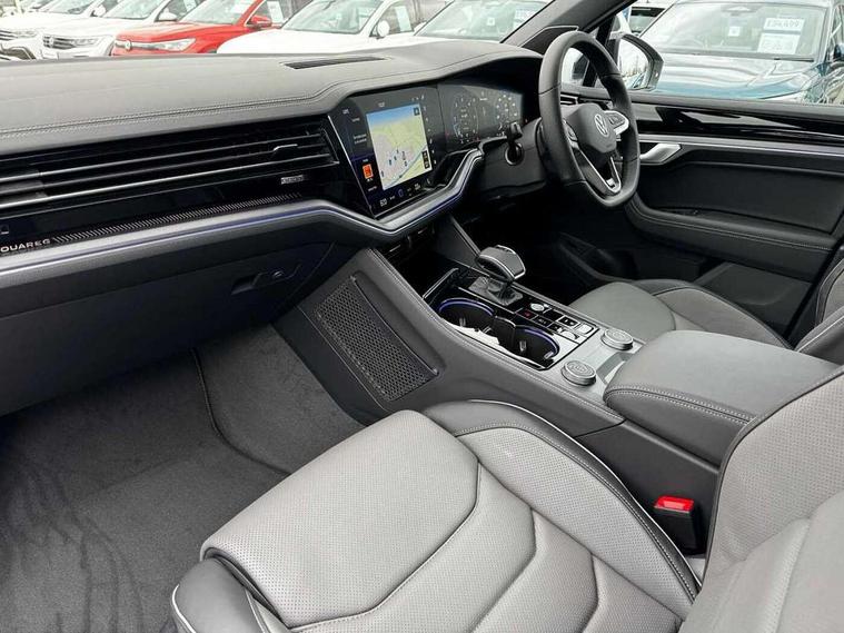 15" Screen Top infotainment system Premium (MIB3), Adaptive cruise control, Advanced driver attention and drowsiness monitor, Driver profile selection, Dynamic road sign display, E-Sim card for online connectivity, eCall emergency system, Innovision cockpit, Intelligent park assist, Mobile phone interface with inductive charging, Multi-colour Active Info display, Park Assist - Sensor controlled steering aid to assist parallel or bay parking, PAS, Warning signal and warning light for front and rear seatbelts not fastened, Wireless app connect, Adaptive chassis control, DAB Digital radio, Diversity antenna for AM/ FM reception, We Connect and We Connect Plus functionality, Automatic coming/leaving home lighting function, Automatic headlights, Black door mirrors, Black style comfort bumpers, Dynamic headlight range control with dynamic cornering light, Electric front tilt/slide panoramic sunroof and fixed rear sunroof, Electrically power adjustable, heated, folding, auto dimming, front passenger exterior door mirror lowering function, External USB type C socket and charging sockets, Gloss black roof rails, HD LED Matrix beam plus digital headlight projection with variable light distribution, Headlight washers, Heat insulating darkened glass in side and rear windows, Highway light, LED 3rd brake light, LED daytime running lights, LED rear combination lamp with variable lighting functions and special styling, Poor weather light, Privacy glass for rear side windows and rear window, tinted glass from B pillar backwards - 80%, Rain sensor, Rear exhaust tailpipe, Rear fog light with back up light on both sides, Rear light bar and illuminated logo, Rear side wing doors, Rear wiper, Stainless steel door sill protection, 12V socket in centre console, 3 rear headrests, 3 seat bench in 2nd row, 4 zone climate control, Airbag label on sun visor and B-pillar, Brushed stainless steel pedals, Double sun visors with illuminated vanity mirrors, Front + rear carpet mats, Front centre armrest, Leather wrapped multifunction sports steering wheel, heated, with touch control and shift paddles, Mechanical rear seat release, Power adjustable lumbar support in front, Power seats in front, right side with memory features and seat cushion depth adjustment, Rear seat backrest and split folding with center armrest, Single front passenger seat, Extra acoustics pack - Touareg, Memory pack plus - Touareg, 3 point seatbelts, outer rear with ECE lable, ABS, Child locks on rear doors, Curtain airbags, Driver and front passenger safety-optimised head restraints, Driver/Front Passenger airbags, Extended pedestrian protection measures, Front assist, Front seat side impact airbags, Generative braking with start and stop system, Height adjustable 3 point front seatbelts with pre tensioners, Passenger airbag deactivate switch, Three 3 point rear seatbelts, Two tone horn, Warning triangle and first aid kit, Alarm system with interior protection, Easy open and close sensor controlled luggage compartment opening and closing with remote unlocking, Keyless Access Keyless locking and starting system with SAFELOCK, Aluminium decorative inserts, Black decorative trims, Gloss black decorative inserts in centre console, Tool kit,