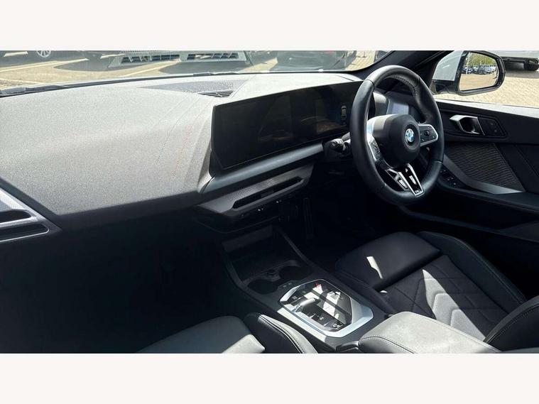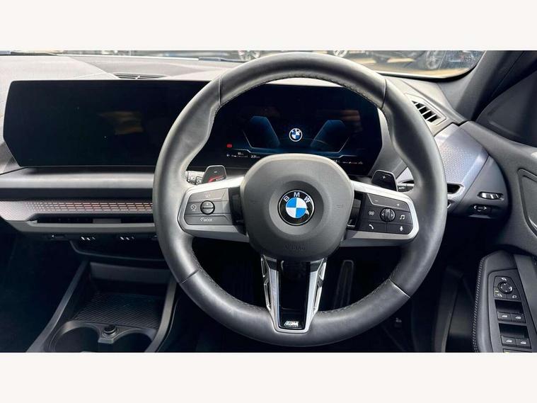 Active guard plus, Attentiveness assist, Bluetooth / WiFi interface for wireless connection of mobile terminal devices and audio streaming, BMW ConnectedDrive online services, BMW Live cockpit plus, BMW Teleservices, Check Control warning system for monitoring of lights and door/luggage compartment open warning, Cruise control with speed limiter, Eco pro mode, Electric power steering with Servotronic steering optimised at all speed ranges, Front and rear parking sensors, Front axle single joint with specific axle kinematics to minimise drive influences on steering + provide increased rigidity agile driving behaviour, Integrated owners handbook, Lane departure warning system, Oil sensor for level and grade, On board computer, Optimum shift indicator, Park assist including reversing assistant, lateral parking aid and reversing assist camera, Personal Profile, Pull away assistant, Rigidly mounted rear subframe - Multi link construction with separate spring / damper configuration and excellent driving characteristics, Speed limit Info including no-overtaking indicator, Speedometer, 49 litre fuel tank, Aluminium lightweight construction, Anti roll bar front and rear, Balancer shaft, Double VANOS twin scroll turbocharging system, Drive Performance Control, Electronic differential lock, High precision injection, M Adaptive suspension, Petrol Particulate Filter, Twin tube gas filled shock absorbers with degressive characteristic curve, VALVETRONIC engine management, DAB Digital radio, Auto dimming rear view mirror, Automatic headlight beam throw control, Automatic windscreen wipers and automatic headlight, Body colour door handles, Body colour mirror caps, Body colour roof trims, Chrome 'M' logo side designation, Chrome exhaust twin tailpipes round 90mm in left, Chrome kidney grille frame with Satin Aluminium struts, Direction indicator side lights in exterior mirrors, Electrically adjustable exterior mirror with mirror adjustment switch on drivers armrest and aspheric on driver side, convex on passenger side, Fading support, Folding side mirrors with auto dimming/folding wing mirrors with auto dimming, Follow me home headlights, Front and rear bumper system with replaceable deformation elements, Front and rear electric windows with open and close fingertip control, anti trap facility and comfort closing, Front door sill finishers in black plastic with M designation in metallic look, Green tinted heat protection glazing, High gloss shadowline window frame, Recess cover mirror frames and B/C pillar embelisher trim, High level third brake light, Integrated front windscreen with washer jets, LED daytime running lights, LED eyebrow turn indicators, LED front fog lights, LED Headlights, Lightweight engineering, Matt black air guide grilles, Matt black wheel arch trim, Nearside reverse light in rear light cluster, Preparation for high beam assistant, Rear fog lights, Rear side wing doors, Rear window wiper, Shark fin antenna, Trailer stabilisation logic, Visible VIN plate, Welcome lighting, 12V power socket in front centre console with blanking plug, 3 rear seat head restraints, 3 seat bench in 2nd row, 3 spoke sports leather steering wheel with black leather and stitching, pearl chrome decorative finish, specific M Badge, Anthracite headlining, Black boot net with lashing eyes, Cargo function on 2nd seat row, Child seat ISOFIX attachment for two outer rear seats and front passenger seat with anchorage points, Conditioned based service, Driver and front passenger backrest net on rear, Driver and front passenger seat heating, Driver side folding compartment in instrument panel, Folding rear clothes hook, Four grab handles integrated in roof lining, Front and rear door pockets with bottle holders, Front and rear side armrest integrated into door trim, Front armrest, Glove compartment, Height adjustable front head restraints, Luggage compartment for bag hooks on left and right, foldable luggage compartment liner and four lashing eyelets, Manual adjust steering wheel, Multi-function controls for steering wheel, Rear seat backrest with manual 60:40 split folding with 3 top tether clips integrated on rear of seat panels, Single front passenger seat, Storage compartment in centre console, Storage compartment in luggage compartment, Stowage of the parcel shelf in luggage compartment trim, Sun visors with vanity mirrors and insert tab, Two front centre console cupholders, Type C two USB ports in rear centre console, Velour floor mats, Connected pack professional - 1 Series, Interior lights pack - 1 Series, M Sport exterior styling aerodynamics pack - 1 Series, 2 tone horn, 3 point seatbelts on all seats, front pyrotechnic belt tensioners, stopper and belt force limiters, rear coded belt buckles, Airbags - Front driver/passenger, front and rear curtain head protection, front side, manual deactivation of front passenger airbag, Anti lock braking system (ABS) with brake assist, BMW emergency call, Brake drying, Braking readiness, Child proof locking system in rear door, Comfort modes, Cornering brake control, Crash sensor activating of airbags, Unlocking doors, hazard warning lights, interior light, safety battery terminal, Driver and front passenger seat belt security check, Dynamic stability control + (DSC+), Dynamic Traction Control - DTC, Electrically operated hand brake including automatic hold function, Front and rear disc brakes, Seatbelt warning, Side impact protection, Tyre pressure monitoring system, Warning triangle and first aid kit, Central locking switch for all doors, fuel filler cap and luggage compartment, Deadlocking function system to all doors, Drive away locking system on all doors and luggage compartment with de-activated in iDrive settings, Locking wheel bolts, Remote control with integrated key with High-gloss Black inlay and M designation and 1 button for open/ close lock, window, open luggage compartment, Start/stop button illuminated in centre console with keyless engine start and auto 