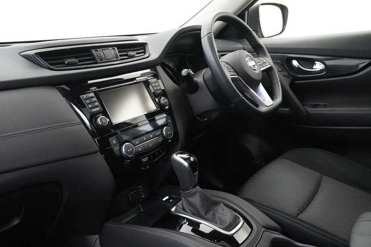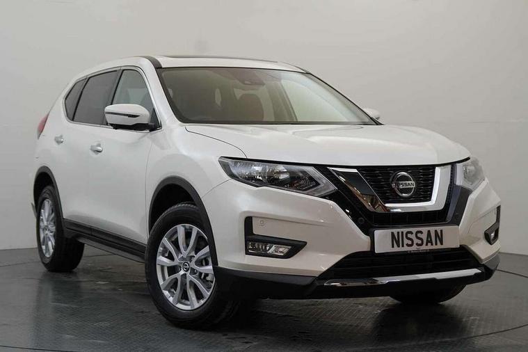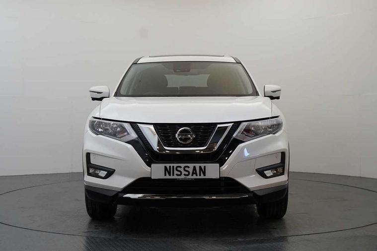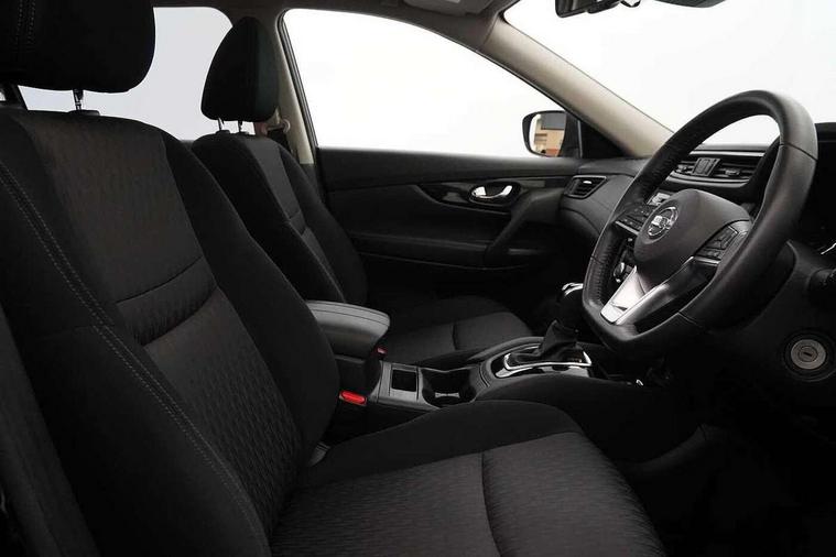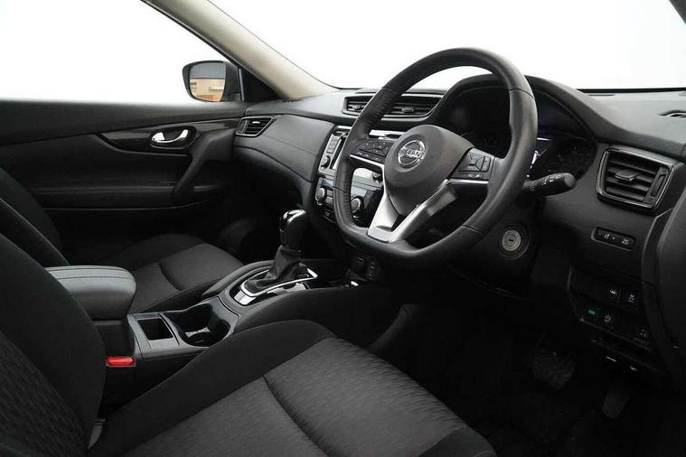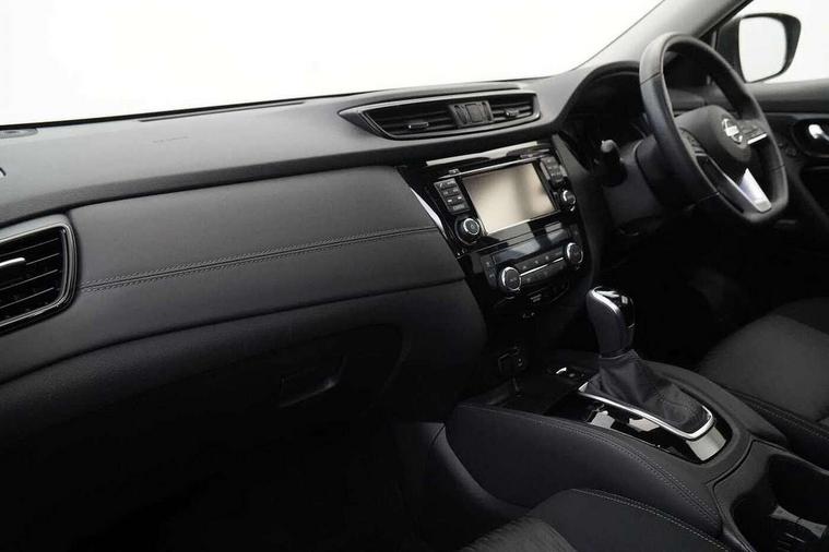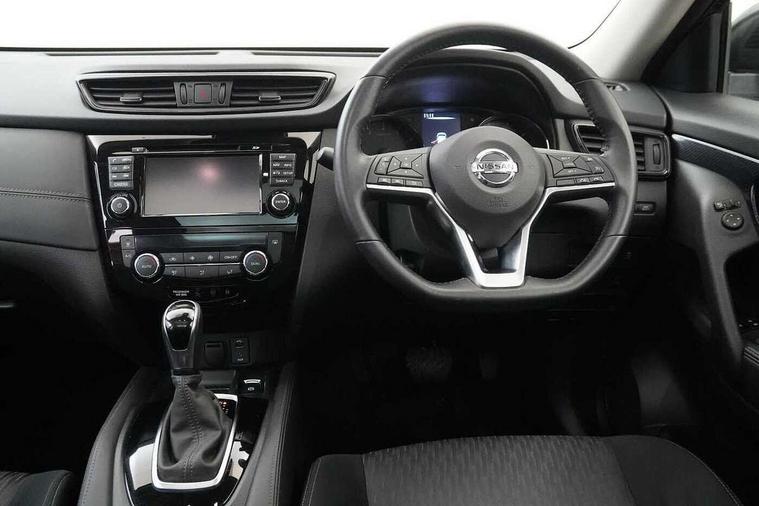 5" TFT driver information centre, Bluetooth phone integration system, Cruise control + speed limiter, Front and rear parking sensors, Intelligent around view monitor, Lane departure warning system, Nissan connect evo 7" touchscreen navigation and entertainment system with Android auto, Apple car play, Tomtom maps and Live traffic, PAS, Traffic sign recognition, Trip computer, Nissan chassis control (intelligent ride control, intelligent trace control, intelligent engine brake), 6 speakers, DAB Digital radio, Radio/CD, Rear USB port, Steering wheel mounted audio controls, USB/aux input socket, Anti dazzle rear view mirror, Automatic headlights, Automatic rain sensing wipers, Black honeycomb front grille, Body colour door mirrors, Chrome door handles, Chrome window surround, Electric folding door mirrors, Electric heated door mirrors, Front and rear electric windows, Front fog lights, Halogen headlights, High beam assist, LED daytime running lights, Panoramic sunroof with one touch shade, Rear privacy glass, Rod antenna, Shark fin roof aerial, 3 rear headrests, 60/40 split rear bench seat, Centre console storage box/armrest, Cloth upholstery, Configurable luggage board system, Driver's manual adjustable lumbar support, Dual zone climate control, Front and rear door pockets with bottle holders, Front cupholders, Front/rear armrests, Height adjustable front headrests, Individual rear reading lights, Isofix child seat attachment, Leather D shaped steering wheel, Leather steering wheel and gear knob, Pollen filter, Tilt/telescopic adjustable steering wheel, 3 point seatbelts on all seats, 6 airbags - Driver, front passenger, curtain and side airbags, ABS, Child locks on rear doors, EBD + Brake Assist, Electric parking brake, ESP + traction control, Intelligent emergency braking with pedestrian recognition, Seatbelt warning, Tyre pressure monitoring system, Immobiliser, Remote central locking, Thatcham Cat.1 alarm, 17" Alloy wheels, Full size spare wheel,