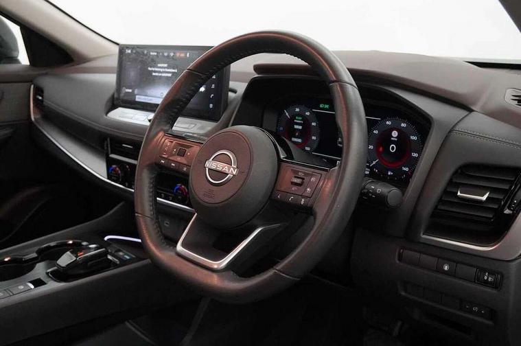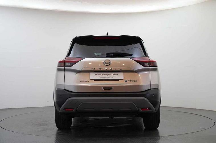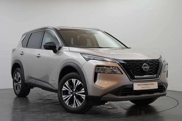 Android auto/Apple CarPlay (Wired), Blind spot warning, Drive modes (sport, normal, eco, snow, off-road), e-Pedal step, Electric speed sensitive power steering, Emergency and breakdown call, Front and rear parking sensors, Full Digital 12.3" TFT Digital Combimeter, Google maps services - search, weather, 3D maps and Google street view, Idle stop/start system, Intelligent around view monitor, Intelligent Cruise control (ICC), Intelligent driver alert system, Intelligent forward collision warning, Intelligent lane departure warning, Intelligent lane intervention, Intelligent lane keep assist, Maximum speed limiter, Moving object detection, Nissan connect 12.3 inch touchscreen infotainment system, Nissan connect nav with TomTom traffic, Push button starter, Rear cross traffic alert, Rear view camera, Remote control services - door locks, lights, horn and car locator, Telematics - notifications and connectivity services, TomTom live traffic services, Traffic sign recognition with legal speed adjustment, Trip computer, Virtual personal assistant and firmware over the air capability, Wireless apple carplay, 6 speakers, AM/FM audio system with DAB, Bluetooth audio streaming, Front USB connections (Type-A and Type-C), Rear USB charging only ports (Type-A and Type-C), 3rd brake light, Auto dimming rear view mirror, Auto rear wiper when reversing, Body colour mirror caps, Body coloured door handles, Bodyside mouldings, Chrome side window finisher, e-4ORCE badging, e-POWER badging, Electric auto folding door mirrors, Electrically adjustable and heated door mirrors, Follow me home headlights, Headlights auto levelling system, High beam assist, Intelligent auto headlights, LED daytime running lights, LED Headlights, LED rear lights, One touch front and rear electric windows with remote opening and closing, Partially body coloured bumpers, Rain sensing wipers, Rear privacy glass, Rear reversing light (bulb lighting), Rear roof spoiler, Rear side wing doors, Rear styling plate, Shark fin antenna, Splash free wipers, Super UV and infrared cut glass, Three blink turn signal, 12v power socket in dashboard and luggage, 3 bench rear seats in 2nd row, 3 rear headrests, 60/40 split folding rear seat bench, Butteryfly console, Chrome interior door handles, Cloth monoform upholstery, Driver and front passenger sunvisors with illuminated vanity mirrors, Driver seat back pocket, Dual zone automatic climate control with pollen filter, Front centre console and armrest, Front cupholders, Front door with bottle holders, Height adjustable driver's seat, Height adjustable front headrests, Height adjustable passenger seat, Leather shift knob, Leather steering wheel, Luggage board system, Luggage space lighting, Multifunction steering wheel, Passenger seat back pocket, Rear armrest with 2 cupholders, Rear door bottle holders, Single front passenger seat, Tilt/telescopic adjustable steering wheel, Two rear isofix child seat anchorage points with top tether, 3x3 point rear seatbelt pretensioners + load limiters, ABS with EBD and brake assist, Active brake limited slip, Auto hold function, Child locks on rear doors, Curtain and front side, far side airbags, Driver and passenger airbags, Driver, passenger and 2nd row rear seat belt reminder, Electronic parking brake, Front seatbelt pretensioners + load limiters, Height adjustable front seatbelts, Hill start assist, Intelligent blind spot intervention, Intelligent front emergency braking with pedestrian, cyclist recognition and junction assist, Intelligent rear automatic braking, Tyre pressure monitoring system, Vehicle dynamic control, Engine immobiliser, Intelligent Key, Remote central door locking with deadlocking, Thatcham Cat.1 alarm, 18" Diamond cut alloy wheels, Tyre puncture repair kit,