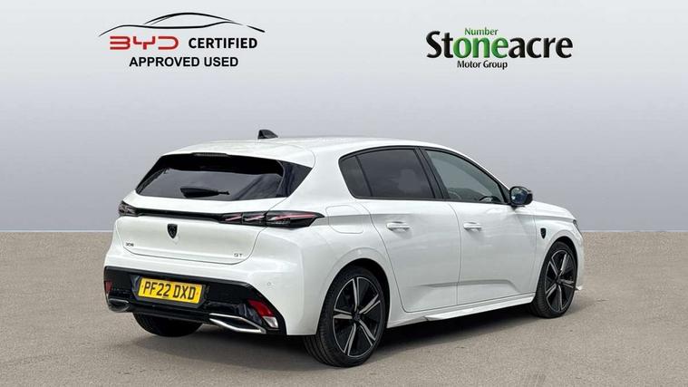 10" capacitive colour touchscreen with connected 3D navigation includes Peugeot Connect SOS and assistance, Bluetooth telephone facility, Compact automatic gearbox impulse selector, Driver attention warning, Exterior temperature indicator with ice warning, Intelligent speed adaptation, Lane keep assist, Mirror screen with mirror link, apple carplay and android auto, Multi driving mode selector - Eco / Normal / Sport mode selector, Multi function trip computer, PEUGEOT i-Cockpit with compact steering wheel, PEUGEOT SOS and assistance, Service interval indicator, Smartphone charging plate, Speed limit recognition and recommendation, Sport pedals with foot rest, Wireless apple car play/android Auto, DAB Digital radio, Peugeot customisable iToggles, Steering column mounted multifunction controls, Voice recognition for radio, navigation and telephony features, Acoustic and tinted windscreen, Automatic hazard light activation upon heavy brake application, Automatic triggered rear windscreen wiper in reverse gear, Body colour door handles, Dark chrome chequered radiator grille, Dark tinted rear side and tailgate windows, Electric operated/heated door mirrors, Extended lower body sills to the front and side, Frameless electrochrome rear view mirror, Front and rear electric windows with one touch/anti pinch, Full LED matrix headlights with automatic adjustment, Gloss black finish B pillar, Gloss black rear cluster connecting strip, GT model designation badging on tailgate, High beam assist, LED rear number plate lights, LED side indicator lights integrated into door mirrors, Lion emblem badging on front wings, Model designation badges on front and rear, Nera black door mirrors, Peugeot aluminium door sills, Peugeot signature LED daytime running lights, Power folding door mirrors, Rain sensor, Rear full LED 3D Peugeot new claw effect lights with sequential welcome sequence upon unlocking the vehicle, Rear lower bumper gloss black diffuser effect trim, Rear reversing lights, Rear side wing doors, Tailgate with heated rear windscreen and wiper blade, Twin exhaust pipes with chrome surround, 1/3 to 2/3 split folding rear seats, 12V socket, 2 front USB socket including 1 USB type c, 2 rear USB socket including 1 USB type c, 3 seat bench in 2nd row, 8 Colour personalisable ambient lighting, Automatic air conditioning with AQS 3, Carpet mats, Central front armrest with storage compartment, Clean cabin technology, Dynamic front seats, Electric power steering with reach and rake adjustable steering column, Front central console with two cup holders, Heated steering wheel, LED Glovebox light, Manual driving mode - change gear manually via steering mounted paddles, Multifunction full grain leather steering wheel with admite green stitching & GT badging, Piano keys gloss black plated toggle switches to access main functions of the vehicle, Roof lining - Mistral black, Seatbelt unfastened on the move audible and visual alert for front and rear seats, Single front passenger seat, Ski hatch with central rear armrest with cup holder, Sunvisor with concealable mirrors and LED lighting, Drive assist pack with rear cross traffic alert- 308, Driver sport pack with sports power steering - 308, Visibility pack with automatic magic wash windscreen wipers - 308, 2x Isofix child seat fitting on outer rear seats, 3x Rear three-point retractable seatbelts with force limiters in the outer rear seats, ABS + EBD + EBA, Active safety brake with night function/cyclists/pedestrians, Adaptive driver and front passenger airbags with passenger airbag deactivation function, Automatic post collision braking, Child locks on rear doors, Driver/front passenger side airbags, Electronic parking brake, ESP, Front and rear curtain airbags, Front optimised safety headrests and rear retractable headrests (x3), height adjustable, Front three point retractable seatbelts with force limiters, Front/rear disc brakes, Hill start assist, Tyre pressure sensor, Automatic door locking when moving off, Deadlocking system, Electronic code immobiliser, Locking wheel nuts, Peugeot open and go system includes keyless entry with push start button, Thatcham cat. 1 alarm with anti lift sensor, 18" Kamakura diamond cut alloy wheels,