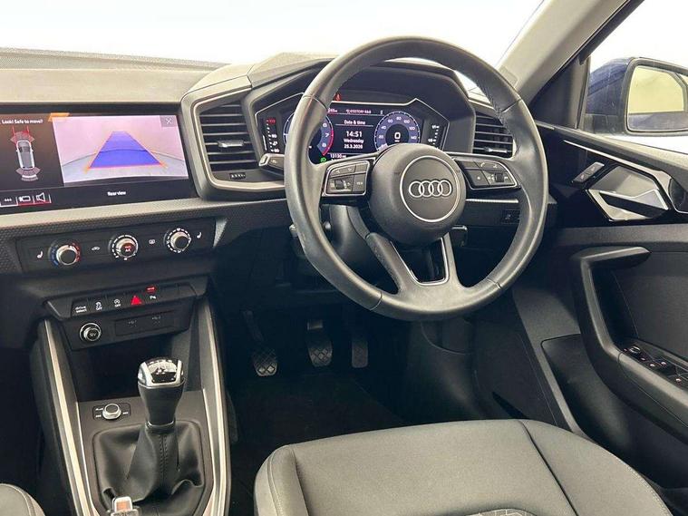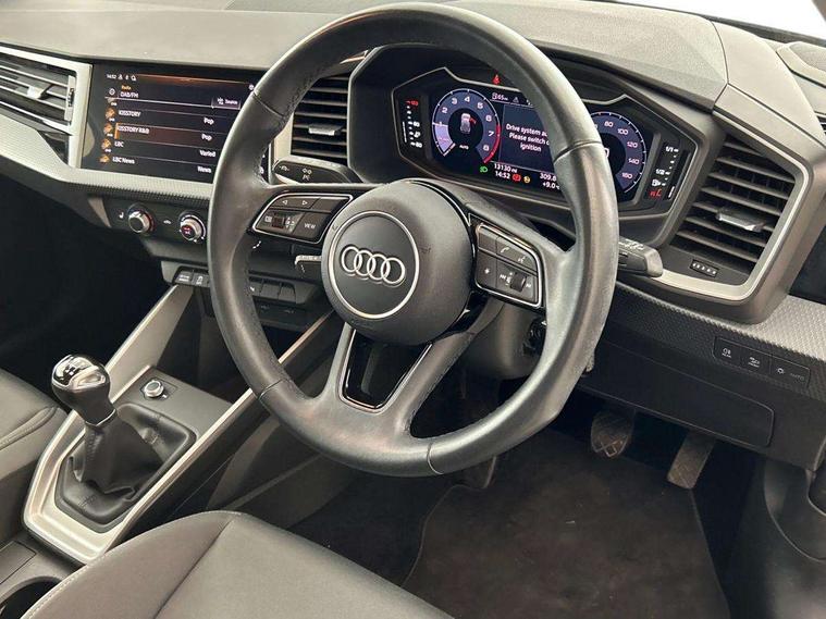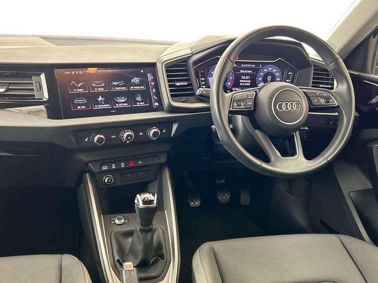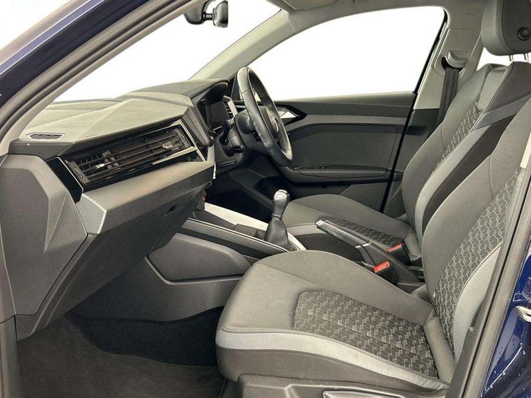 10.25" Digital instrument cluster display classis style instrument dials + speed, odometer, time, outside temperature, telephone menu + fuel level warning, Audi drive select - power steering assistance + engine, Audi smartphone interface with connect compatible smartphone via USB directly MMI display + Nav, music, third party apps controlled via MMI controller, Automatic start/stop system, Bluetooth interface, Cruise control, Driver's information system, Electromechanical power steering, Emergency e-call, Lane departure warning system, Rear parking sensor, Service interval indicator, Speed limiter, Voice control system, Washer fluid level indicator, Dynamic suspension, 2 x USB type C connection points, 6 passive loudspeakers, DAB Digital radio, MMI radio plus with 10.1" colour MMI display screen and MMI touch, Auto dimming rear view mirror, Body coloured bumpers, Body coloured door mirrors, Electric front and rear windows, Electrically adjustable, heated, folding door mirrors with integrated LED side indicator, Front side air inlets in grained matt black and C frame in anthracite black, Heat insulating glass windscreen and side windows, Heated rear windscreen, High level LED brake light, LED headlights with LED rear lights + dynamic rear indicators + headlight adjustment and high beam, turning light + LED daytime running lights, Radiator grille and rear diffuser in matt anthracite black, Radiator protective grille frame in matt aluminium silver, Rain and light sensors, Rear fog lights, Rear side wing doors, Rear wiper, Side front spoiler lips in grained matt black, 12V socket in centre console with two cup holders, 3 rear seats with headrests, 3 seat bench in 2nd row, 3 spoke leather multifunction plus steering wheel, 40:60 Split folding rear seat or folded fully, Black front and rear floor mats, Door sill trims with aluminium inlay, Driver and passenger seat with manual height adjust with forward and backwards adjustment, Front head restraints, Front passenger seat, Grey cloth headlining, Height and reach adjustable steering wheel, ISOFIX child seat mounting for front passenger and outer rear seats including top tether attachment point of outer rear seats, Leather gear knob with aluminium trim, Leatherette handbrake grip, Luggage compartment light with front and rear reading lights, Manual air conditioning, Manually adjustable lumbar support in front seats, Novum cloth upholstery with front sport seats, Luggage compartment pack - A1, 3x3 point rear seatbelts, Audi pre-sense front with pedestrain and cyclist recognition, Brake assist function, Driver and front passenger airbag with front side and head airbags, Electronic Stability Control including ABS, EBD, ASR and EDL, Front passenger airbag deactivation switch, Hill hold assist, Manual rear child locks, Seatbelt height adjustment for front seats, Seatbelt monitoring, Tyre pressure warning light, Warning triangle and first aid kit, Anti theft alarm, Anti theft wheel bolts and loose wheel warning, Immobiliser, Remote central locking with 2 foldaway keys, Aluminium trim for control switches, air vents and digital instrument cluster, Black dashboard, Silver grey accent areas including air vents, door handle recesses and centre console in diamond paint finish, Slate grey inlays polygon structure in fine paint finish,