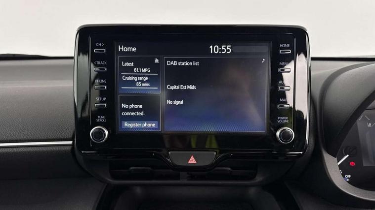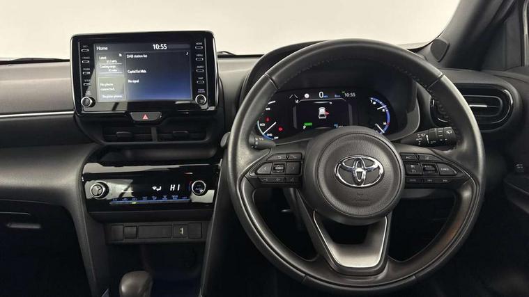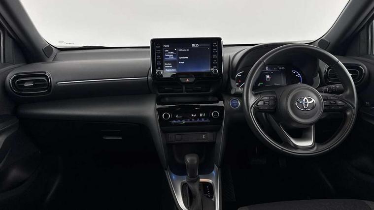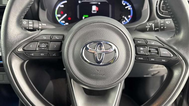 7" Multi information display screen, 8" Toyota touch 2 multimedia system with Smartphone integration with Apple CarPlay and Android auto, Adjustable speed limiter, Bluetooth connectivity, Driver attention alert system, eCall emergency system, Electric power steering, Full range intelligent adaptive cruise control, Hybrid system indicator, Key reminder warning, Lane trace assist, Multimedia, audio, telephone and voice recognition switches on steering wheel, My T Connected services, Pre-collision system enhanced with emergency steering assist, Reversing camera, Road sign assist - RSA, Steering assisted vehicle stability control, 6 speakers, DAB Digital radio, USB connection, 3rd brake light, Acoustic windscreen glass, Aluminium roof rails, Anti-jam protection on power windows, Auto high beam [AHB] with on/off switch, Automatic headlights, Black lower front grille, Black Shark-fin antenna, Black upper front grille, Black wheel arch mouldings, Body colour door handles, Body colour front bumper, Body colour rear bumper, Electric adjustable heated door mirrors, Follow me home headlights, Front and rear electric windows with auto up/down function, Front intermittent wipers, Headlight cut off reminder, Indicators integrated on door mirrors, Intermittent rear wiper, LED daytime running lights guide, LED front fog lights, LED front light guide, LED Indicators, LED projector headlights, LED rear light guide, Manual headlight levelling, Manually retractable door mirrors, Noise reduction layer on windscreen, Privacy glass, Rain sensor, Rear LED lights with sequential indicators, Rear side wing doors, Rear spoiler, Rear window defogger, 12v power outlet - front, 2x Rear coat hooks, 3 seat bench in 2nd row, 3 spoke leather steering wheel, 40:20:40 split folding rear bench seat, Adjustable speed limiter switch on steering wheel, Auto air conditioning, Black roof lining, Boot light, Central armrest, Centre console in light blue ambent lighting, Driver and front passenger personal lights, Fabric door trim, Fabric upholstery, Footwell in light blue ambient lighting, Front console box, Front cup holders, Front head restraints, Glovebox, Height adjustable driver's seat, Height adjustable front passenger seat, Hooks for luggage holding belts, ISOFIX child restraint system, Lane departure alert switch on steering control, Leather gearshift, Light blue ambient lighting on front doors, Manual telescopic and tilting steering wheel, Mirror on driver and passenger sun visor, Pollen air filter, Rear cup holders, Rear head restraints, Single front passenger seat, Soft tonneau cover, 3x3 point rear seat belts, ABS+EBD+Brake assist, Driver and passenger central airbags, Driver and passenger front airbags, Driver and passenger side airbags, Electronic parking brake, Emergency brake light system (EBS), Front seat belt reminder, Hill start assist control (HAC), Passenger airbag on/off switch, Pre-collision system with pedestrian and cyclist detection, Rear door child safety locks, Rear passenger side airbags, Rear seat belt reminder, Traction control, Tyre pressure warning system, Immobiliser, Intrusion alarm, Keyless smart entry with push button start, Power door locks, Power passenger window lock, Remote door lock, Tyre repair kit,