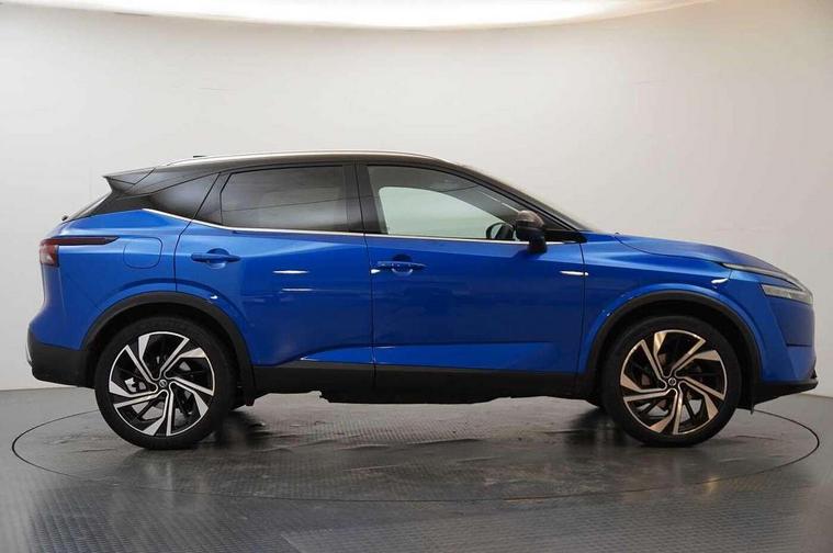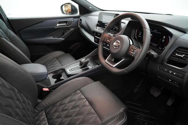 Blind spot warning, Drive modes (sport, normal, eco), Electric speed sensitive power steering, Emergency and breakdown call, Front and rear parking sensors, Full Digital 12.3" TFT Digital Combimeter, Google maps services - search, weather, 3D maps and Google street view, Hands free power tailgate, Idle stop/start system, Intelligent around view monitor, Intelligent Cruise control (ICC), Intelligent driver alert system, Intelligent forward collision warning, Intelligent lane intervention, Lane departure prevention, Lane departure warning system, Moving object detection, Nissan connect 9" touchscreen infotainment system, Nissan connect navigation, Push button starter, Rear cross traffic alert, Remote control services - door locks, lights, horn and car locator, Telematics - notifications and connectivity services, TomTom live traffic services, Traffic sign recognition with legal speed adjustment, Trip computer, Virtual personal assistant and firmware over the air capability, Wireless Apple CarPlay and wired Android Auto, Wireless charging pad, 10 Bose speakers - 2 tweeters, 6 high and medium frequency door speakers and 2 in subwoofer, AM/FM audio system with DAB, Bluetooth audio streaming, Bose acoustimass bass box, Digital amplifier, Front USB connections (Type-A and Type-C), Rear USB charging only ports (Type-A and Type-C), Auto dimming rear view mirror, Auto rear wiper when reversing, Body colour mirror caps, Body coloured door handles, Bodyside mouldings, Chrome side window finisher, Door handle with button, Door mirror memory, Dusk sensor, Electric auto folding door mirrors, Electrically adjustable and heated door mirrors with LED turn indicator, Fixed panoramic glass roof with electric sunshade, Follow me home headlights, Front and rear LED turning signals, Intelligent auto headlights, LED daytime running lights, LED rear lights, One touch front and rear electric windows with remote opening and closing, Privacy glass, Rear roof spoiler, Rear side wing doors, Rear styling plate, Reverse tilting door mirrors, Roof rails, Shark fin antenna, Splash free rain sensing wipers, Super UV and infrared cut glass, Three blink turn signal, 12v power socket in dashboard and luggage, 2x Rear coat hooks, 3 bench rear seats in 2nd row, 3 rear headrests, 4 folding assist grip, 6 Luggage hooks - 4 on floor, 2 on side, 60/40 split folding rear seat bench, 8 way electric adjustable driver seat with massage and memory function, 8 way electric adjustable passenger seat with massage and memory function, Ambient lighting around centre console, Ambient lighting in front doors, Centre console storage tray, Chrome interior door handles, Dark headlining, Driver and front passenger sunvisors with illuminated vanity mirrors, Driver seat back pocket, Dual zone automatic climate control with pollen filter, Electric 4-way lumbar support for drivers seat, Electric adjustable 4 way lumbar support for passenger seat, Front and rear door storage, Front cupholders x 2, Front door with bottle holders, Glovebox with light, Hard trunk cover, Height adjustable front headrests, Leather steering wheel, Luggage board system, Luggage space lighting, Multifunction steering wheel, Passenger seat back pocket, PVC front centre console and armrest, Quilted premium leather upholstery, Rear armrest with 2 cupholders, Rear door bottle holders, Single front passenger seat, Soft PVC kneepad, Steering wheel gearshift paddles, Steering wheel switches, Tilt/telescopic adjustable steering wheel, Two rear isofix child seat anchorage points with top tether, Welcome light and doors with console tray ambient lighting, Heat pack - Qashqai, Tech Pack (ProPILOT + HUD), 3x3 point rear seatbelt pretensioners + load limiters, ABS, ESP, EBD and brake assist, Active brake limited slip, Auto hold function, Child locks on rear doors, Curtain and front side, far side airbags, Driver and passenger airbags, Driver, passenger and 2nd row rear seat belt reminder, Electronic parking brake, Front seatbelt pretensioners + load limiters, Height adjustable front seatbelts, Hill start assist, Intelligent blind spot intervention, Intelligent front emergency braking with pedestrian, cyclist recognition and junction assist, Intelligent rear automatic braking, Tyre pressure monitoring system, Vehicle dynamic control, Advance intelligent key with driver memory storage (seats, mirrors, audio), Capless fuel filler, Engine immobiliser, Rear bumper with silver insert, Remote central door locking with deadlocking, Thatcham Cat.1 alarm, 20" Alloy wheels,