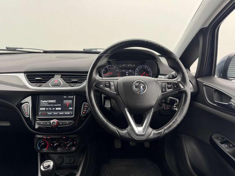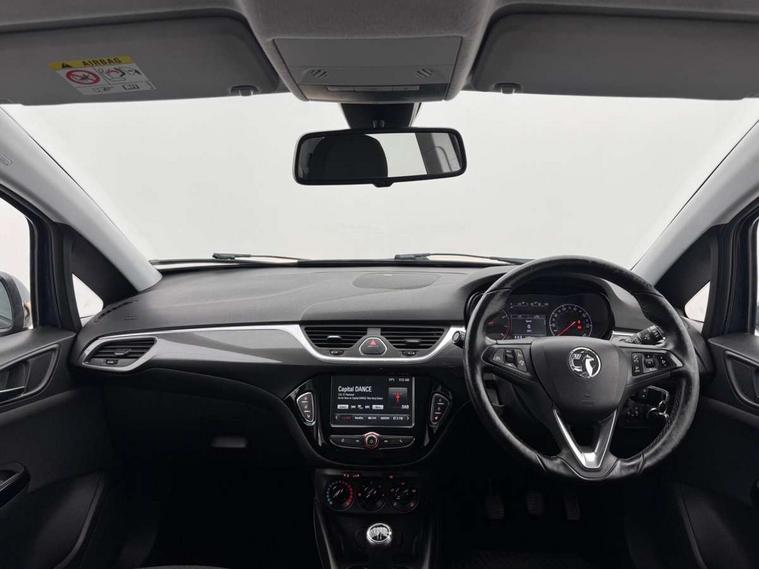 Bluetooth system, Cruise control + speed limiter, Door/boot open warning light, Exterior temperature gauge, Lights on warning, Low fuel level warning light, Rev counter, Service indicator, Speed sensitive power steering, Speed warning indicator, Trip computer, 6 speakers, DAB digital radio module, Fingertip controls for audio system, USB connection, Body colour bumpers, Body colour door handles, Electric adjustable door mirrors, Electric front windows/one touch facility, Front fog lights, Heated door mirrors, Heated windscreen, Laminated windscreen, LED daytime running lights, Rear wiper, Tinted glass including windscreen, 12V power outlet, 2 height adjustable rear headrests, Adjustable dashboard illumination, Air recirculation system, Centre console with cupholders, Chrome gear knob, Cloth upholstery, Delay courtesy light function, Driver/passenger reading lights, Driver/passenger sunvisors and vanity mirrors, Front seat belt pre-tensioners with load limiters, Grab handles, Height adjustable driver's seat, Height adjustable front headrests, Height/reach adjust steering wheel, Illuminated glovebox, Interior courtesy light operated by all doors, ISOFIX on outer rear seats, Lidded front door storage with drinks holder + armrest, Load restraining lashing points, Luggage compartment cover, Pollen filter, Rear bottle holder, Rear door pockets, Rear parcel shelf, Reclining front seats, Seatback map pocket, Winter pack - Corsa, ABS + EBD + EBA, Brake assist function, Child proof door locks, Driver/passenger 2 stage auto adaptive airbags, ESP + traction control, Front and rear curtain airbags, Front and rear seatbelt reminder, Front seat side impact airbags, Height adjustable front seatbelts, Hill start assist, Passenger airbag deactivation system, Three 3 point rear seatbelts, Tyre pressure monitoring system, Anti-drill door locks, Deadlocks, Immobiliser, Radio frequency remote central locking, Chrome effect speaker surrounds, Rhutenium facia with chrome effect inserts, 16" Silver alloy wheels - Style 1,