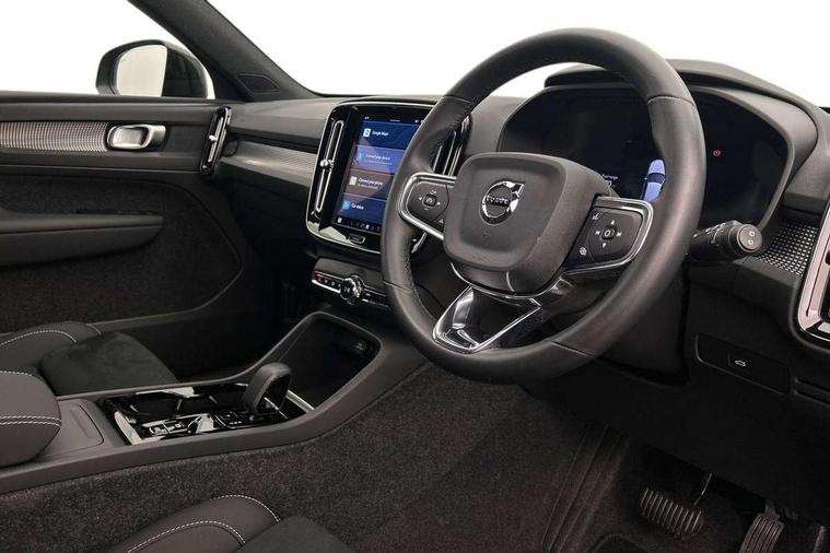 12.3" Progressive Driver Display, 9" centre console portrait touch screen, Adjustable steering wheel force, Apple carplay (wired), Bluetooth handsfree system, Cruise control, Driver alert control, E-call, Front park assist, Google automotive services - Enabled entertainment apps, navigation with google maps, voice recognition with google assistant, Hands free power tailgate, Intelligent speed assistance, Lane keeping aid, Oncoming Lane Mitigation, Rear park assist, Rear park assist camera, Speed sensitive steering, Volvo cars services with app - Driving journal, engine remote start, remote door locking/unlocking and vehicle dashboard, Wireless/Inductive Mobile Phone Charging, Automatic transmission with start/stop and manual change functions, Dynamic chassis, DAB Digital radio, Steering wheel mounted remote controls, Adaptive brake lights with high level LED brake lights, Auto dimming interior mirror, Automatic headlamp levelling, Automatic LED Headlights + Active high beam incorporating daytime running lights, Front aluminium tread plates, Front and rear electric windows, High gloss black front and rear skid plate, High gloss black front bumper deco, High gloss black mesh front grille with high gloss black surround, High gloss black window trim, Home safe and approach lighting, Integrated roof rails in high gloss black, LED front fog lights, Puddle lights, Rain sensor with automatic windscreen wiper activation, Rear side wing doors, Rear wiper, Roof antenna, Roof spoiler, Visible VIN plate, 12V socket in front tunnel console and luggage compartment, 2-Zone electronic climate control with CleanZone air quality system and pollen filter, 3 seat bench in 2nd row, 3 Spoke tailored steering wheel with chrome trim, 60/40 versatile split folding rear seat, Centre console cupholders and storage, Flexible load floor and grocery bag holder, Floor mats, Front cabin courtesy lights, Front door pocket, front cupholder, ambient front door, rear reading, rear courtesy, instrument panel and tailgate lighting, Front footwell illumination, Front headrests, Front reading lights, Front seat cushion extensions, Front side step illumination (under door), Glovebox bag hook, Heated front seats, Height adjustable passenger seat, Height/reach adjustable steering column, High gloss centre tunnel deco, Illuminated glovebox, Illuminated luggage compartment, Illuminated vanity mirrors + ticket holder, Integrated waste bin, Isofix attachments on outer rear seats, Load cover, Load protection net, Multi directional lumbar support for driver and passenger seat, Power driver seat with memory + exterior mirrors memory, Rear armrest with cupholders, Rear headrests, Single front passenger seat, Underfloor cargo storage, Climate pack without heated front seats - XC40, 3x3 point rear seatbelts, City safety with steering support with Pedestrian + cyclist + front collision warning with full auto brake and rear auto brake, Driver and passenger airbags, Drivers knee airbag, Electronic parking brake with auto hold, First aid kit, Front and outer rear seatbelt reminder and pretensioners, Front seats SIPS airbags, Hill descent control, Hill start assist, Inflatable curtain, Passenger airbag cut-off device, Power child locks on rear doors, Road sign information display, Run off Road Protection, SIPS (Side Impact Protection System), Slippery road and hazard light alert, Stability and Traction Control with Spin control, Engine Drag Control and Corner Traction Control, Tyre pressure monitoring system, Vehicle deceleration control with Anti-lock Brake System, Electronic Brake Distribution and Emergency Brake Assist, Warning triangle, WHIPS whiplash protection system - front, 2 x Key integrated remote control central locking including with deadlocking system and auto open/close windows, Anti-theft alarm including immobiliser/volume sensor + level sensor, Keyless drive includes keyless entry and keyless start, Locking wheel nuts,