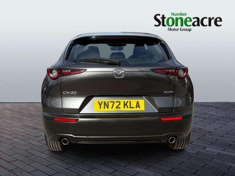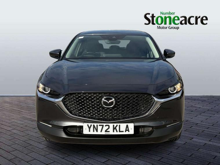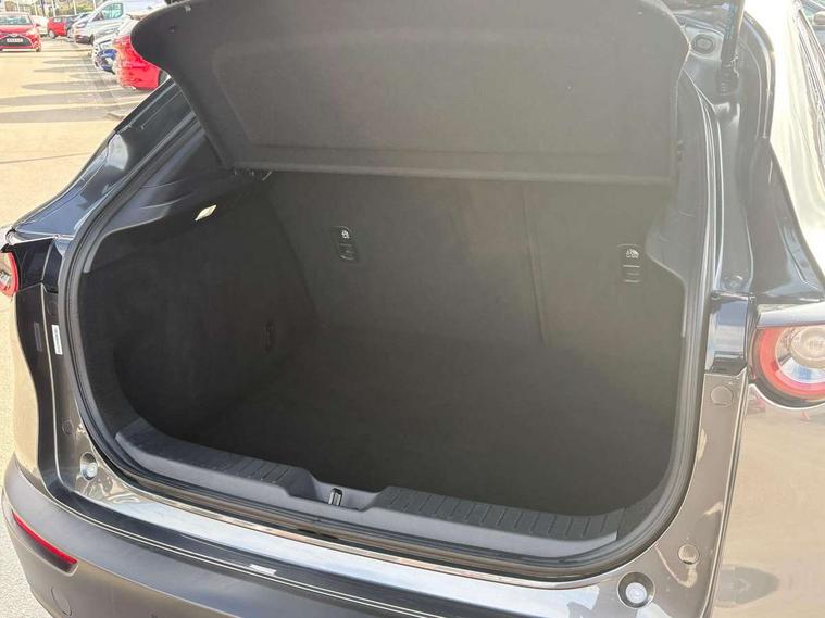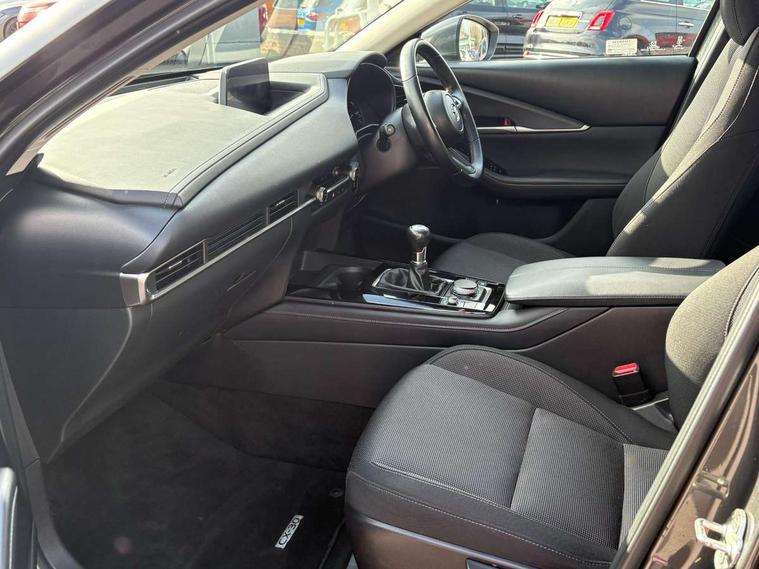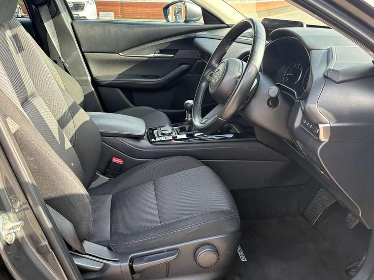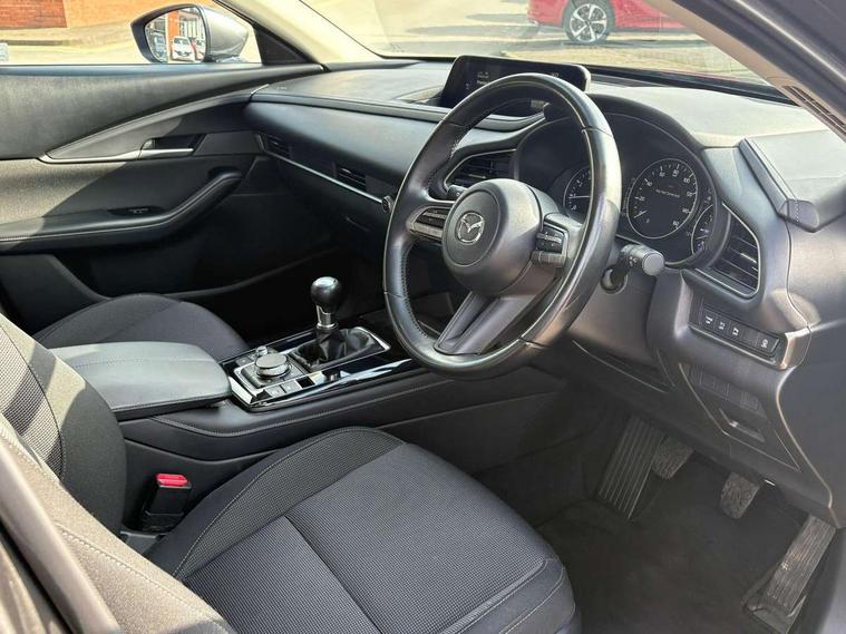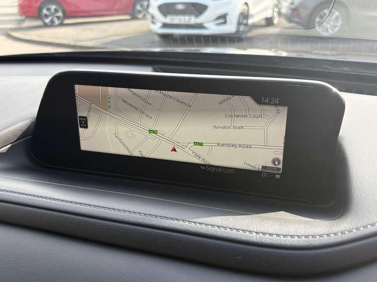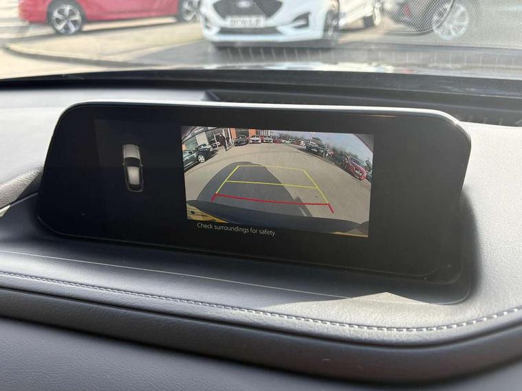 7" TFT Colour driver instrument panel display, 8.8" Colour centre touch screen display with Mazda Connect infotainment, Adaptive cruise control (Mazda radar cruise control), Apple car play/Android Auto, Blind spot monitoring with rear cross traffic alert, Driver attention alert system, E-call with GPS, Emergency stop signalling system, Engine start/stop button, Front and rear parking sensors, Integrated bluetooth, Integrated Mazda navigation system, Intelligent speed assist, Lane keep assist system (LAS) with Lane departure warning system (LDWS), Mazda connected services, PAS, Reversing camera, Service indicator, Tailgate, Traffic sign recognition, Trip computer, Windscreen projected colour active driving display (HUD), Cylinder Deactivation, i-stop, 2 USB charging ports in front inner central armrest, AM / FM / DAB radio with 8 speakers, Multimedia Commander including separate volume dial, Steering wheel mounted audio/bluetooth controls, B-pillar and C-pillar garnishes in satin black finish, Auto dimming driver's door mirror, Auto dimming rear view mirror, Auto headlight levelling, Body coloured, electrically adjustable, heated auto power folding door mirrors with integrated indicators, Chrome finish signature wing in front grille, Coming/leaving home lighting function, Dual chrome exhaust, Dusk sensing headlights, Electric front/rear windows with one touch auto up/down, Front kodo turn signal, Gloss black rear roof spoiler, LED headlights with halogen daytime running lights and high beam control, LED rear combination lights, Rain sensing front wipers with adjustable speed and intermittent wipe, Rear fog lights, Rear side wing doors, Rear wiper, Satin black front grille, Third brake light, 12V power outlet in centre console, 3 seat bench in 2nd row, 60/40 split fold down rear seats, Cloth upholstery with interior accents, Dark cloth door panel inserts, Dashboard, door cards and front centre armrest in black cloth, Driver and front passenger visors with covered vanity mirror and driver ticket holder, Driver seat manual slide, recline, height and seat tilt adjust, Driver, front passenger and two rear door storage, Driver, Front passenger and two rear grab handles with coathooks, Dual zone climate control air conditioning with rear air vents, Folding rear centre armrest with two cup holders, Front and rear (x3) head restraints, Front and rear LED lighting, Front armrest, Front centre storage with two cupholders, Front passenger seatback pockets, Front passengers seat manual slide, recline and height adjustment, Gear shift indicator, Glovebox illumination, Heated front seats with 3 stage setting, ISOFIX child seat anchorage points attached on outer rear seats, Leather wrapped gear shift knob, Leather wrapped steering wheel with telescopic and tilt adjustment, LED luggage compartment lighting, Light roof headlining and pillars, Roof mounted sunglasses holder, Single front passenger seat, 3 point ELR front seat belts x2 with pretensioners, 3 point ELR rear seat belts, Anti-lock braking system (ABS), Drivers knee airbag, DSC - Dynamic Stability Control, Electronic parking brake with auto disengage function and auto hold function, Front and rear curtain airbags, Front dual stage driver and single stage front passenger airbags, Front passenger airbag cut-off switch, Front side airbags, Front smart city brake support, G-Vectoring control plus, Hill launch assist, Manual child lock in rear doors, Mild Hybrid system with regenerative braking, Seatbelt reminder for driver/front passenger and rear seats, Traction control system (TCS), Tyre pressure monitoring system (TPMS), Remote central locking with deadlocking and automatic door lock when driving, Smart keyless entry, Thatcham accredited alarm and immobiliser, 16" Grey alloy wheels, Emergency tyre repair kit,