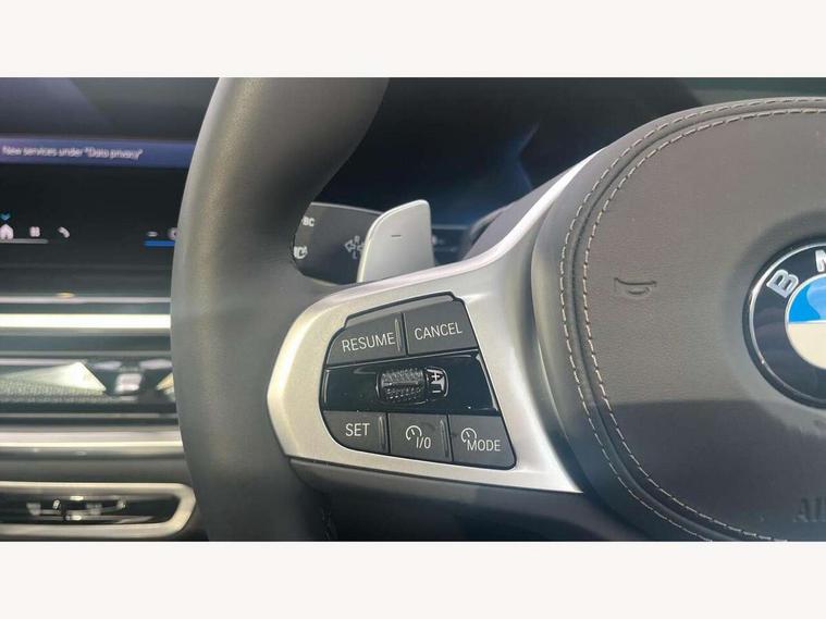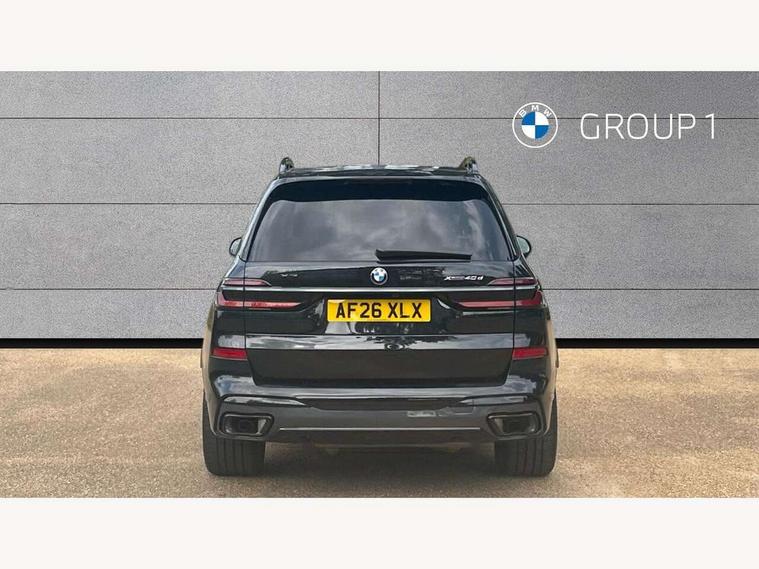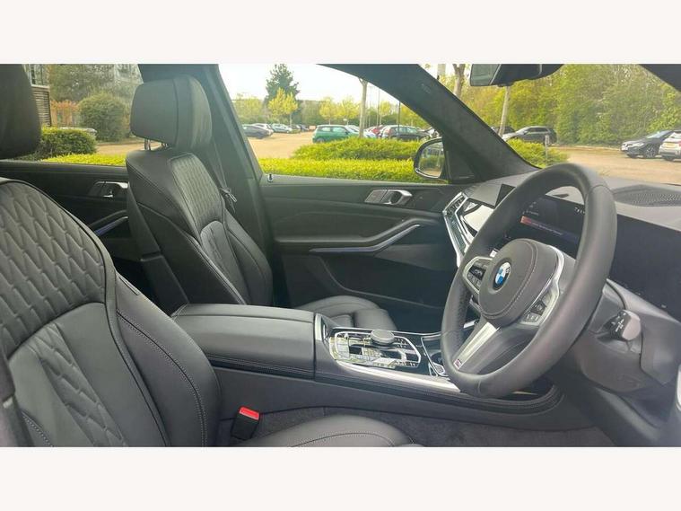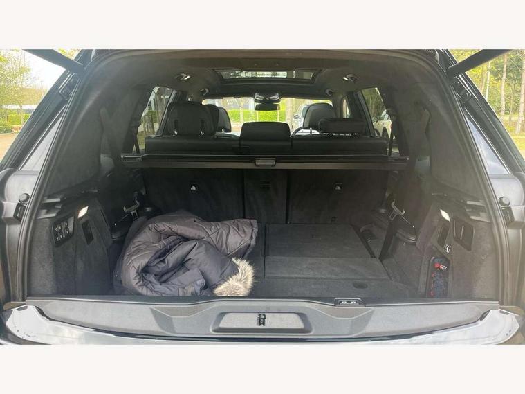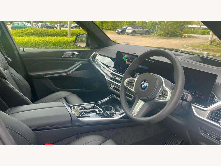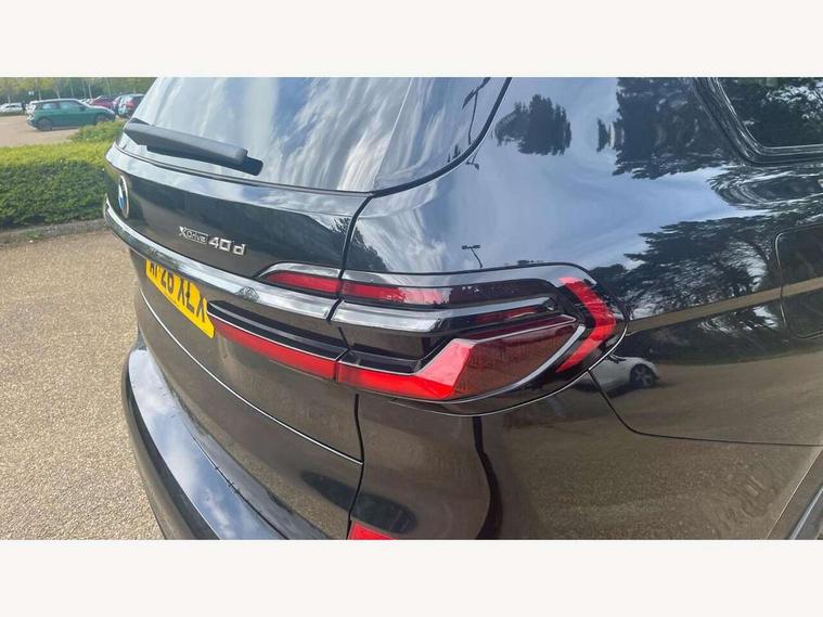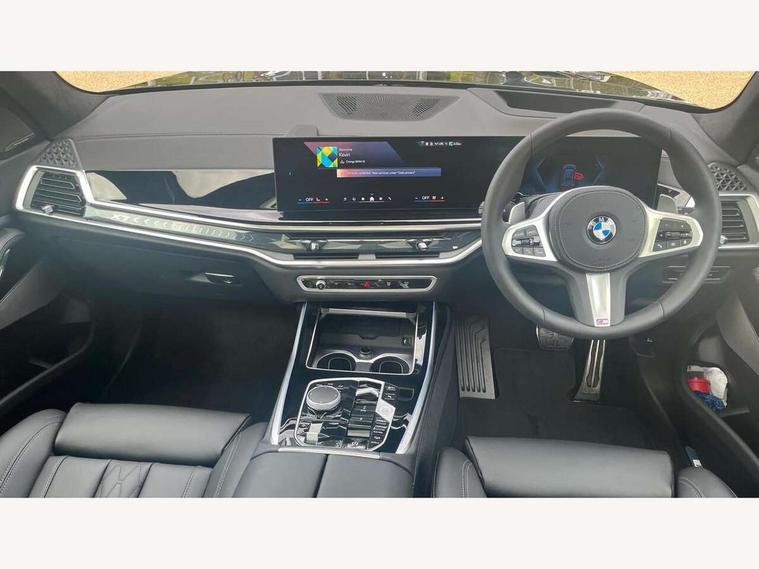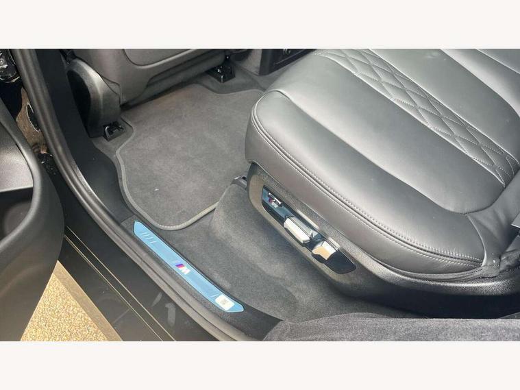 Attentiveness assist, Automatic start/stop function, Automatic tailgate operation, BMW ConnectedDrive online services, BMW Drive recorder, BMW gesture control, BMW Teleservices, Brake pad wear indicator in front and rear, Condition based service, Integrated owner's handbook, Live Cockpit Professional with head up display including 12.3" instrument cluster and 14.9" central display, Parking assistant pro including reversing assistant, PDC, lateral parking aid, reversing assist camera, parking drive off monitoring, 48V Mild hybrid technology, 8 speed automatic with steptronic transmission including automatic hold function and gearshift paddles on the steering wheel, Drive experience switch with comfort mode + ECO PRO + sport mode, Front and rear air suspension, Permanent all wheel drive, 2 rear USB-C ports, 2x Front USB (1x USB-C, 1x USB-A), DAB radio, Personal eSim, Acoustic glazing, Adaptive air flap control bars in high gloss black, Air breather and door claddings in high gloss chrome, Body coloured wheel arches, Dynamic brake lights with LED technology, Electrically adjustable and heated aspheric folding side mirrors with auto dimming, electric fold in function, automatic parking function, Exterior and central air inlets in front bumper painted pearl chrome, Follow me home headlight function, Frameless interior mirror, Front and rear electric windows, Heated windscreen washer nozzles, High beam assist, High gloss black shadow line roof rails, High gloss black shadowline trim in side/window frame, window recess cover, window guide, B and C pillar, mirror triangle, mirror base, mirror frame, Integrated turn indicators (door), LED daytime running lights, LED rear lights, LED third brake light in rear spoiler, Rain sensor with automatic headlight activation and windscreen wiper control, Rear side wing doors, Side window graphic bars + B and C pillar trim panels in black high gloss, Sump guard front and rear painted in silver, Trailer stabilisation logic, 12V - Power sockets with 2x centre console and 1x luggage compartment, 2 seat bench in 3rd row, 2x cupholders in front, rear centre armrest and two in third row seats, 3 seat bench in 2nd row, 3 spoke M leather multifunction steering wheel, 40:20:40 split folding rear seat backrests, Ambient lighting strip in the instrument panel with illuminated, Armrest in front centre console, Compartment in front of cupholder, Driver and front passenger sunvisors with illuminated vanity mirrors and ticket holder, Electrical steering column with adjustable height and length with activation and control on the steering column, Entry sills with illuminated M inscription, Fold down flush into floor of luggage compartment 50:50, Front and rear colour co-ordinated with all standard carpet colours, Front and rear door pockets, Front and rear side armrests integrated into door trim, Front seat back pockets, Grab handles, Height adjustable front headrests, Height adjustable rear headrests, Lockable glove compartment, Nano filter, Single front passenger seat, Soft close doors, Storage tray and compartment with lid in centre console, Wireless charging tray, Additional storage compartment pack - X7, Ambient light interior pack - X7, Connected Package Professional - X7, Interior lighting pack - X7, Luggage compartment pack - X7, M aerodynamics pack - X7, M Sport pack - X7, 3 point seatbelts on all seats, front pyrotechnic belt tensioners, stopper and belt force limiters, front and outer rear seats, Acoustic protection for pedestrians, Active protection, Airbag - Front driver and passenger, side airbags and Head airbags, Anti lock braking system (ABS) with cornering brake control, BMW emergency call, Child seat ISOFIX attachment rear outer seats in 2nd row and both seats in 3rd row includes top tether, Comfort access system with digital key plus, Comfort cushion seats for outer seats in 2nd row, Crash sensor inclu activation of airbags, interior light, safety battery terminal clamp, hazard warn flasher, unlock doors, deactivation of fuel pump, DSC - Dynamic Stability Control, Dynamic Traction Control - DTC, Electromechanical parking brake with automatic drive away release and auto hold function, Front and rear brake discs with interior ventilation, Hill descent control, Integrated braking system, Manual child lock in rear doors, PC iBrake PostCrash approach control warning with light braking function, Tyre pressure monitoring system, Tyre pressure sensors, Variable torque distribution, Warning triangle and first aid kit, Alarm, Central locking including 2 vehicle keys with integrated emergency key, Engine immobiliser, Locking wheel bolts, Galvanic embellisher for controls,