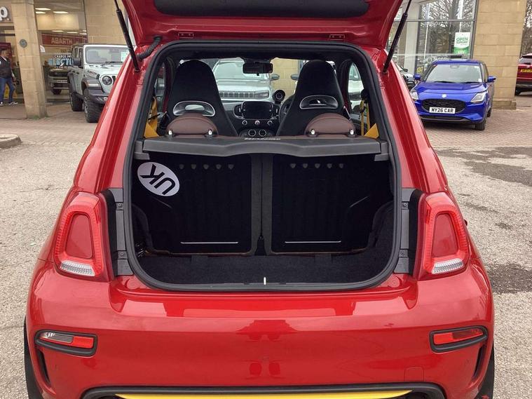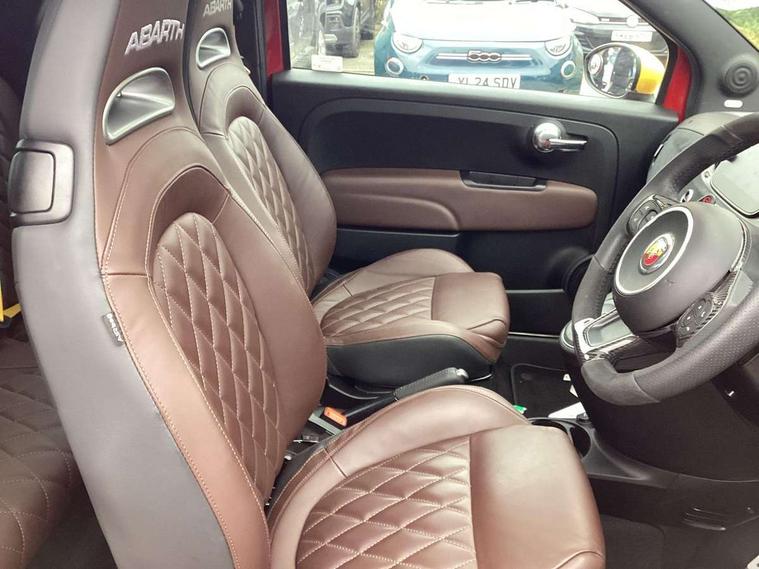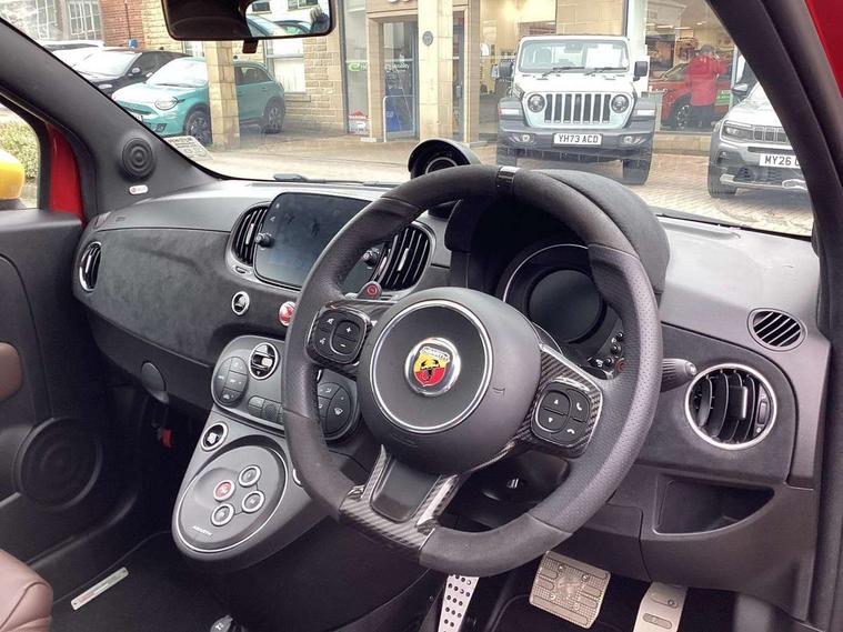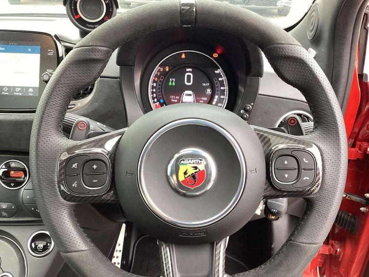7" TFT instrument display with sports mode, Alcantara cockpit, Apple car play/Android Auto, Dualdrive PAS, eCall emergency call system, Garrett turbo, Rain and dusk sensors, Rear parking sensors, Sports button, Trip computer, Wakeup screen for 7" radio, Koni front and rear suspension with Frequency Selective Damping technology, Torque transfer control (TTC), 3rd brake light, 695 side badge, Dual mode record monza exhaust system with four tailpipes, Electric adjustable heated door mirrors, Electric front windows, Front fog lights, LED daytime running lights, Oil cap with key, Privacy glass, Rear window defroster, Rear wiper, Tar cold grey front and rear bumper mouldings and door handles, 12V socket, 2 seat bench in 2nd row, Aluminium gearknob, Driver/front passenger seat height adjustment, English handbook, Fabric abarth corsa racing upholstery by sabelt with anthracite grey shell, Floor mats, Front head restraints, Front passenger seat memory, Glovebox, Height adjustable steering wheel, High performance BMC air filter, Rear headrests, Single front passenger seat, Sports steering wheel in leather and Alcantara with carbon fibre detailing, Stainless steel pedal covers, Cool Pack - 695/695C, Tech Pack - 695/695C, 240x11 mm Drilled rear brake discs, 305x28 mm Drilled and ventilated front brake discs, ABS, Driver and passenger airbags, Drivers knee airbag, ESP + ASR/MSR + HBA + Hill holder, Front side airbags, Head protection side airbag, Tyre pressure monitoring system, Window airbags, Alarm, Immobiliser, Power door locks, Remote central locking, Tar cold grey dashboard, Fix and go kit,