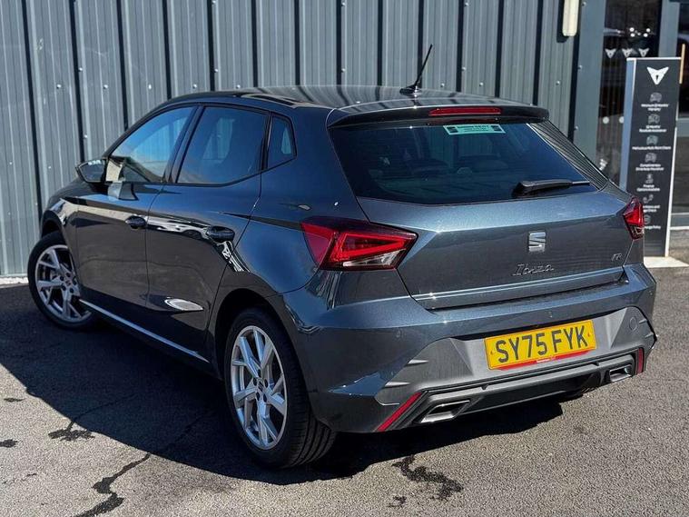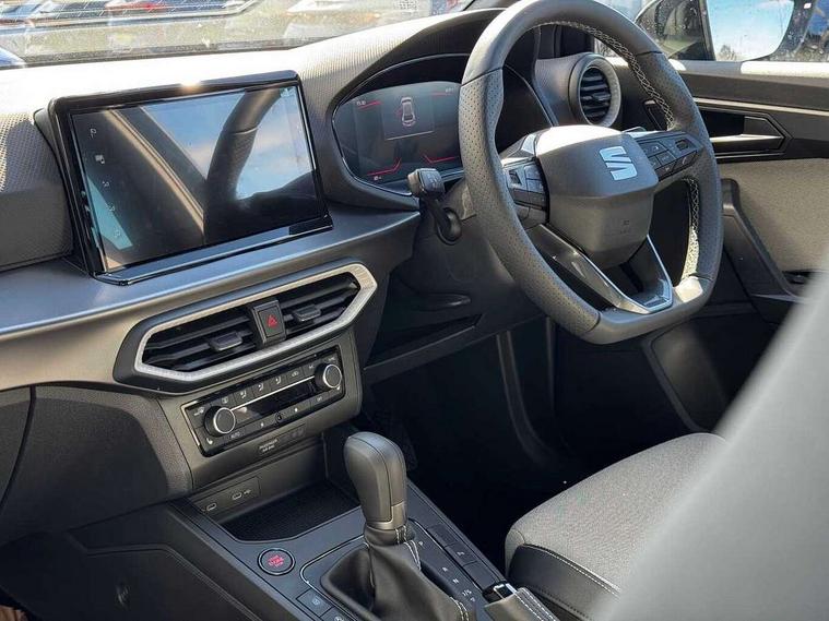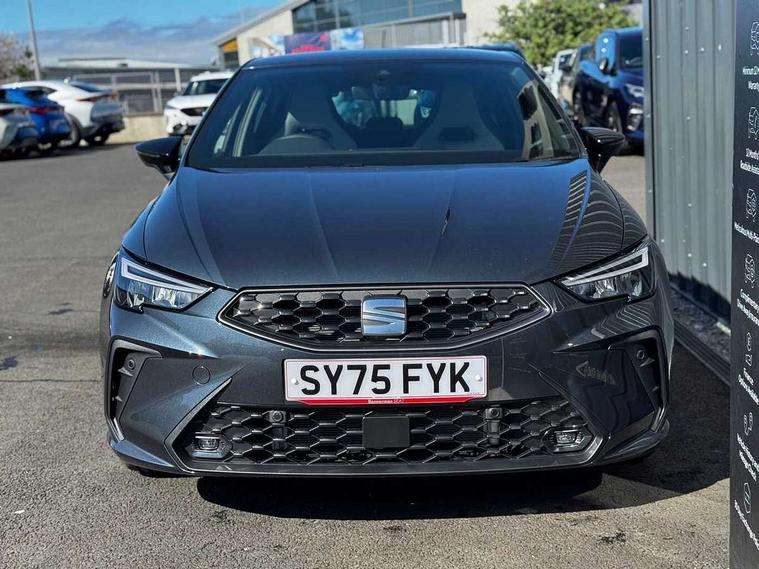 8" Digital cockpit, 9.2" touchscreen navigation system with type C USB socket, Voice control and DAB/AM/FM radio, Bluetooth audio streaming with handsfree system, Cruise control and speed limiter, E-call, Front parking sensors, Full Link Smartphone integration with Mirror Link, Apple Car Play, Google Android Auto with USB Type C cable for Apple and Android devices, PAS, Rear view camera, SEAT Drive profile - Four different models normal-sport-eco-individual, steering response, throttle response and gear shifts mode, Start/stop system, Sport suspension, Body colour mirror caps, Body coloured bumpers, Body coloured door handles, Dark tinted rear windows, Electric front and rear windows, Electrically adjustable, heated, folding exterior mirrors, FR styled rear diffuser, Front foglights with cornering functionality, Interior auto dimming rear view mirror, LED 3rd brake light, LED daytime running lights, LED license plate light, LED taillights, Rear fog lights, Rear side wing doors, Rear wash/wipe, SEAT Design Full LED automatic headlamps with signature dynamic headlight range control and coming and leaving home feature, 3 seat bench in 2nd row, 60/40 split and folding rear seats, Black headlining and chrome detailing, Cloth upholstery, Dual zone climate control with combination filter, Front integrated headrests, Front reading lights, Heated front seats, Height adjustable front seats, Height adjustable rear headrests, Interior ambient lighting in footwell, Isofix, Nappa leather multifunction flat bottomed sports steering wheel, Red coloured interior air vents with ambient lighting, Single front passenger seat, Sports bucket seats, Storage pockets on back of front seats, Sunvisors with mirrors and card holder on drivers side, Safe and Driving pack (S) - Ibiza, ABS, Child locks on rear doors, Driver and passenger airbags, Front driver and passenger side airbags with curtain airbag and front passenger airbag deactivation, Hill hold control, Three point seat belts on all rear seats, Tyre pressure monitoring system, Anti-theft alarm with interior monitoring, backup horn, and towing protection, KESSY Keyless entry and go with Safelock, Locking wheel bolts, 17" Dynamic alloy wheels in Nuclear grey,