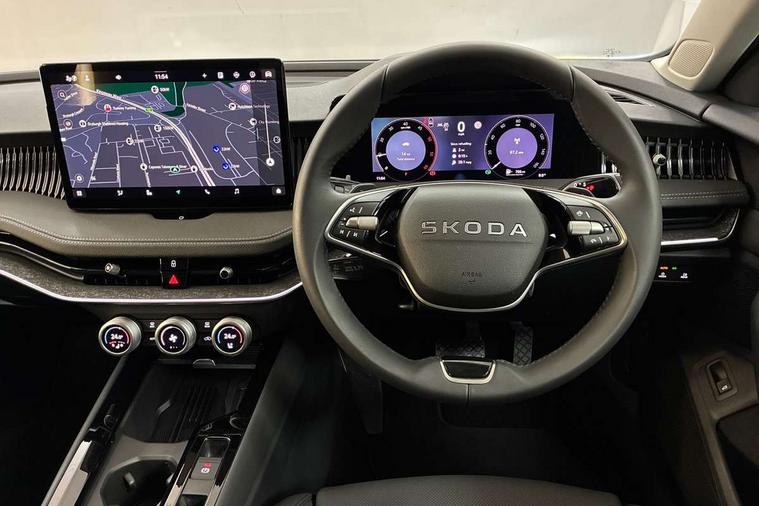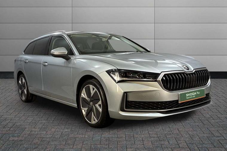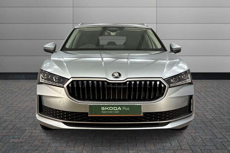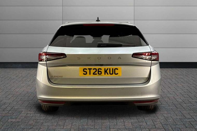 13" touchscreen display with satellite navigation, 4x USB-C ports (2x in front centre console and 2x in rear) (45W), Adaptive cruise control with speed assist, lane assist plus and traffic tram assist, Blind spot detection with door exit warning, Bluetooth system, CareConnect and Emergency Call, ChatGPT functionality, Driver fatigue sensor, Easy boot close funtion, Front assist with extended predictive pedestrian protection, Front cross traffic assist, Quick start all heating software functionality, Stop/start engine system, Traffic sign recognition, Turn assist with evasive assistance, Virtual Cockpit - 10.25" digital display, Voice control system, Washer for rear camera, Wireless charging for one smartphone (15W) with cooling function, Wireless smartlink apple carplay, SmartLink+ android auto, DAB Digital radio, Display cleaner, FM radio connection, Web radio connection, Acoustic side windows and interior noise suppression, Backdrop lighting, Body colour door handles, Body coloured door mirrors, Chrome roof rails, Chrome window surround, Dark chrome grille surround, Dynamic range control with poor weather light and integrated fog light, Electrically adjustable, heated, folding and driver side auto-dimming door mirrors with memory function, integrated indicators and logo projection, Frameless auto-dimming rear view mirror with USB-C, Ice scraper in fuel tank cap, LED 3rd brake light, Light assist with High beam control, Light assistant (coming/leaving home/tunnel light), Privacy glass, Rear fog lights (x2), Rear roof spoiler, Rear side wing doors, Rear windscreen wiper, Unique dark chrome design logo on alloy wheels, Windscreen wipers with rain sensor, 12V socket 1x centre console 1x boot, 14-way electrically adjustable, memory, front seats with 4-way pneumatic lumbar support, and extendable thigh support with smart comfort entry aid, 2x cargo elements in boot, 2x light in boot, 3 seat bench in 2nd row, 4x foldable bag hooks in boot, 60:40 Split folding rear seats, Advanced massage function for front seats, Bottle holders in the front doors 1.5 litre bottle and rear 1.5 litre bottle, Cup holder in front with easy open mat, Front armrest with storage box, Front sports comfort seats, Heated and ventilated front seats, Height adjustable front and rear head restraints, Illuminated glovebox, Interior lights with control switches, Isofix child seat fittings in outer rear and front passenger seats, LED front and rear reading lights, Single front passenger seat, Skoda lettering on steering wheel, Storage compartment with cover, Storage pockets on back of front seats, Sun visors with illuminated vanity mirrors, Ticket holder on A Pillar, Tri zone climate control, Umbrella in driver's door, Light and view package - Superb, Transport package - Superb Estate, 3 rear seatbelts, 8 Airbags - Front driver and passenger, front side driver and passenger, centre, curtain front and rear, drivers knee, Crew protect assist, Driver and passenger seatbelts with warning light, Electronic parking brake, ESC including ABS, EBV, MSR, ASR, EDS, HBA, DSR, RBS, CBC, multi-collision brake (MKB) and Auto hold, Hill hold assist, Power operated child lock in rear doors, Alarm with interior monitoring tilt sensor and back up horn, Backrest remote release from trunk, Electronic engine immobiliser, Keyless start/stop, Remote central locking with SAFE system, Third key, Walk away locking, Decorative front door sills,
