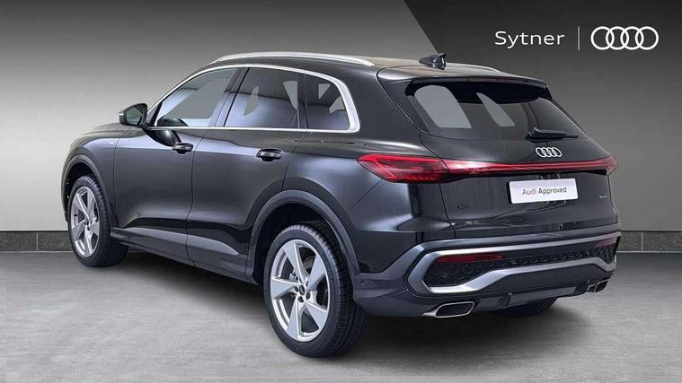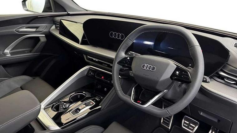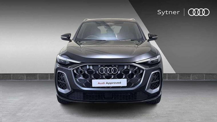 Adaptive cruise control, Attention and drowsiness detection with driver observation, Audi application store, Audi connect emergency call and service, Audi digital key, Audi drive select, Audi smartphone interface, Audi virtual cockpit plus with 11.9" OLED colour display, Camera based traffic sign recognition, Front cross traffic intersection assist, Lane change assistant with exit warning system, rear cross traffic alert and rear turn assist, Lane departure warning system, MMI navigation plus with high resolution 14.5" OLED touchscreen colour display, Park assist plus, PAS, Reversing camera, Swerve assist and front turn assist, Traffic sign based speed limiter, Audi sound system impressive sound with 8 loudspeakers including centre speaker and subwoofer, 6-channel amplifier with a total output of 180 watts, DAB Digital radio, Smartphone compartment with wireless charging, Aluminium roof rails, Auto dimming rear view mirror, Body coloured door mirrors, Electrically adjustable heated and folding + automatically dimming exterior mirrors, Front and rear electric windows, Front door sill trims with aluminium inlays, illuminated with 'S' logo, Grill frame, inlay and front air inlets in matt anthracite chrome, Headlight cleaning system, Heated rear window, High beam assist, High gloss window surrounds, LED headlights plus incl. digital DRL, dynamic coming and leaving home function with turning/all weather/motorway/manouevring and intersection lights, LED rear lights pro incl. dynamic rear indicators and illuminated light strip with animated coming and leaving home function, Logo projection light in exterior mirrors, Privacy glass, Projection third brake light for rear window in LED, Radiator grille in phantom black, Rear and side windows with heat insulating glass, Rear honeycombe grille in matt black with inlay in matt anthracite chrome, Rear side wing doors, Rear wash/wipe, S Line badge on the front wings, S line bumpers in contrasting Volcano grey metallic paint finish, Windscreen with acoustic glazing, 3 rear head restraints, 3 seat bench in 2nd row, 3 spoke leather steering wheel with multi-function buttons with touch control, flattened on top and bottom, with S badging and contrast stitching, 4 way electric lumbar support for driver and front passenger, Black carpets, Comfort centre armrest front, Deluxe 3 zone electronic climate control, Front and rear floor mats, Front sport seats with integrated head restraints, Headlining in black cloth, i-Size child seat mounting on the front passenger side and outer rear seats, i-Size and top tether on the outer rear seats, Increased charging capacity for USB ports 2X100 Watts in rear, 2X60 Watts in front, Interior trim in aluminium look, Luggage compartment lid, electrically opening and closing, Manual steering column adjustment, S embossed logo on front sport seats, Single front passenger seat, Softwrap in black, Stainless steel pedals and footrest, Steering wheel grips in perforated leather and shift paddles, Ambient lighting package plus - Q5, Rear seat bench plus pack - Q5, Storage and luggage compartment pack with luggage net - Q5, 3x3 point rear seatbelts, ABS, Acoustic vehicle alerting system, Convenience key with safelock, Driver and front passenger airbag with passenger airbag deactivation, Electric child safety locks, First aid kit with warning triangle and high visibility vests, Front emergency brake assist, Front side airbags with head airbag system and front interaction airbag, Hill hold assist, Rear seat occupant reminder, Tyre pressure loss indicator, Anti-theft wheel bolts, Thatcham approved category 1 anti theft alarm, Accent surfaces and control buttons in gloss black, Anthracite matt brushed aluminium inlays with linear embossing, Black dashboard with contrast stitching, Upper and lower interior elements in artificial leather, Tyre repair kit,