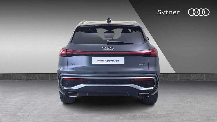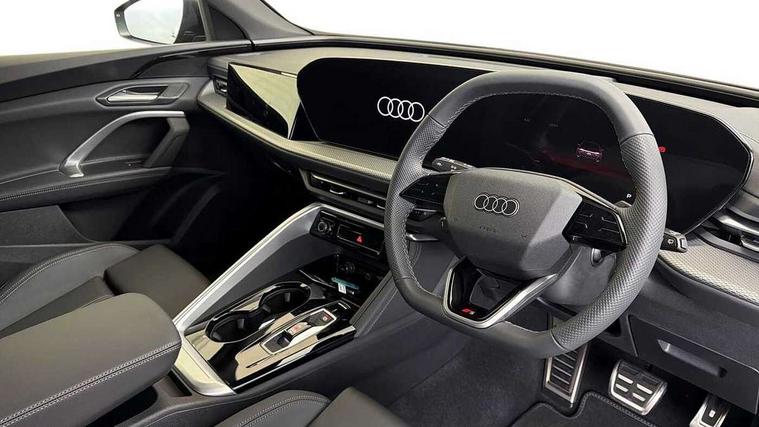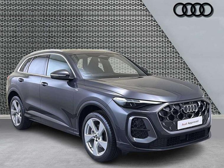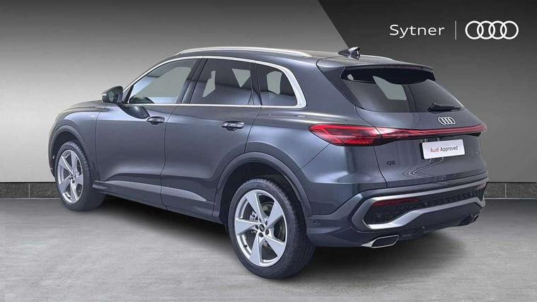Adaptive cruise control, Attention and drowsiness detection with driver observation, Audi application store, Audi connect emergency call and service, Audi digital key, Audi drive select, Audi smartphone interface, Audi virtual cockpit plus with 11.9" OLED colour display, Camera based traffic sign recognition, Front cross traffic intersection assist, Lane change assistant with exit warning system, rear cross traffic alert and rear turn assist, Lane departure warning system, MMI navigation plus with high resolution 14.5" OLED touchscreen colour display, Park assist plus, PAS, Reversing camera, Swerve assist and front turn assist, Traffic sign based speed limiter, Audi sound system impressive sound with 8 loudspeakers including centre speaker and subwoofer, 6-channel amplifier with a total output of 180 watts, DAB Digital radio, Smartphone compartment with wireless charging, Aluminium roof rails, Auto dimming rear view mirror, Body coloured door mirrors, Electrically adjustable heated and folding + automatically dimming exterior mirrors, Front and rear electric windows, Front door sill trims with aluminium inlays, illuminated with 'S' logo, Grill frame, inlay and front air inlets in matt anthracite chrome, Headlight cleaning system, Heated rear window, High beam assist, High gloss window surrounds, LED headlights plus incl. digital DRL, dynamic coming and leaving home function with turning/all weather/motorway/manouevring and intersection lights, LED rear lights pro incl. dynamic rear indicators and illuminated light strip with animated coming and leaving home function, Logo projection light in exterior mirrors, Privacy glass, Projection third brake light for rear window in LED, Radiator grille in phantom black, Rear and side windows with heat insulating glass, Rear honeycombe grille in matt black with inlay in matt anthracite chrome, Rear side wing doors, Rear wash/wipe, S Line badge on the front wings, S line bumpers in contrasting Volcano grey metallic paint finish, Windscreen with acoustic glazing, 3 rear head restraints, 3 seat bench in 2nd row, 3 spoke leather steering wheel with multi-function buttons with touch control, flattened on top and bottom, with S badging and contrast stitching, 4 way electric lumbar support for driver and front passenger, Black carpets, Comfort centre armrest front, Deluxe 3 zone electronic climate control, Front and rear floor mats, Front sport seats with integrated head restraints, Headlining in black cloth, i-Size child seat mounting on the front passenger side and outer rear seats, i-Size and top tether on the outer rear seats, Increased charging capacity for USB ports 2X100 Watts in rear, 2X60 Watts in front, Interior trim in aluminium look, Luggage compartment lid, electrically opening and closing, Manual steering column adjustment, S embossed logo on front sport seats, Single front passenger seat, Softwrap in black, Stainless steel pedals and footrest, Steering wheel grips in perforated leather and shift paddles, Ambient lighting package plus - Q5, Rear seat bench plus pack - Q5, Storage and luggage compartment pack with luggage net - Q5, 3x3 point rear seatbelts, ABS, Acoustic vehicle alerting system, Convenience key with safelock, Driver and front passenger airbag with passenger airbag deactivation, Electric child safety locks, First aid kit with warning triangle and high visibility vests, Front emergency brake assist, Front side airbags with head airbag system and front interaction airbag, Hill hold assist, Rear seat occupant reminder, Tyre pressure loss indicator, Anti-theft wheel bolts, Thatcham approved category 1 anti theft alarm, Accent surfaces and control buttons in gloss black, Anthracite matt brushed aluminium inlays with linear embossing, Black dashboard with contrast stitching, Upper and lower interior elements in artificial leather, Tyre repair kit,