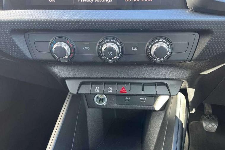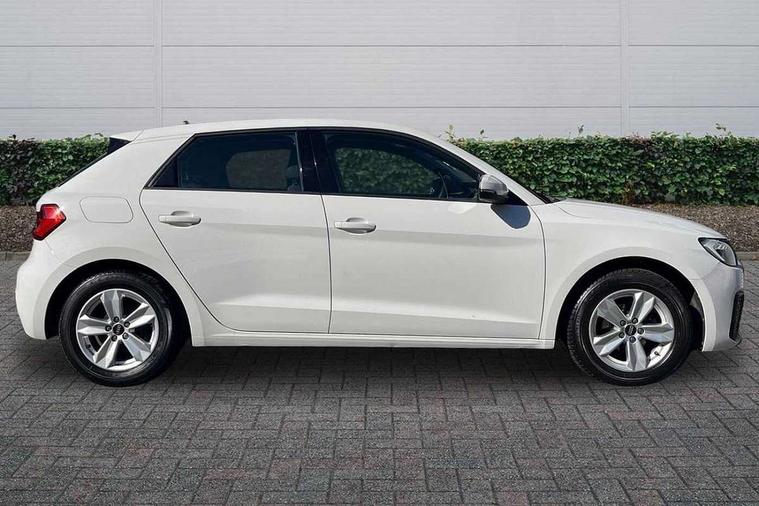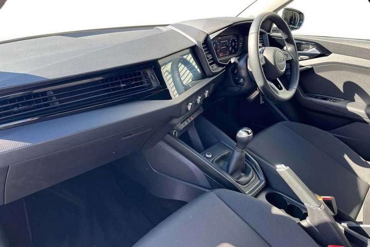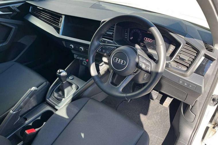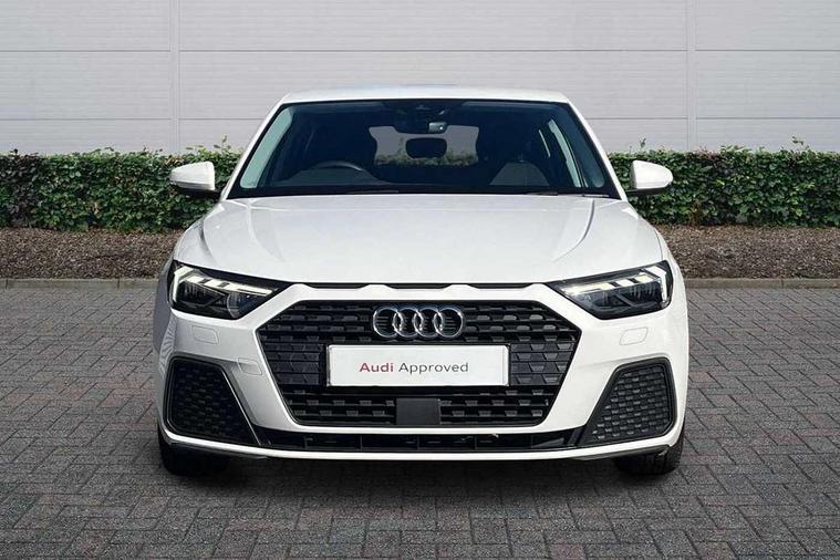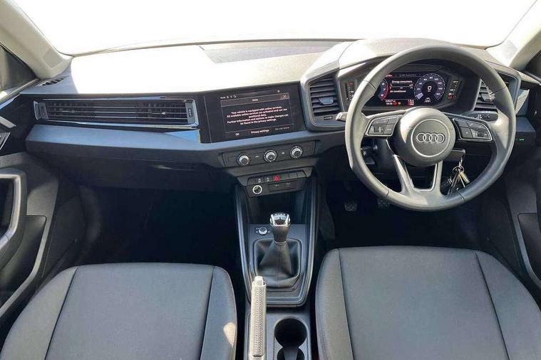 10.25" Digital instrument cluster display classis style instrument dials + speed, odometer, time, outside temperature, telephone menu + fuel level warning, Audi connect safety emergency and service including E-call, Audi smartphone interface with connect compatible smartphone via USB directly MMI display + Nav, music, third party apps controlled via MMI controller, Automatic start/stop system, Bluetooth interface, Driver's information system, Electromechanical power steering, Lane departure warning system, Service interval indicator, Speed limiter, Voice control system, Washer fluid level indicator, Dynamic suspension, 1 x SDXC card reader, 2 x USB type C connection points, 6 passive loudspeakers, DAB Digital radio, MMI radio plus with 8.8" colour MMI display screen and MMI touch, Auto dimming rear view mirror, Body coloured bumpers, Body coloured door mirrors, Electric front and rear windows, Electrically adjustable, heated, folding door mirrors with integrated LED side indicator, Front side air inlets with front spoiler lip and rear diffuser in matt black grained, Heat insulating glass windscreen and side windows, Heated rear windscreen, LED headlights with LED rear lights + dynamic rear indicators + headlight adjustment and high beam, turning light + LED daytime running lights, Radiator grille in matt black, Rain and light sensors, Rear fog lights, Rear wiper, 12V socket in centre console with two cup holders, 3 rear seats with headrests, 3 spoke leather multifunction plus steering wheel, 40:60 Split folding rear seat or folded fully, Air vents, door handle recesses and centre console in black, Delta cloth upholstery, Driver and passenger seat with manual height adjust with forward and backwards adjustment, Front head restraints, Front/rear floor mats, ISOFIX child seat mounting for front passenger and outer rear seats including top tether attachment point of outer rear seats, Leather gear knob with aluminium trim, Leatherette handbrake grip, Luggage compartment light with front and rear reading lights, Manual air conditioning, Titanium grey cloth headlining, Luggage compartment pack - A1, 3x3 point rear seatbelts, Audi pre-sense front with pedestrain and cyclist recognition, Brake assist function, Driver and front passenger airbag with front side and head airbags, Electronic Stability Control including ABS, EBD, ASR and EDL, Front and rear seatbelt reminder, Front passenger airbag deactivation switch, Hill hold assist, Seatbelt height adjustment for front seats, Seatbelt monitoring, Tyre pressure warning light, Warning triangle and first aid kit, Anti theft alarm, Anti theft wheel bolts and loose wheel warning, Immobiliser, Remote central locking with 2 foldaway keys, Black inlays polygon structure, 15" 5 arm design alloy wheels,