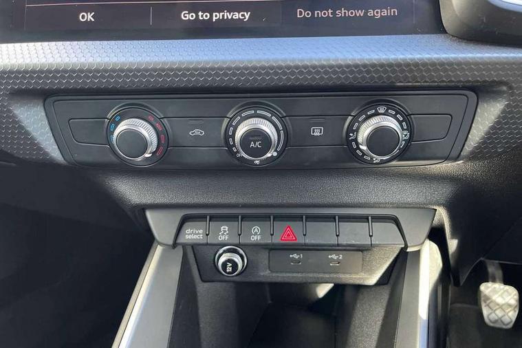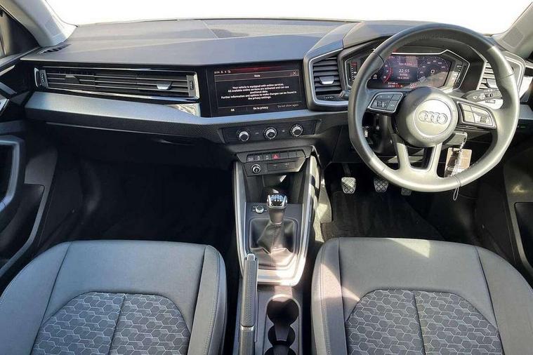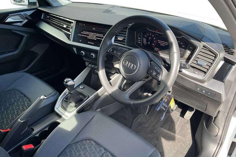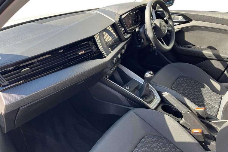 10.25" Digital instrument cluster display classis style instrument dials + speed, odometer, time, outside temperature, telephone menu + fuel level warning, Audi drive select - power steering assistance + engine, Audi smartphone interface with connect compatible smartphone via USB directly MMI display + Nav, music, third party apps controlled via MMI controller, Automatic start/stop system, Bluetooth interface, Cruise control, Driver's information system, Electromechanical power steering, Emergency e-call, Lane departure warning system, Rear parking sensor, Service interval indicator, Speed limiter, Voice control system, Washer fluid level indicator, Dynamic suspension, 2 x USB type C connection points, 6 passive loudspeakers, DAB Digital radio, MMI radio plus with 10.1" colour MMI display screen and MMI touch, Auto dimming rear view mirror, Body coloured bumpers, Body coloured door mirrors, Electric front and rear windows, Electrically adjustable, heated, folding door mirrors with integrated LED side indicator, Front side air inlets in grained matt black and C frame in anthracite black, Heat insulating glass windscreen and side windows, Heated rear windscreen, High level LED brake light, LED headlights with LED rear lights + dynamic rear indicators + headlight adjustment and high beam, turning light + LED daytime running lights, Radiator grille and rear diffuser in matt anthracite black, Radiator protective grille frame in matt aluminium silver, Rain and light sensors, Rear fog lights, Rear side wing doors, Rear wiper, Side front spoiler lips in grained matt black, 12V socket in centre console with two cup holders, 3 rear seats with headrests, 3 seat bench in 2nd row, 3 spoke leather multifunction plus steering wheel, 40:60 Split folding rear seat or folded fully, Black front and rear floor mats, Door sill trims with aluminium inlay, Driver and passenger seat with manual height adjust with forward and backwards adjustment, Front head restraints, Front passenger seat, Grey cloth headlining, Height and reach adjustable steering wheel, ISOFIX child seat mounting for front passenger and outer rear seats including top tether attachment point of outer rear seats, Leather gear knob with aluminium trim, Leatherette handbrake grip, Luggage compartment light with front and rear reading lights, Manual air conditioning, Manually adjustable lumbar support in front seats, Novum cloth upholstery with front sport seats, Luggage compartment pack - A1, 3x3 point rear seatbelts, Audi pre-sense front with pedestrain and cyclist recognition, Brake assist function, Driver and front passenger airbag with front side and head airbags, Electronic Stability Control including ABS, EBD, ASR and EDL, Front passenger airbag deactivation switch, Hill hold assist, Manual rear child locks, Seatbelt height adjustment for front seats, Seatbelt monitoring, Tyre pressure warning light, Warning triangle and first aid kit, Anti theft alarm, Anti theft wheel bolts and loose wheel warning, Immobiliser, Remote central locking with 2 foldaway keys, Aluminium trim for control switches, air vents and digital instrument cluster, Black dashboard, Silver grey accent areas including air vents, door handle recesses and centre console in diamond paint finish, Slate grey inlays polygon structure in fine paint finish,