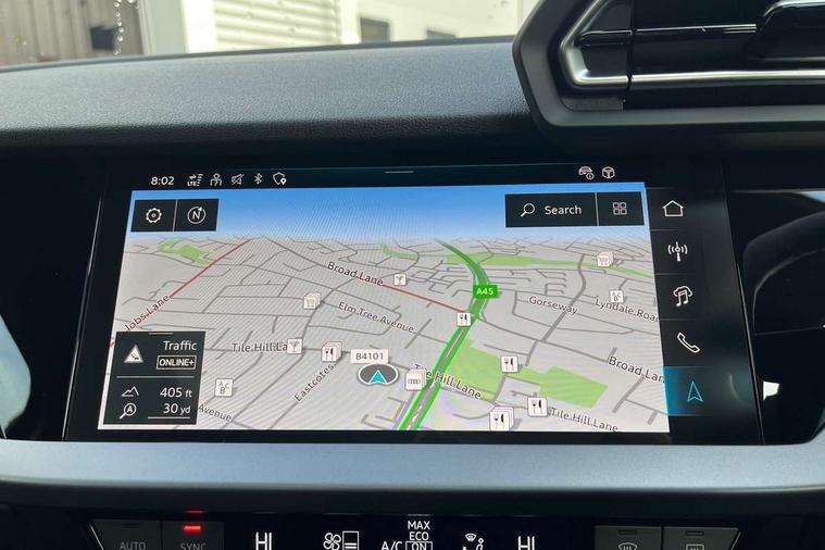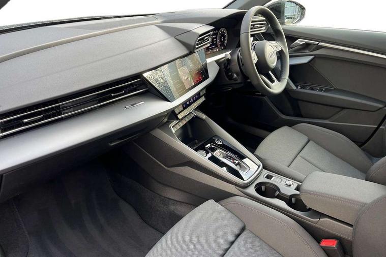 Adaptive cruise control (ACC), Adjustable speed limiter, Audi drive select (Auto, Comfort, Dynamic, Efficiency and Individual), Audi virtual cockpit plus - 12.3" full HD resolution dynamic digital instrument cluster, Automatic start/stop system with recuperation, Bluetooth interface, Camera based traffic sign recognition, Collision avoidance assistant, Driver attention and fatigue detection, e-Call (emergency call), Electromechanical power speed sensitive steering, Emergency assist, Intersection assist, Lane departure warning system, MMI Navigation Plus with high resolution 10.1" colour touch screen display, Park Assist with parking system Plus, Reversing camera, Service indicator, Smartphone interface with app store includes wireless Apple carplay, Android auto and Amazon alexa integration, Trip computer, Voice control system with natural language interaction, Standard suspension, Audi Phonebox light with wireless charging, Audi sound system - 10 loudspeakers including centre loudspeaker and subwoofer, DAB Digital radio, USB ports with charging function in the rear, 3rd brake light, Acoustic glass windscreen, Aluminium window trim, Auto dimming frameless rear view mirror, Body colour exterior mirrors, Electrically adjustable/heated/folding/auto dimming door mirrors with integrated LED indications + kerb view function for passenger side, Exterior model badging, Front electric windows, Front radiator grill in high gloss dark chrome, Front side air inlets in grained matt black with silver frame, Heat insulating glass windscreen, Invisible tailpipe, LED daytime running lights, LED headlights and halogen rear lights, Light and rain sensors, Rear boot, Rear diffuser and grill in grained matt black with silver frame, Rear electric windows, Rear side wing doors, Rear window, rear door windows and rear side windows in clear glass, 12V socket and storage compartment in front centre console, 3 seat bench in 2nd row, 3 spoke leather multifunction steering wheel with gear shift paddles, 3-zone deluxe automatic air conditioning, 4 way electrically adjustable lumbar support for driver and front passenger, 60/40 split folding rear seat bench, Black front and rear floor mats, Front and rear headrests, Front centre armrest, Front door sill trims with aluminium inlay, Heated front seats, Height and reach adjustable steering wheel, i-Size child seat mounting on the front passenger side and outer rear seats, i-Size and top tether on the outer rear seats, Manual boot compartment lid, Manually adjustable front seats, Routine cloth upholstery with front sports seats, Seat side bolsters, Single front passenger seat, Steel grey cloth headlining, Aluminium interior elements pack - A3, LED interior lighting pack -A3, 3x3 point rear seat belts, Driver and front passenger airbag with passenger airbag deactivation, Electronic Stabilisation Control (ESC) including ABS, ASR and EDL, First aid kit with warning triangle and 2 safety vests, Front side airbags with head airbags and interaction airbag, Hill hold assist, Pre-sense front with pedestrian and cyclist detection, Seatbelt monitoring, Tyre pressure loss indicator, Anti theft alarm, Anti-theft wheel bolts, Electronically operated child locks, Immobiliser, Black dashboard, Inlays in volcano grey fine paint finish,