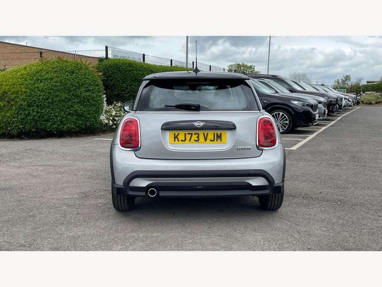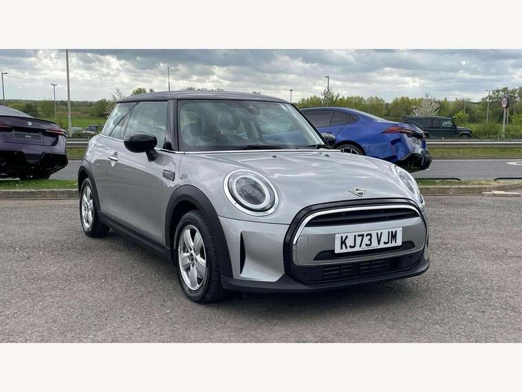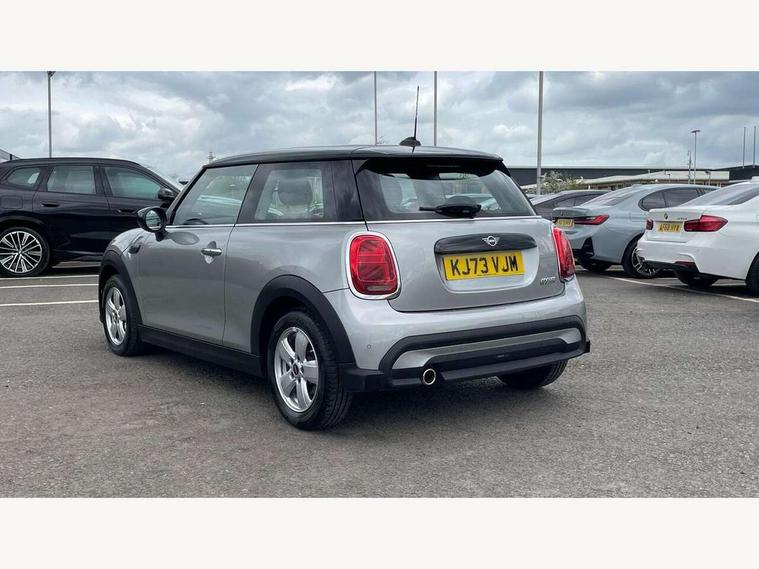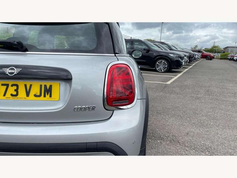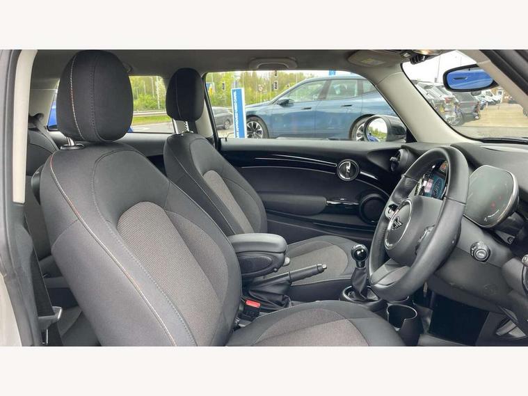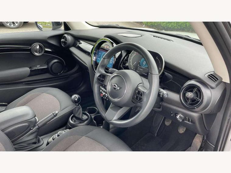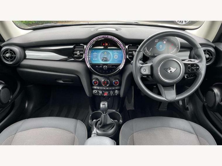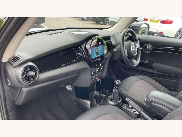 Apple CarPlay, Automatic start/stop function with brake energy recuperation, Compatible mobile phone bluetooth with audio streaming, Digital dashboard display, Electro-mechanical speed dependant steering assistance, Flexible car sharing preparation, Instrument cluster, Mini E-call, MINI TeleServices, On board computer, Service interval indicator, Double Vanos system, Fully variable valve control, High precision injection, Performance Control, 4 speakers in front door trims and underneath front seats, 8.8" touchscreen with LED ring, FM tuner and DAB digital radio, 3rd brake light, Automatic headlight activation switch, Body colour fuel filler cap, Chrome border high gloss black slats radiator grille, Dynamic brake lights, Electric front windows, Exhaust tailpipe on left with chrome finisher, Heated rear window, Heated windscreen washer jets, LED headlight with closed ring and daytime driving lights, Metal door sill strips with MINI imprint, Model logo Cooper on right of tailgate, Rain sensor window wipers, Rear fog lights, Rear LED lights with union jack design, Rear window wiper, Side scuttle panel with integrated indicator, Sun/heat protection glass, White indicator lenses, 12V Accessory socket in centre console, 2 seat bench in 2nd row, 4 lashing eyes in luggage compartment, 60/40 split folding rear seat, Ambient lighting, Chrome interior highlights, Cupholders, Front and rear head restraints, Front and rear isofix with front passenger airbag deactivation, Front floor mats in velour, Glove compartment, Height and length steering column adjustment, Interior lighting with 12 different colours across the dashboard, underneath door bezel with illuminated laser-engraved design on central display, Leatherette gearshift lever and handbrake gaiters, LED reading lights, vanity mirror lights, front foot well light and spotlight on front seats, Mechanical seat adjustment - forward/back & backrest for front seats and driver seat height adjust, Multifunction steering wheel, Passenger seat height adjuster, Satellite grey headlining including grab handles and clothes hooks, Single front passenger seat, Sport leather steering wheel with speed limiter and audio/communication controls, Storage compartments in doors, Sunvisors with vanity mirrors, Driving assistant pack - Mini Hatchback, Premium pack - Hatchback, 3 point seatbelts on all four seats, 6 Airbags - front, side, head and seat belt tensioners, Anti-lock braking system (ABS), DSC - Dynamic Stability Control, Front and rear disc brakes, Single tone fanfare horn, Tyre pressure monitoring system, Alarm system with tilt sensor, monitoring doors, bonnet interior and tailgate, Electronic vehicle immobiliser, Start/stop toggle with keyless go, Piano black interior trim, Tool kit, Tyre repair kit,