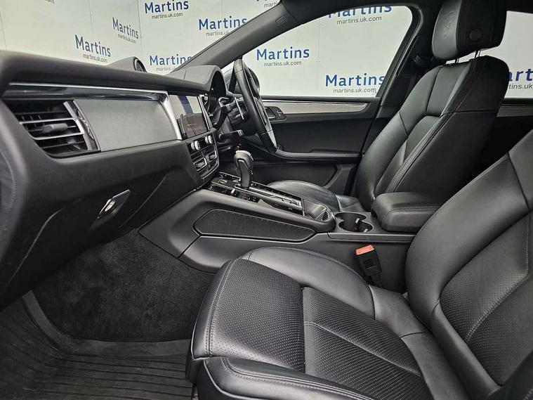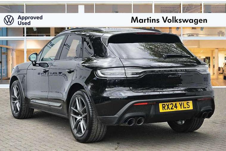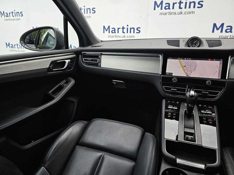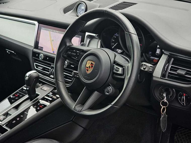 Analogue clock on dashboard, Automatic start/stop system, Automatic tailgate, eCall emergency call system, Instrument cluster with high resolution 4.8-inch TFT display, gear indicator for PDK, service interval display, external temperature indicator, fuel gauge, Off-road button, On board computer, Porsche Communication Management (PCM) including online navigation module, mobile phone preparation, audio interfaces and voice control system, 7-Speed Porsche Doppelkupplung (PDK) with automatic mode and manual controls (gearshift paddles) on steering wheel, Direct fuel injection (DFI), Gasoline particulate filter, VarioCam camshaft control for inlet and exhaust valves, 2 USB sockets in rear centre console, Apple CarPlay with Siri voice recognition, Connect Plus including online navigation, LTE communication module with SIM card reader, wireless internet access, Porsche Car Connect services, DAB Digital radio, Porsche Vehicle Traking System Plus (PVTS Plus), Smartphone compartment with wireless charging, Two USB C charging and connectivity ports in the front centre console storage compartment, Active radiator grille shutters, Automatic headlight activation including welcome home lighting, Bumper system with high strength cross members and two deformation elements + One threaded fixture point for towing eye contained in onboard tool kit, Dynamic cornering lights, speed-sensitive headlight and dynamic range control, adverse weather function, four-point LED daytime running lights, Electric front and rear windows with remote closing function + anti trap + one touch, Electrically folding and heated exterior mirrors, Front light modules with LED position lights and direction indicators, Front windscreen wipers with two speeds, intermittent wipe and rain sensor, Front with integrated cooling air intakes, Fully galvanised body, Heated rear window with automatic switch off, High gloss black side window trims, High level 3rd LED brake light integrated into roof spoiler, Loading edge protection in aluminium, Rear side wing doors, Rear window wiper with intermittent function and washer jet, Roof spoiler in agate grey metallic, Towbar preparation, 3 adjustable rear headrests, 3 rear seats, 3 zone auto climate control separate temperature setting+air recirculation include quality sensor, airflow regulation+AC MAX button+humidity sensor, 40:20:40 split folding rear bench seat, Cloth hook b-pillar, Floor mats with Porsche logo, Fold up centre console armrest with fore/aft adjustment, Front and rear bottle holders in door panels, Front headrests, Front passenger seat, Glove compartment, Isofix fastening system for child seats on outer rear seats, Luggage compartment cover, Particle/pollen filter with active carbon filter, Rear armrest with 2 cupholders, Storage bin in centre console, Storage compartment in side of luggage compartment and storage compartment in spare wheel recess, Storage pocket in front and rear doors, Two integrated cup holders in front with variable diameter, Two socket 12V power outlets in front console and luggage compartment, Uncovered storage compartment in centre console, Ambient comfort lighting pack - Macan, Lower exterior trim package in black - Macan, Sport chrono package including mode switch - Macan T, 3-point automatic seatbelts with front and outer rear seats pretensioners and force limiter + manually height adjustable seatbelt + reminder warning, Auto hold function, Black painted brake calipers, Child locks on rear doors, Curtain airbags along entire roof frame and side windows from A pillar to the C pillar, Electronic parking brake, Front passenger airbag deactivation facility for installation of child seats indicator in overhead console, Front side airbags integrated into seat, Full size driver and passenger airbags, Internally vented brake discs with diameter of 350mm at front and 330mm at rear, Multi-Collision braking, Porsche hill control (PHC), PTM(Porsche Traction Management) and All-wheel drive with map-controlled multi-plate clutch, Roll over sensor for curtain airbag and seatbelt pretensioners, Side impact protection in doors, Tyre pressure monitoring system, Vehicle stability system, Porsche stability management (PSM) including ABS, ASR, ABD, MSR and trailer stability management, Vented discs brake with 4 piston aluminium monobloc fixed caliper at front, Vented discs brake with combination floating calipers at rear, Alarm system with ultrasonic interior surveillance, Dashcam preparation, Engine immobiliser with key transponder, Remote control central locking, Accent trims with silver coloured finish,