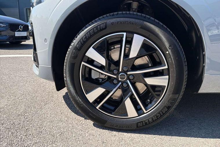11.2" centre console touch screen, 12.3" Progressive Driver Display, 360 degree surround view parking camera with side proximity sensors, Adaptive cruise control, Adjustable steering wheel force, Android auto (Wired), Apple carplay (wired), Bluetooth handsfree system, Drive mode settings, Driver alert control with lane keeping aid, Driver understanding system, Emergency services call system, Front and rear park assist, Google Automotive Services, Intelligent speed assistance, Oncoming Lane Mitigation, PAS, Power operated tailgate with handsfree opening and closing, Service interval indicator, Speed limiter, Speed sensitive steering, Trip computer, Volvo cars services with app, Volvo on call with App, Wireless/Inductive Mobile Phone Charging, 2 phase on board charger 6.4kW (home charging limited to 3.7kW), 6m 3 phase 16amp Type 2 / mode 3 charge cable, 8 speed automatic transmission with start/stop + manual change functions, Electric rear axle drive, Recharging port located in nearside front wing, DAB Digital radio, Low speed exterior sound speaker, Premium Sound by Harman Kardon, dirac unison, dolby pro logic II surround sound, 13 speakers/600W output and fresh air subwoofer, Steering wheel remote infotainment controls, Adaptive brake lights with high level LED brake lights, Auto dimming interior + exterior mirrors, Automatic headlight levelling system, Automatic LED Headlights + Active high beam incorporating daytime running lights, Electric adjustable/heated/auto power folding door mirrors, Electric front+rear windows, Front aluminium tread plates, Heated front windscreen, High gloss black door mirrors and window surround, High gloss black front and rear bumper decoratives, High gloss black mesh front grille with high gloss black surround, Home safe and approach lighting, Integrated roof rails in high gloss black, Puddle lights, Rain sensor with automatic windscreen wiper activation, Rear side wing doors, Rear wiper, Roof antenna, Roof spoiler, Tinted windscreen, Visible VIN plate, 12V socket in front tunnel console and luggage compartment, 2 zone electronic climate control with Clean zone air quality system and pollen filter, 3 seat bench in 2nd row, 3 Spoke tailored steering wheel with chrome trim, A-pillar parking ticket holder, Air purifier particulate matter (PM) 2.5 filter, B Pillar ventilation, Bright metal luggage scuff plate, Centre console cupholders and storage, Charcoal floor mats, Front and rear courtesy lights, Front and rear door pocket illumination, Front cupholder illumination, Front footwell illumination, Front reading lights, Front seat cushion extensions, Glovebox compartment with illumination, Head restraints for all seats, Heated front seats, Heated steering wheel, Height/reach adjustable steering column, Illuminated luggage compartment, Illuminated vanity mirrors + ticket holder, Inner door release handle illumination, ISOFIX attachment on outer rear seats, Load cover, Load protection net, Multi directional lumbar support, Power driver seat with memory + exterior mirrors memory, Power height adjustable passenger seat, Power passenger seat with memory, Quilted nordico leather upholstery, Rear armrest with cupholder, Rear footwell and front and rear side step illumination, Rear reading lights, Rear seat concealed storage, Single front passenger seat, Tailgate illumination and ambient door lighting, Underfloor stowage compartment, Versatile split folding rear seat - 60/40, Driver assist pack without Adaptive cruise control - XC60, 5 three point seatbelts, City safety with steering support with Pedestrian + cyclist + front collision warning with full auto brake and rear auto brake, Drivers knee airbag, Dual stage driver/passenger airbags, Electronic parking brake with auto hold, First aid kit, Front seats SIPS airbags, Hill descent control - Off-road drive mode, Hill start assist, IC (Inflatable Curtains) - Full Length, Passenger airbag cut-off device, Power child locks on rear doors, Road sign information display, Run off Road Mitigation, Run off Road Protection, Seatbelt reminder and pretensioners, SIPS (Side Impact Protection System), Slippery road and hazard light alert, Stability and Traction Control with Spin control, Engine Drag Control and Corner Traction Control, Tyre pressure monitoring system, Vehicle deceleration control with Anti-lock Brake System, Electronic Brake Distribution and Emergency Brake Assist, Warning triangle, WHIPS whiplash protection system - front, Anti-theft alarm including immobiliser/volume sensor + level sensor, Key integrated remote control central locking + fuel flap with deadlocking system and auto open/close power windows, Keyless Drive (includes Keyless Entry and Keyless Start), Locking wheel nuts, Private locking for tailgate, Summer tyres, Tyre sealant kit + 12v compressor,