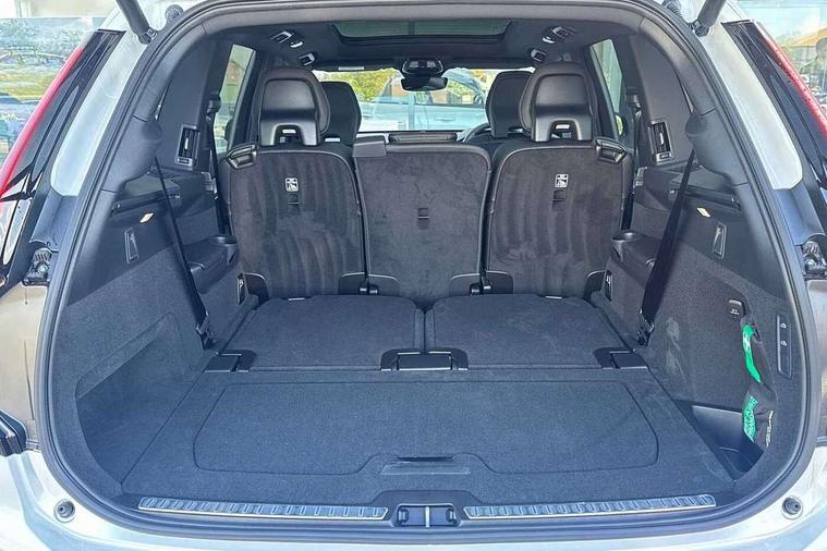 11.2" centre console touch screen, 12.3" Progressive Driver Display, 360 degree surround view parking camera with side proximity sensors, Adjustable steering wheel force, Apple carplay (wired), Bluetooth handsfree system, Driver alert control with lane keeping aid, Driver assistance (pilot assist and adaptive cruise control), Driver awareness - Blind spot information system with steer assist, cross traffic alert with autobrake and rear collision warning and mitigation, Driver Understanding System (Eye Tracking), Emergency call service, Front and rear park assist, Google Automotive Services - Navigation with Voice recoginition and google assistant, Handsfree power tailgate opening and closing, Intelligent speed assistance, Oncoming Lane Mitigation, PAS, Power operated tailgate, Service interval indicator, Speed sensitive steering, Trip computer, Volvo on call, Wireless/Inductive Mobile Phone Charging, 8 speed automatic transmission with start/stop + manual change functions, Active four C chassis - four corner adaptive dampers with electronic air suspension, DAB Radio (Digital Audio Broadcasting), Premium Sound by Harman Kardon, dirac unison, dolby pro logic II surround sound, 13 speakers/600W output and fresh air subwoofer, Steering wheel remote infotainment controls, Adaptive brake lights with high level LED brake lights, Auto dimming interior + exterior mirrors, Auto folding and heated power door mirrors, Automatic headlight levelling system, Automatic matrix LED headlights with Adaptive shadow technology and Active high beam, incorporating Day running lights, Body colour bumpers, Dark tinted windows - rear side windows and rear screen, Front and rear power windows, Headlight cleaning system, Heated front windscreen, High gloss black door mirrors and window surround, High gloss black front and rear bumper deco, High gloss black front grille ironmark, High gloss black rear model, engine and volvo logo badges, Home safe and approach lighting, Integrated roof rails in high gloss black, Power glass tilt and slide panoramic sunroof with sun curtain, Puddle lights, Rain sensor with automatic windscreen wiper activation, Rear side wing doors, Rear wash/wipe with intermittent wipe setting, Roof antenna, Roof spoiler, Visible VIN plate, 12V socket in luggage compartment, 2nd Row centre armrest with and cupholders, 3 Spoke tailored sport steering wheel with chrome trim, 4 zone electronic climate control with Clean zone air quality system + pollen filter, A-pillar parking ticket holder, Air conditioning for 3rd row of seats, Air purifier PM2.5, Ambient door and instrument panel lighting, B Pillar ventilation, Bright metal luggage scuff plate, Centre console cupholders and storage, Floor mats, Front and rear courtesy lights, Front and rear door pocket illumination, Front footwell and side step illumination, Front headrests, Front reading lights, Front seat cushion extensions, Front seat power side support, Front tunnel storage illumination, Glovebox compartment light, Heated front seats, Heated rear seats, Heated steering wheel, Height/reach adjustable steering column, Illuminated front and rear aluminium tread plates, Illuminated luggage compartment, Illuminated tailgate, Illuminated vanity mirrors + ticket holder, Inner door release handle illumination, Isofix outer rear child seat preparation in 2nd row, Load cover, Load protection net, Lockable glovebox compartment, Luggage compartment divider with grocery bag holder, Nappa soft leather perforated /ventilated upholstery, Outboard armrest with cupholder and storage for third row passengers, Power driver seat with multi directional lumbar support and memory for seat and exterior mirrors, Power folding 2nd row headrests, Power passenger seat with multi directional lumbar support and memory, Rear footwell and side step illumination, Rear headrests, Rear reading lights, Second row integrated child seat for centre seat, Single front passenger seat, Textile headlining, Three 2nd row individual folding passenger seats with fore/aft adjustment, Two 3rd row individual folding passenger seats, Underfloor luggage compartment storage, 7 three point seatbelts, City safety with steering support includes pedestrian, cyclist detection, front collision warning with full auto brake and rear auto brake, Driver and passenger airbags, Drivers knee airbag, First aid kit, Front seats SIPS airbags, Hill descent control - off drive mode, Hill start assist, IC (Inflatable Curtains) - Full Length, Passenger airbag cut-off switch, Power child locks on rear doors, Power parking brake with auto hold function, Road sign information display, Run off Road Protection, Seatbelt reminder and pretensioners for all seats, SIPS (Side Impact Protection System), Slippery road and hazard light alert, Stability and Traction Control with Spin control, Engine Drag Control and Corner Traction Control, Tyre pressure monitoring system, Vehicle deceleration control with Anti-lock Brake System, Electronic Brake Distribution and Emergency Brake Assist, Warning triangle, WHIPS whiplash protection system - front, 2x Key integrated remote control central locking + deadlocking system and auto open/close windows, Anti-theft alarm including immobiliser/volume sensor + level sensor, Keyless drive includes keyless entry and keyless start, Locking wheel nuts, Tailored instrument panel and door tops, 21" 5 Multispoke high gloss black alloy wheels with summer tyres, Tempa spare wheel and jack,