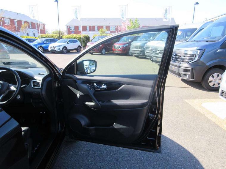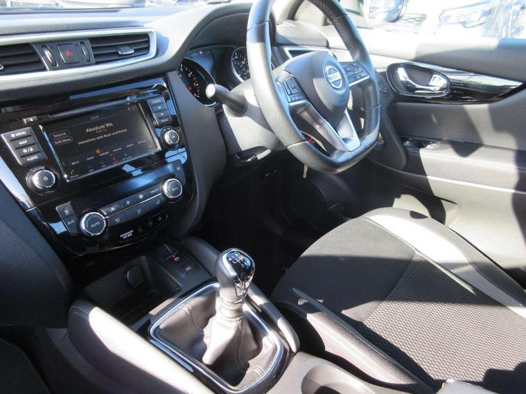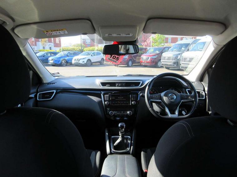 Advanced drive assist display 5'' TFT coloured screen, Android Auto, Apple CarPlay preparation, Bluetooth connectivity, Cruise control + speed limiter, Electric speed sensitive power steering, Front parking sensors, Lane departure warning system, Nissan connect evo 7" touchscreen navigation and entertainment system, Normal or sport selectable steering, Outside temperature sensor, Rear parking sensors, Rear view camera, Service interval indicator, Smartphone integration, Stop/start system, Tomtom connected services, Traffic sign recognition, Trip computer, Voice control system, Nissan chassis control (intelligent ride control, intelligent trace control, intelligent engine brake), 6 speakers, AM/FM radio, CD audio system, Aux-in socket, DAB Digital radio, Steering wheel mounted audio controls, USB port, Anti dazzle rear view mirror, Auto wipers, Body colour bumpers, Body coloured door handles, Body coloured door mirrors, Chrome window surround, Daytime running lights dip function when turn signal applied, Electric folding door mirrors, Electric front and rear windows with one touch illuminated window controls, Electric front/rear windows, Electrically adjustable door mirrors, Front fog lights, Halogen headlights, Heated door mirrors, High beam assist, Intelligent auto headlights, LED indicators in door mirrors, Rear roof spoiler, Rear wiper with reverse link, Shark fin antenna, Signature LED daytime running lights, Underbody vortex generators, 2 X front 12v power sockets, 3 height adjustable rear headrests, 60/40 split folding rear seat, Ambient lighting in centre console, Boot lighting, Centre console storage box/armrest, Chrome interior door handles, Cloth upholstery, Driver's seat manual height adjust, Dual zone climate control, Front and rear door pockets with bottle holders, Front and rear seat belt pre-tensioners with load limiters, Height adjustable front headrests, ISOFIX on outer rear seats, Leather D shaped steering wheel, Leather gear lever, Leather knee pad, Manual height adjustable front passenger seat, Manual lumbar support on driver seat, Parcel shelf stow function under luggage board, Pollen filter, Rear armrest with 2 cupholders, Tilt/telescopic adjustable steering wheel, 6 airbags - Driver, front passenger, curtain and side airbags, ABS, ESP, EBD and brake assist, Auto hold function, Child locks on rear doors, Electronic parking brake, Front and rear seat belt warning, Front passenger airbag deactivation, Height adjustable front seatbelts, Hill start assist, Intelligent emergency braking with pedestrian recognition, Three 3 point rear seatbelts, Tyre pressure monitoring system, Anti-theft immobiliser, Remote central locking, Thatcham Cat.1 alarm, Piano black dash trim, 17" Alloy wheels, Tyre puncture repair kit,