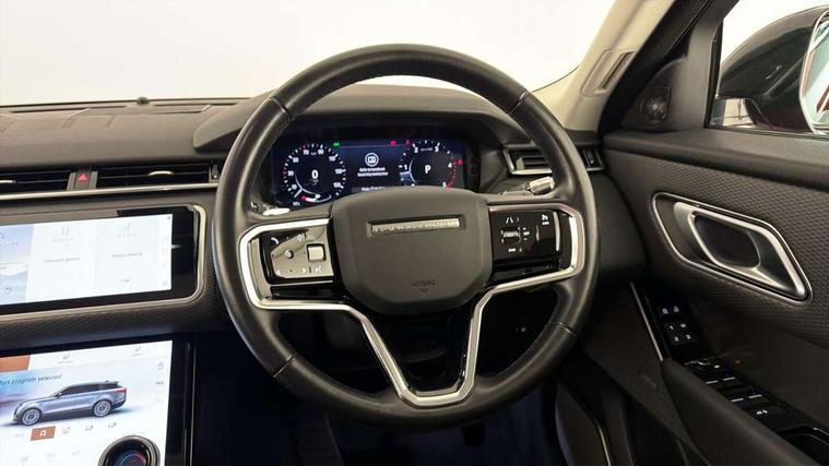 10" touch screen, 3D Surround camera includes, clear sight ground view, 360 parking aid and wade sensing, Android Auto, Apple car play, Blind spot assist, Bluetooth connectivity, Brake pad wear indicator warning light, Driver condition monitor, InControl remote, Interactive Driver display instrument cluster, Land Rover InControl apps, Lane keep assist, Pivi pro connected includes upgraded infotainment, smart settings, connected navigation pro, Nuance speech licence, Powered gesture tailgate/boot lid, Push button start, Rear traffic monitor, Service indicator, Speed proportional electronic power assisted steering (EPAS), Traffic sign recognition with adaptive speed limiter, Trip computer, Voice control system, Wade Sensing, 8 speed automatic transmission, Open differential with torque vectoring by braking, Single speed transfer box, Digital Audio Broadcast radio-DAB, Steering wheel mounted controls, Acoustic laminated windscreen, Adaptive front lighting system, Auto dimming interior rear view mirror, Automatic headlamp levelling, Automatic headlights, Body coloured bumpers, Boot protection plate, Electric heated/power fold door mirrors with approach lights and auto dimming driver side, Electric windows with one touch open/close and anti trap, Flush deployable exterior door handles, Follow me home headlights, Heated rear window with timer, Heated windscreen + heated windscreen washer jets, Metal load space scuff plates, Rain sensor windscreen wipers, Rear fog lights, Rear wash/wipe, SE badge, Tailgate/boot lid spoiler, Trailer stability assist, 40:20:40 split folding rear seats, Ambient lighting, Driver/passenger sunvisors with illuminated vanity mirrors, Isofix system on outer rear seats, Loadspace cover, Overhead lighting console, Overhead stowage for sunglasses, Passive front headrests, Rear air vents, Rear centre headrest, Satin chrome gearshift paddles, Standard interior, Twin front cupholders, Twin sliding front centre armrest, Online pack with data plan - Velar, 355mm front brakes and 325mm rear brakes, 3x3 point rear seatbelts, Anti-lock braking system (ABS), Cornering brake control, Curtain airbags, Customer configurable autolock, Door side intrusion beams, Driver airbag, DSC - Dynamic Stability Control, Electronic brake force distribution, Electronic parking brake, Electronic traction control, Emergency brake assist, Emergency braking, Front and rear seatbelt reminder, Hill descent control, Hill launch assist, Low traction launch, Passenger airbag, Power operated child locks, Rear airbags, Roll stability control, Side airbags, Tyre pressure monitoring system, Unpainted brake calipers, Global lock and unlock switch on driver door, Immobiliser, Intrusion sensor, Keyless entry, Lock only switch on front passenger door, Locking wheel nuts, Perimetric alarm, Remote central locking,