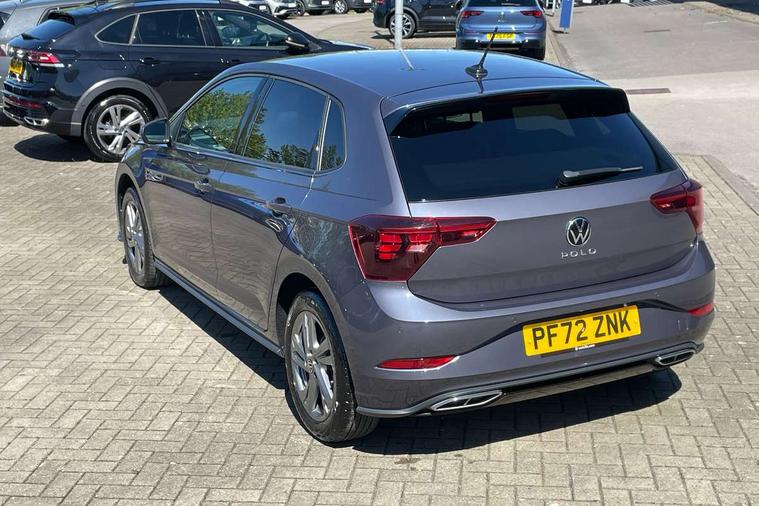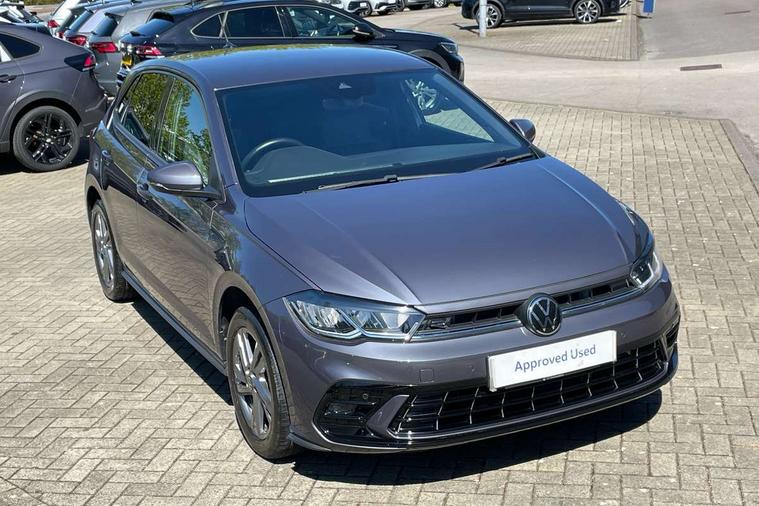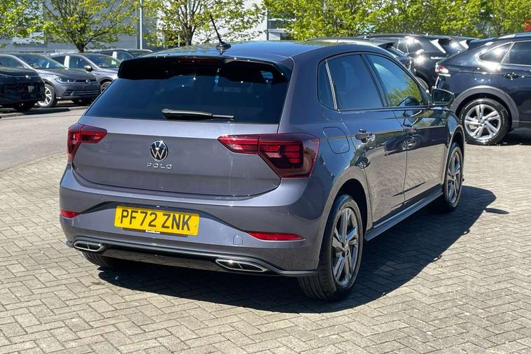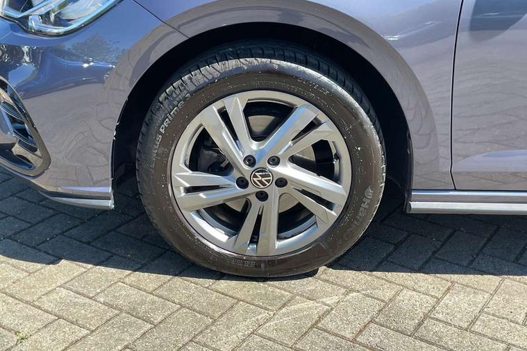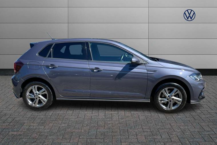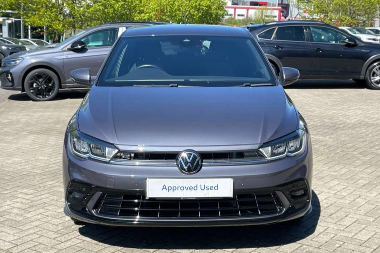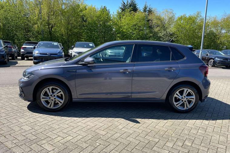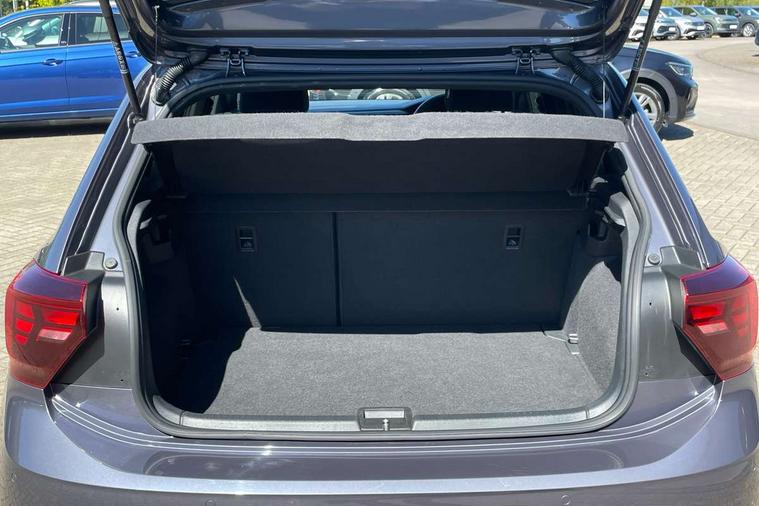 Adaptive cruise control with follow-to-stop and speed limiter, Bluetooth mobile phone interface, Digital Cockpit Pro with 10.25" Display, Driver alert system, Dynamic road sign display, Emergency call service, Power assisted speed sensitive steering, Preparation for We connect and We connect plus, Speedo and rev counter, electronic odometer, trip, service interval display and fuel gauge, Standard rear axle, Travel Assist - Lane keeping system and traffic jam assist, Travel assist including emergency assist, Trip computer, Warning signal and warning light for front and rear seatbelts not fastened, Washer fluid level indicator, Wireless app connect, Front wheel drive, Rear shock absorpion, Start-stop system with battery regeneration (recuperation - energy recovery during braking), DAB Digital radio, Diversity antenna for FM reception, Front and rear 6 speakers, Body colour bumpers, Body colour door handles, Electric front windows, Front scuff plates with R-Line logo, Heat insulating darkened glass in side and rear windows, Heat insulating glass windscreen, Power folding adjustable/heated exterior mirrors and front passenger exterior mirror lowering function, Rear electric windows, Rear fog light, Rear side wing doors, Rear windscreen washer and wiper with interval delay, Third brake light, 12V power socket in centre console, 2 USB-C ports in the front, 2 USB-C charging sockets on the center console in the rear, 3 rear head restraints, 60/40 split folding rear seat and rear seat bench not split, Air care climatronic air conditoning system with active combination filter and 2-zone temperature control, Black roof lining, Chrome plated radiator grille inserts, air vent surrounds and light switch surrounds, Door and side trim panel, Driver and front passenger seat height adjustment, Driver/passenger sunvisors with illuminated vanity mirrors, Front + rear carpet mats in recycled material, Front centre armrest, Front footwell illumination, Front seat backrest storage pockets, Front sports comfort seats, Handbrake lever handle in leather, Headliner in recycled material, Isofix child seat preparation easy-fit (for two outer rear seats, and front passenger seat) compatible with I-size, Karoso artvelours cloth upholstery, Leather trimmed gear knob, LED interior light with switch off delay and dimmer, 2 reading lights front and rear, Luggage compartment cover, Luggage compartment floor, Luggage compartment lighting, Lumbar adjustment for front seats, Single front passenger seat, Stainless steel pedals, Standard pedal cluster, Three spoke leather wrapped multifunction steering wheel with shifting paddles, Light and sight pack - Polo R-Line/Black Edition, 3 point height adj front seatbelts + pretensioners, 3x3 point rear seatbelts, ABS, Driver and front passenger airbag with front passenger airbag deactivation, Drivers and front passengers safety optimised head restraints, ESC (Electronic stability control) + EDL (Electronic Differntial lock) and ASR (Traction control), Extended and predictive pedestrian/ cyclist protection, Front curtain and side airbags with center airbag, Front/rear disc brakes, Hill hold control, Manual child lock in rear doors, Single tone horn, Tyre pressure loss indicator, Alarm with interior protection, Anti-theft alarm system with interior monitoring, backup horn, and towing protection, Anti-theft wheel bolts, Electronic engine immobiliser, Chrome applications on rotary light, mirror adjustment, window regulator switches, outlet with frame in black, Dark grey anodised matt decorative inserts in dash and front door panels, Low rolling resistance tyres,