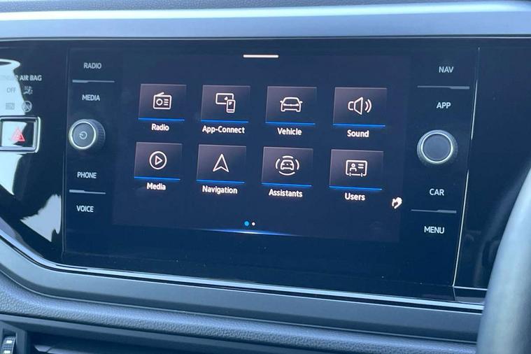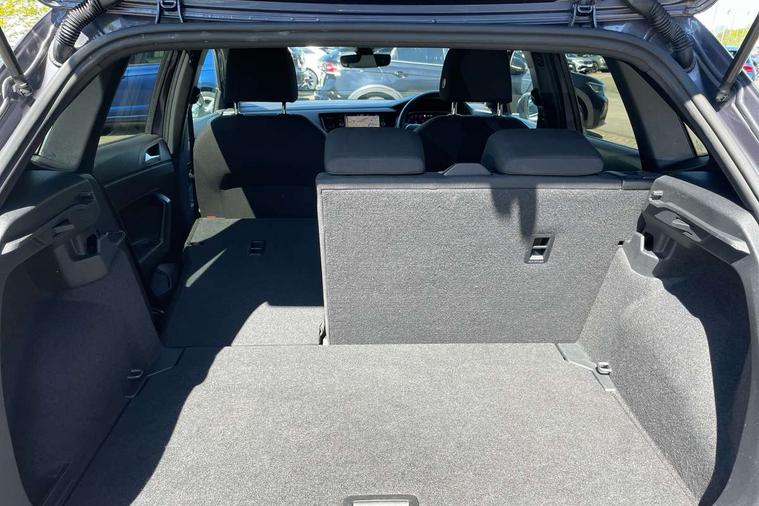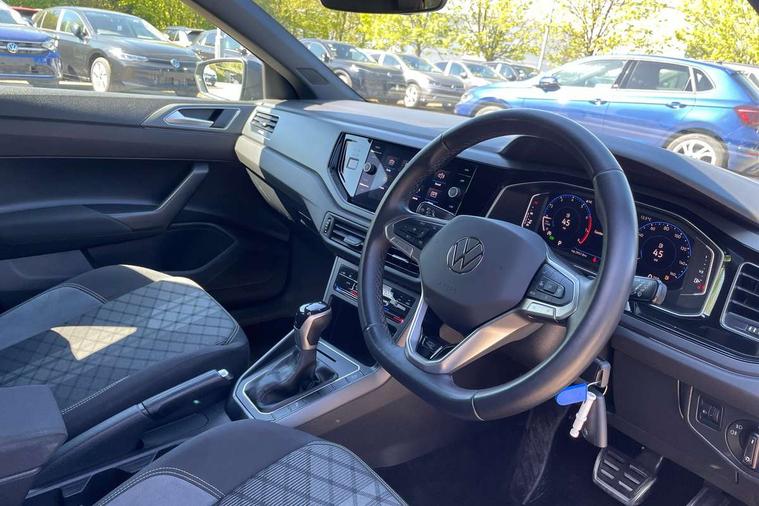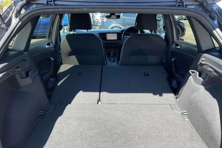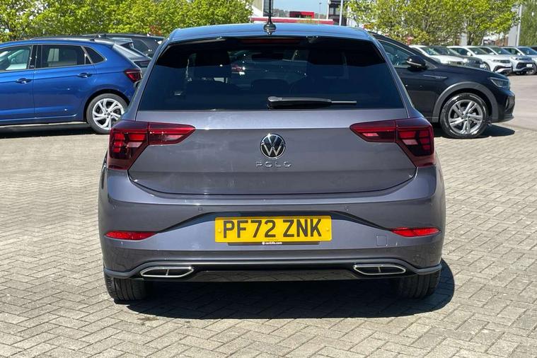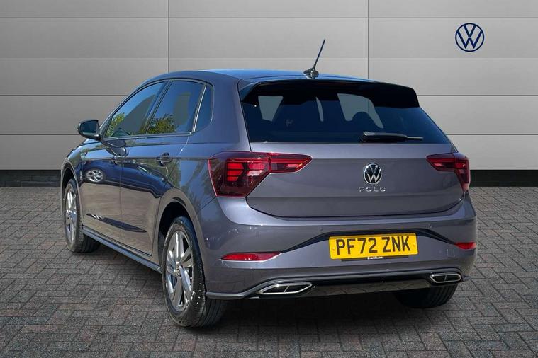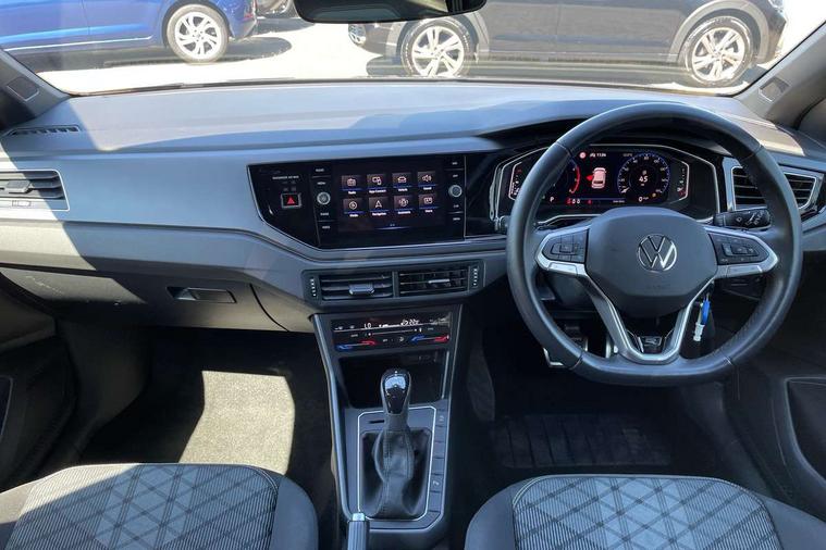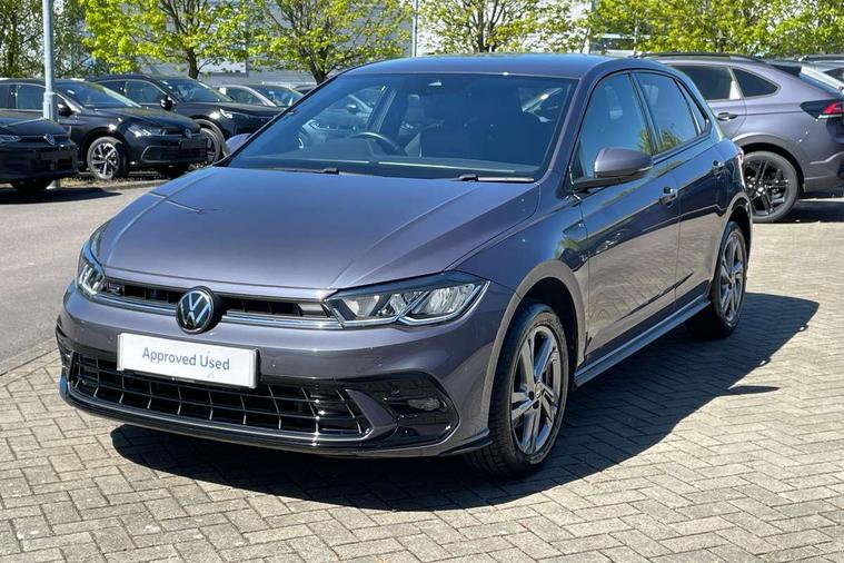 Adaptive cruise control with follow-to-stop and speed limiter, Bluetooth mobile phone interface, Digital Cockpit Pro with 10.25" Display, Driver alert system, Dynamic road sign display, Emergency call service, Power assisted speed sensitive steering, Preparation for We connect and We connect plus, Speedo and rev counter, electronic odometer, trip, service interval display and fuel gauge, Standard rear axle, Travel Assist - Lane keeping system and traffic jam assist, Travel assist including emergency assist, Trip computer, Warning signal and warning light for front and rear seatbelts not fastened, Washer fluid level indicator, Wireless app connect, Front wheel drive, Rear shock absorpion, Start-stop system with battery regeneration (recuperation - energy recovery during braking), DAB Digital radio, Diversity antenna for FM reception, Front and rear 6 speakers, Body colour bumpers, Body colour door handles, Electric front windows, Front scuff plates with R-Line logo, Heat insulating darkened glass in side and rear windows, Heat insulating glass windscreen, Power folding adjustable/heated exterior mirrors and front passenger exterior mirror lowering function, Rear electric windows, Rear fog light, Rear side wing doors, Rear windscreen washer and wiper with interval delay, Third brake light, 12V power socket in centre console, 2 USB-C ports in the front, 2 USB-C charging sockets on the center console in the rear, 3 rear head restraints, 60/40 split folding rear seat and rear seat bench not split, Air care climatronic air conditoning system with active combination filter and 2-zone temperature control, Black roof lining, Chrome plated radiator grille inserts, air vent surrounds and light switch surrounds, Door and side trim panel, Driver and front passenger seat height adjustment, Driver/passenger sunvisors with illuminated vanity mirrors, Front + rear carpet mats in recycled material, Front centre armrest, Front footwell illumination, Front seat backrest storage pockets, Front sports comfort seats, Handbrake lever handle in leather, Headliner in recycled material, Isofix child seat preparation easy-fit (for two outer rear seats, and front passenger seat) compatible with I-size, Karoso artvelours cloth upholstery, Leather trimmed gear knob, LED interior light with switch off delay and dimmer, 2 reading lights front and rear, Luggage compartment cover, Luggage compartment floor, Luggage compartment lighting, Lumbar adjustment for front seats, Single front passenger seat, Stainless steel pedals, Standard pedal cluster, Three spoke leather wrapped multifunction steering wheel with shifting paddles, Light and sight pack - Polo R-Line/Black Edition, 3 point height adj front seatbelts + pretensioners, 3x3 point rear seatbelts, ABS, Driver and front passenger airbag with front passenger airbag deactivation, Drivers and front passengers safety optimised head restraints, ESC (Electronic stability control) + EDL (Electronic Differntial lock) and ASR (Traction control), Extended and predictive pedestrian/ cyclist protection, Front curtain and side airbags with center airbag, Front/rear disc brakes, Hill hold control, Manual child lock in rear doors, Single tone horn, Tyre pressure loss indicator, Alarm with interior protection, Anti-theft alarm system with interior monitoring, backup horn, and towing protection, Anti-theft wheel bolts, Electronic engine immobiliser, Chrome applications on rotary light, mirror adjustment, window regulator switches, outlet with frame in black, Dark grey anodised matt decorative inserts in dash and front door panels, Low rolling resistance tyres,