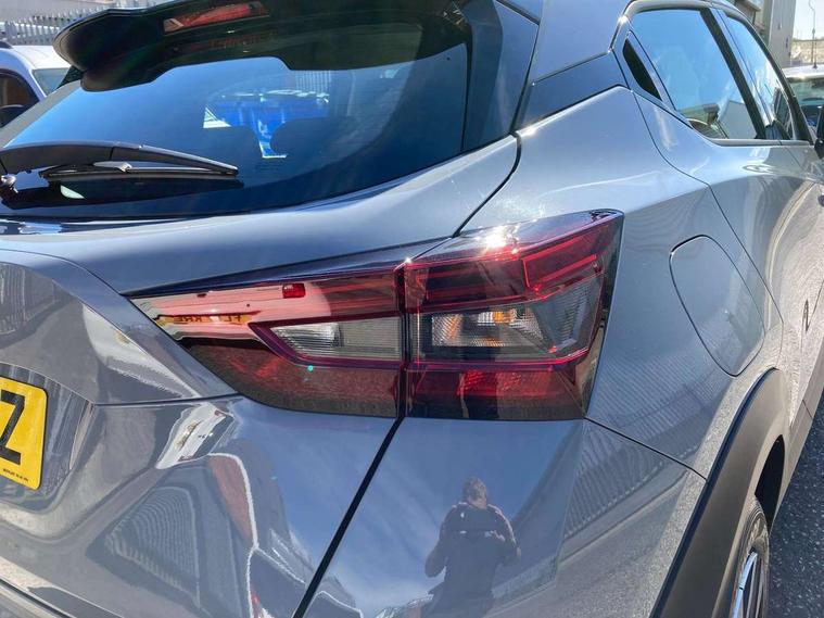 7" full colour TFT screen combimeter, Cruise control + speed limiter, Emergency and breakdown call, Idle start/stop system, Intelligent driver alert system, Intelligent lane intervention, Lane departure warning system, Nissan connect 12.3" touch screen entertainment system, Outside temperature sensor, Power Steering, Rear view camera, Traffic sign recognition, Trip computer, Voice recognition, WiFi connectivity, Wireless Apple CarPlay and Google Android auto, 2 X Rear console USB port, 4 speakers, Bluetooth system, USB, Aux-in and 12V socket, DAB Digital radio, Automatic hazard signal with emergency stop signal, Body colour door handles, Electrically adjustable door mirrors with integrated indicators, Follow me home headlights, Front and rear electric window with one touch driver window, High beam assist, LED 3rd brake light, LED daytime running lights, LED headlamps, LED rear fog lamp, LED rear lamps, Manual dimming framed interior rear view mirror, Pearl black door mirrors, Rear side wing doors, Rear wiper, Roof spoiler, Shark fin roof antenna in solid Black, Three blink turn signal, 3 height adjustable rear headrests, 3 seat bench in 2nd row, 60/40 split folding rear seat, Cloth upholstery, Driver/passenger sunvisors and vanity mirrors, Front and rear cabin lights, Front armrest, Front door pockets with bottle holders, Front head restraints, Height adjustable driver's seat, Luggage space lighting, Monoform sporty seats, Multifunction steering wheel, Rear door bottle holders, Single front passenger seat, Smooth synthetic leather steering wheel, Telescopic steering wheel adjustment, Two cupholders in front centre console, Two rear isofix child seat anchorage points with top tether, Welcome light and console tray ambient lighting, ABS with EBD and brake assist, Active ride control, Active Trace Control, Driver and passenger airbags, Driver and passenger side airbags, Electric handbrake with auto hold function, Electronic Stability Programme (ESP), Front and rear curtain airbags, Height adjustable seatbelts, Hill start assist, Intelligent emergency braking with pedestrian and cyclist recognition, Rear door child safety locks, Seatbelt reminder for driver/front passenger and rear seats, Three 3 point rear seatbelts, Traction control, Tyre pressure monitoring system, VDC Dynamic Vehicle Control, Alarm, Immobiliser, Remote central locking, 17" Sakura Flex wheels, Tyre puncture repair kit,