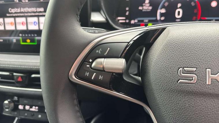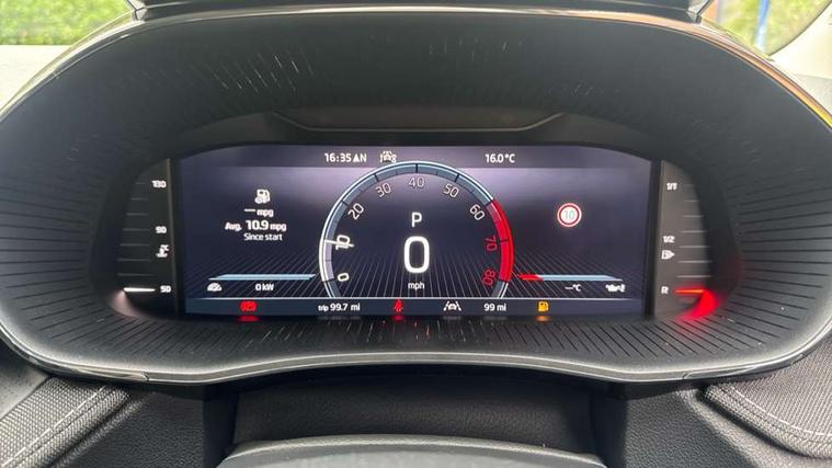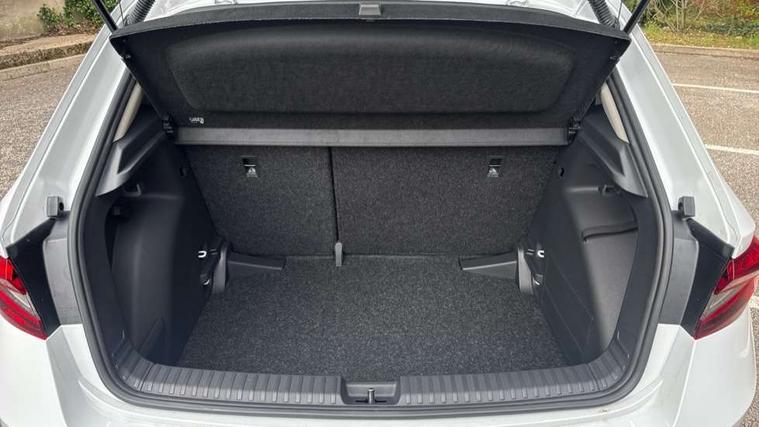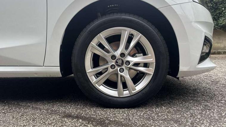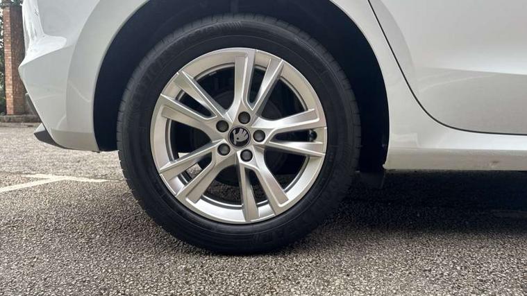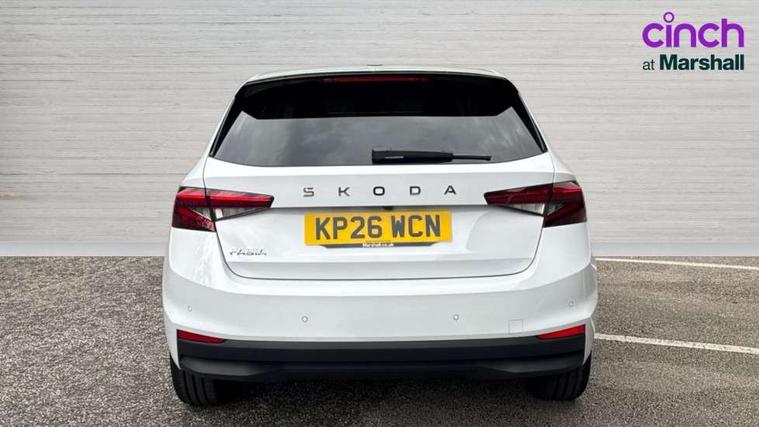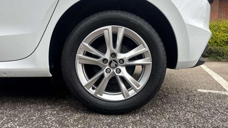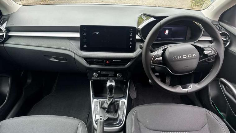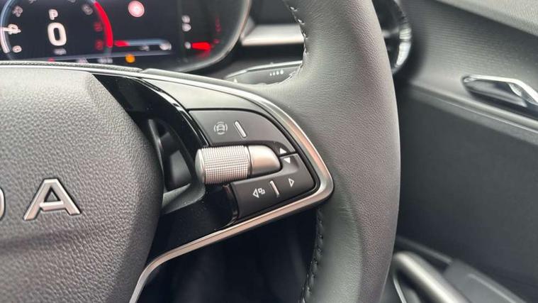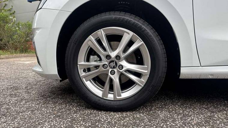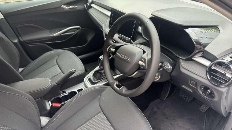 Advanced driver attention and drowsiness monitor, Bluetooth connection, Driver alert system, Electromechanical power steering, Exterior temperature gauge, Service interval indicator, Traffic sign recognition, Virtual cockpit with 10.25" colour display, Wireless SmartLink for Apple CarPlay and Android Auto, 9.2" colour display skoda navigation system with voice control and web radio, Auxiliary socket for external MP3 player, DAB digital radio reception, Auto dimming rear view mirror, Body colour door mirrors, Body coloured bumpers, Chrome window surround, Door mirror integrated indicators, Front and rear electric windows, Front window wiper intermittent control, Headlight range control - Automatic, Ice scraper in fuel cap, LED 3rd brake light, LED daytime running lights with coming and leaving home feature, LED rear lights, Privacy glass, Rear LED fog light, Rear side wing doors, Rear window wiper with washing nozzles, Roof mounted spoiler, SKODA tailgate lettering in chrome, Unique dark chrome design logo on alloy wheels, 2 LED reading lights in front and rear, 3 rear headrests, Backrest split and folding, Central console with fixed cup holder and storage box, Chrome handbrake release button, Comfort seats, Door sills with fabia badging, Dual zone air conditioning with climatronic electronic control, Fabric upholstery, Front centre armrest, Gearshift knob/handle in leather, Grain satin black interior door handles, Hand brake lever handle in leather, Height adjustable front headrests, Height adjustable front seats, Height adjustable steering wheel, ISOFIX and TopTether anchorage points to the outer rear seats, ISOFIX and TopTether on the front passenger seat, Luggage compartment lighting, Manually adjustable lumbar support in front seats, Pollen filter, Rear seat bench unsplit, Single front passenger seat, Skoda lettering on steering wheel, Storm grey headlining, Sun visors with mirror and airbag label on passenger side, Textile floor mats, Ticket holder, Ambient lighting pack - Fabia Hatchback, 3-point height adjustable front seats belts with pretensioner and force limiter, Automatic warning lights in case of crash, Driver and passengers airbag with switch off function, e-Call+, ESC including ABS, MSR, ASR, EDS, HBA and XDS, Front and rear seat belt warning, FRONT ASSIST (AEB City and AEB Inter Urban), Front side airbags, Head airbags, Hill hold control, One tone horn, Pedestrian protection, Three rear 3-points safety seat belts with pretensioner and force limiter including stop function for outer rear seat belts, Tyre pressure monitoring system, Anti-theft alarm system including immobiliser, interior monitoring, backup horn, and towing protection, Central locking with radio remote control, interior controls, SAFE function and 2 foldable keys, Chrome edged air vents, Grain satin black central console cover, Metallic grey upper decorative trim, Satin black door and side trim panel in front, Textile microsuede grey lower decorative trim with art grey stitching, Anti-theft wheel bolts protection, Super-low rolling resistance tyres,