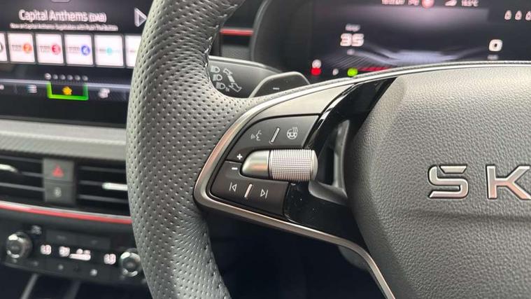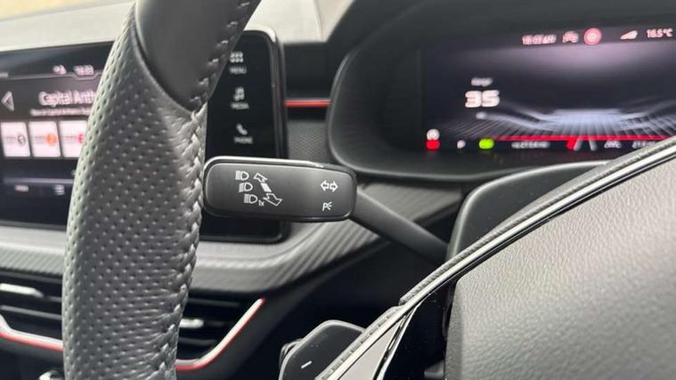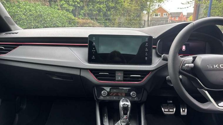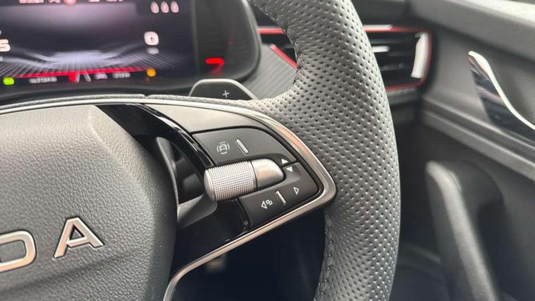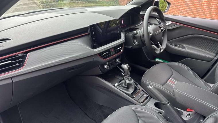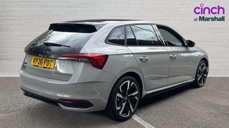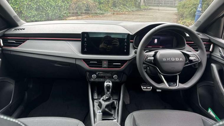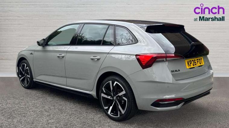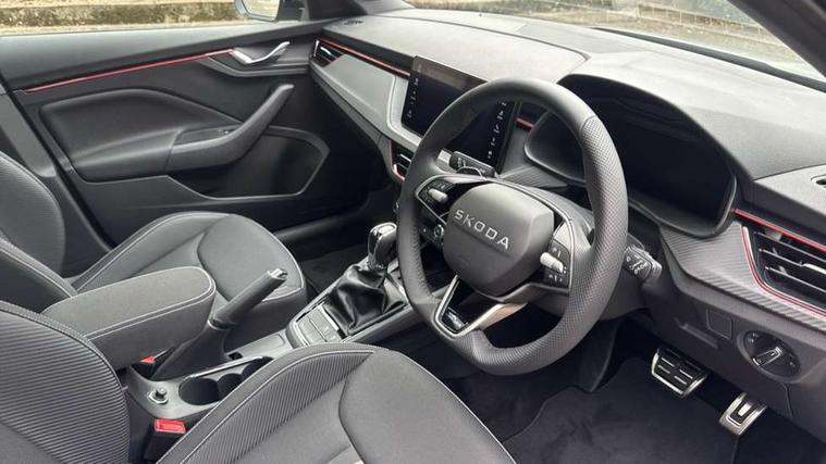 Advanced driver attention and drowsiness monitor, Bluetooth, e-Call (emergency call), Front assist system, PAS, Rear parking sensors, Rear view camera, Speed limiter, Tailgate, Traffic sign recognition, Virtual Cockpit - 10.25" digital display, Voice control system, Wireless smartlink, Drive mode select with Sport Chassis Control and ECO mode, 4 USB C ports, 9.2" Skoda navigation display, DAB radio, Auto dimming rear view mirror, Automatic headlight control with manual coming and leaving home feature, Automatic intermittent wipers, Black door mirrors, Black lettering on boot lid, Black radiator grille, Black rear diffuser, Black roof spoiler, Black window frames, Body colour bumpers, Body colour door handles, Extended tailgate glass, Front and rear electric windows, Heated rear window, LED 3rd brake light, LED daytime running lights, LED high beam, LED low beam, Light sensors, Monte carlo plaque, Panoramic glass roof, Privacy glass, Rear LED fog light, Rear side wing doors, Rear wiper, Tinted windows, Unique dark chrome design logo on alloy wheels, 12V socket in luggage compartment, 3 seat bench in 2nd row, Aluminium pedals, Ambient lighting in white/red, Black / White armrest stitching, Black roof headlining, Cargo elements, Chrome inner door handles, Door inserts in art.leather carbon, Driver and passenger sun visors with vanity mirror, Dual zone climate control, Front and rear roof lights, Front centre armrest, Front head restraints, Height adjustable driver seat, Height adjustable passenger seat, Ice scraper, Illuminated glove compartment, Inner circulation control with pollen filter, ISOFIX for front passenger seat, Isofix preparation for back seats, Leather gearknob and handbrake lever, Luggage net under rear parcel shelf, Manual lumbar support for front seats, Monte Carlo cloth upholstery, Net package and top tether hooks in boot space, Pocket on the back of both front seats, incl. mobile phone pockets, Rear centre armrest, Red hotstamping, Single front passenger seat, Skoda lettering on steering wheel, Sport seats, Textile floor mats, Third rear headrest, Ticket holder, Top tether for front passenger seat, Umbrella in driver's door, Light and view plus pack - Scala, 3x3 point rear seatbelts, ABS, Child locks, Curtain airbags and front side airbags, Disc brakes, Driver and front passenger airbags, ESP, Hill hold control, Manual leather parking brake, One tone horn, Passenger airbag switch off function, Seatbelt reminder for driver and front passenger, Tyre pressure monitoring system, Anti theft alarm system with interior monitoring, backup horn and towing protection, Anti-theft wheel bolts, Remote central locking with 2 remote folding keys, SAFE function for remote central locking, Carbon effect decorative inserts, 18" Ursa black diamond cut alloy wheels,