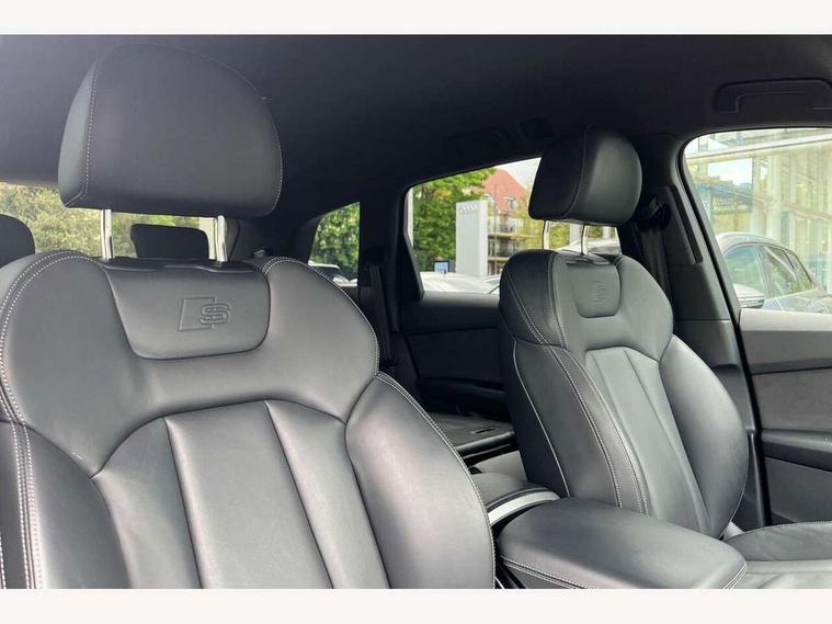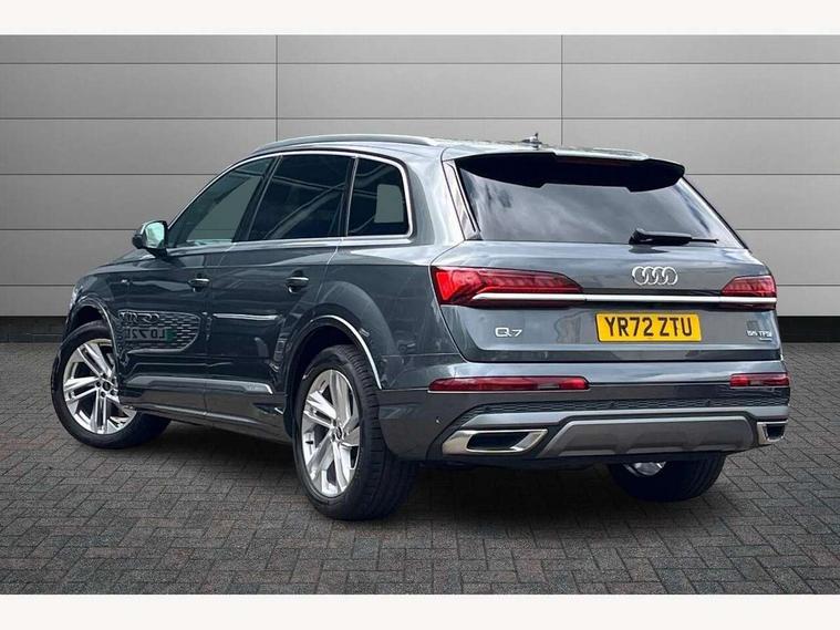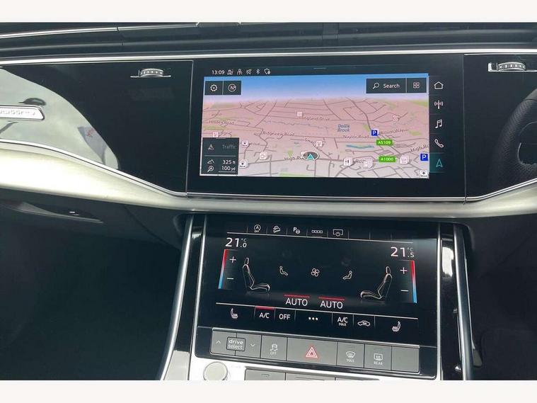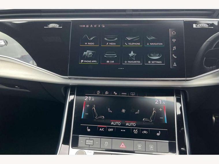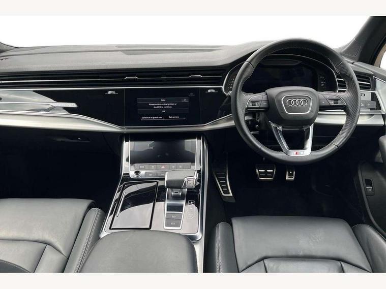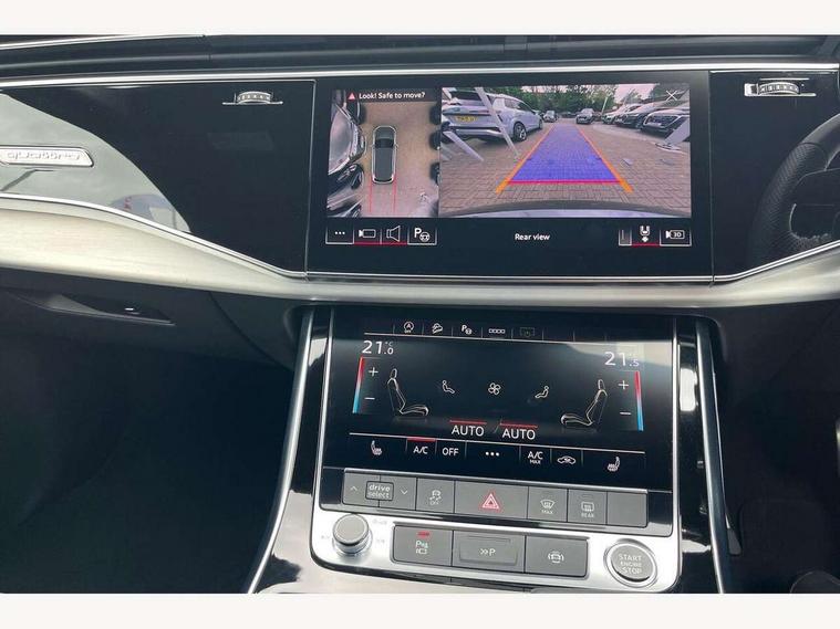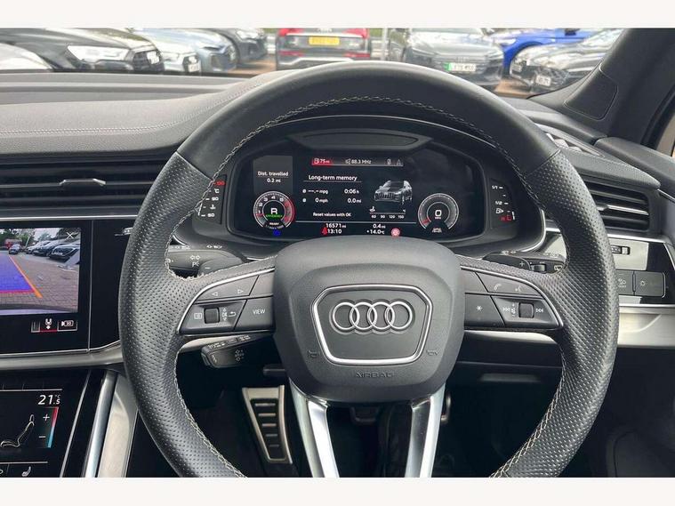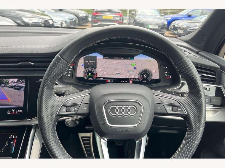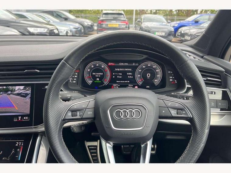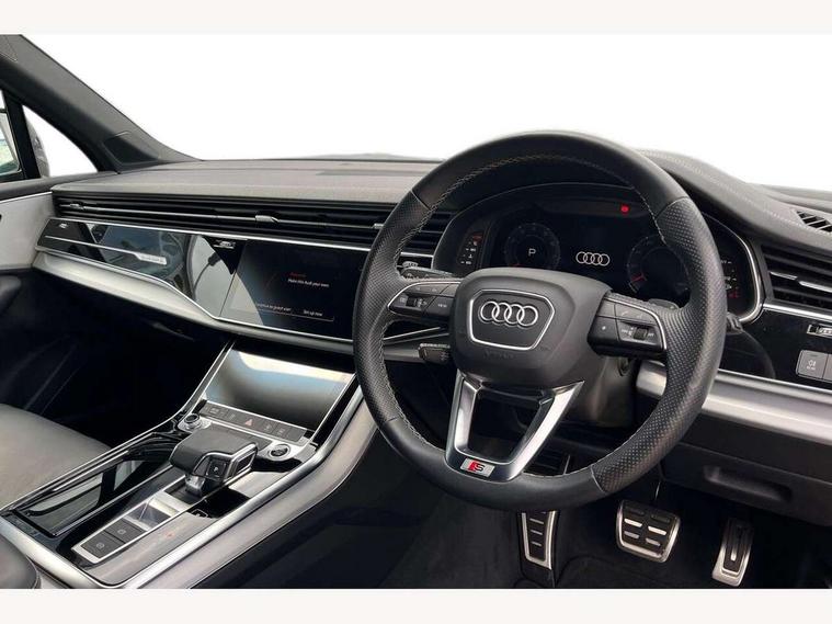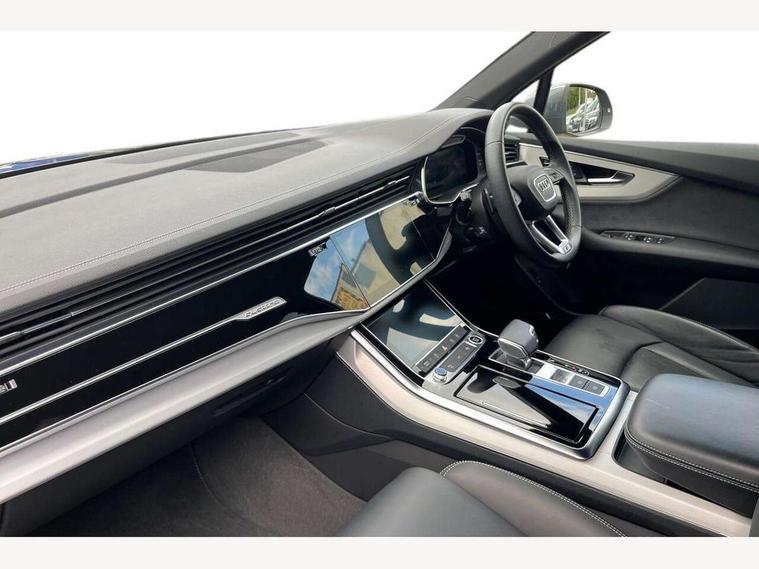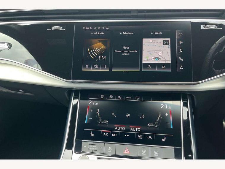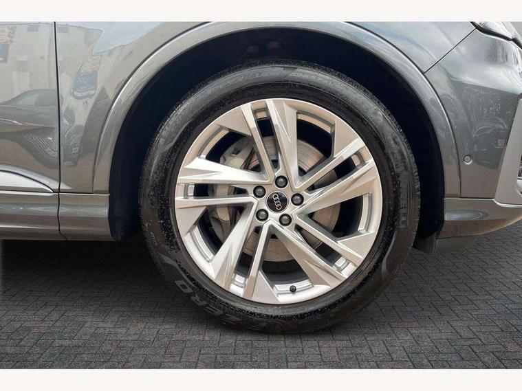 Audi connect safety and service (e-call), Audi connect with Amazon Alexa Integration, Audi drive select (Auto, Comfort, Dynamic, Efficiency, Individual, Off-road and All road), Bluetooth interface, Camera based traffic sign recognition, Electromechanical steering, MMI navigation plus with MMI touch screens includes 10.1" and 8.6" screens with haptic feedback, Natural voice recognition, Parking system plus with 360 degree display (front, rear and side sensors) - acoustic and visual park assist system, Power operated tailgate, Rear view camera, Smartphone interface includes wireless Apple carplay/Android Auto, Start/stop system, 48V Mild hybrid technology, 85 litre fuel tank, Adaptive air suspension, Quattro all wheel drive with self locking centre differential, Audi music interface - front 2 USB-C ports with charger and data functions, Audi sound system with 6 channel amplifier, 180 watt amplifying capacity and 10 loudspeakers including subwoofer, DAB digital radio module, 3rd brake light, Aluminium roof rails, Aluminium window trim, Audi matrix LED headlights with dynamic front and rear indicators, Auto dimming frameless rear view mirror, Body coloured door mirrors, Electrically adj heated/folding + automatically dimming exterior mirrors with memory + automatic kerb side function for passenger side exterior mirror, Heat insulating glass in windshield, Integrated LED indications in door mirrors, LED daytime running lights, LED rear tail lights, Privacy glass - dark tinted rear and rear side windows from B-pillar backwards, Rear side wing doors, Rear wiper, S Line badge on wings, S line bumpers in full body colour paint finish, S line roof spoiler, S line styling side ventilation grilles and side skirts, 2 seat bench in 3rd row, 2 zone automatic climate control, 3 seat bench in 2nd row, 7 seat layout with ISOFIX points for the front passenger seat and rear passenger seat, Black cloth headlining, Comfort front centre armrest, Electric adjustable front seat with 4 way lumbar support, driver memory functionality, Folding rear seats, Front head restraints, Front/rear floor mats, Heated front seats, Illuminated door sill trims with S logo, LED interior ambient lighting, Luggage compartment cover, Luggage compartment sill protection in stainless steel, Rear head restraints, Single front passenger seat, Stainless steel pedals, Sunvisors with illuminated vanity mirrors, 3 point seatbelts on all rear seats, Audi pre sense front, Child locks on rear doors, Driver and front passenger, front side and curtain airbags, Electromechanical parking brake, Electronic Stabilisation Control (ESC) including ABS, ASR and EDL, Extended pedestrian protection measures, Hill hold assist, Seatbelt monitoring, Tyre pressure loss indicator, Warning triangle and first aid kit, Anti theft alarm, Anti-theft wheel bolts and wheel loosening detection, Keyless Go, Remote central locking, Darkened matt brushed aluminium inlays, Tool kit, Tyre repair kit,