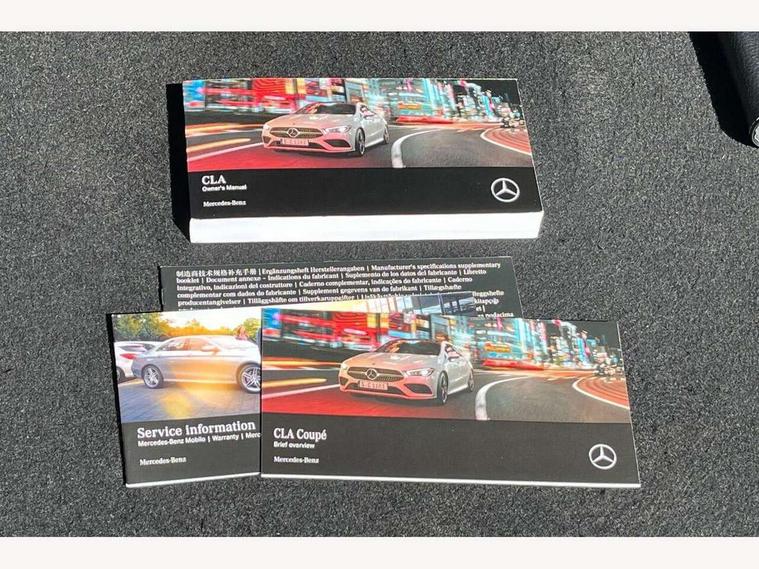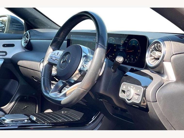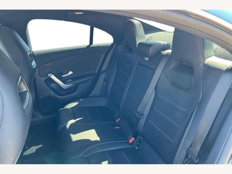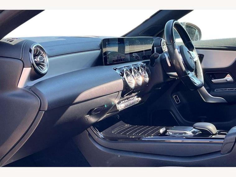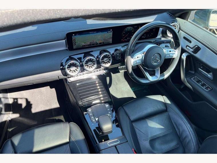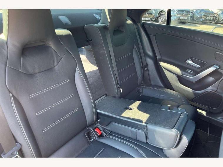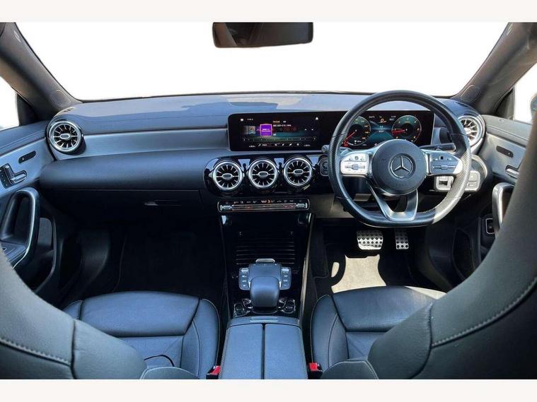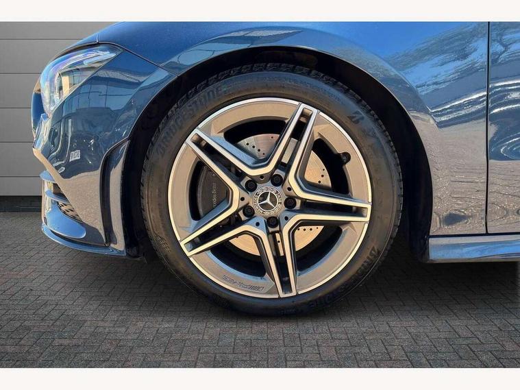 10.25 inch Instrument display with digital cockpit, 10.25 inch touchscreen central media display, Attention assist - Monitors steering behaviour and long journey fatigue, Dual bluetooth interfaces, DYNAMIC SELECT with a choice of driving modes (ECO, Comfort, Sport, Sport+ and Individual), ECO start/stop function, Fluid level warning indicator for fuel, oil, coolant and washer fluid, Hard-disk navigation, Hey Mercedes Voice activation, Lamp failure indicator, Mercedes me connect including emergency call system, accident recovery, breakdown management and maintenance, Outside temperature gauge, Owners manual and service booklet in English, Pre-installation for Vehicle Monitoring, Pre-installation for Vehicle Setup, Pre-installation of private car share, Preinstallation for Mercedes Benz link, Radio aerial integrated into front and rear windshields, Service indicator (ASSYST), Smartphone integration with Apple CarPlay and Android auto, Traffic sign assist, Trip computer in multifunction display with current consumption indicator, Wireless charging, Lowered comfort suspension, Rear axle multi-link, Sporty engine sound system, DAB digital radio tuner, MBUX multimedia system with DAB digital radio and touchpad including satellite navigation, Mercedes Benz advanced sound system (225 W) with 10 speakers, 1 central speaker, speakers on doors, a tweeter on door, one sub woofer + boost amplifier, USB (type C) ports (2) in stowage compartment and 1 in front of centre console, Adaptive brake lights, AMG body styling with AMG front apron and rear apron and visible exhaust tailpipe in chrome trim elements, AMG bodystyling side skirts, Body colour bumpers, Body colour door handles, Chrome beltline strips, Chrome weather strip, Diamond radiator grille pins in chrome with silver painted louvres and chrome insert, Electric panoramic sliding sunroof, Electric windows, Electrically adjustable and heated door mirrors with integrated LED indicators, Exhaust system with 2 Visible tailpipe trim elements and rear apron with trim in chrome, Headlamp assist automatic headlamp activation, Heated glass rear windscreen + timer control, High level LED third brake light, Integrated LED daytime running lights, LED tail lamp, Multibeam LED headlamps with adaptive highbeam assist plus, Privacy glass with dark tinting on rear side windows and rear window, Rain sensing windscreen wipers with two sensitivity settings, Rear fog lamp, Vehicle Monitoring, Vehicle Setup, Window line trim strip in chrome, 3 spoke flattened bottom nappa leather multifunction steering wheel with perforated leather in grip area, 40:20:40 split folding rear seats with backrest, Air conditioning - Two zone thermotronic luxury automatic climate control with display, Air vents with surround in silver chrome, Automatic child seat recognition sensor, Black roof lining, Brushed stainless steel sports pedals with rubber studs, Electrically adjustable front memory seats including lumbar support, Floor mats with stitched AMG lettering, Front centre armrest with stowage, Front seat cushion length adjustment, Galvanished gear shift paddles on steering wheel, Heated front seats, Illuminated glove compartment stowage, Illuminated Mercedes benz door sills with Mercedes Benz lettering, Interior lighting - 64 colour Ambient lighting, Luggage net on driver/front passenger seat backrest, Manually height and reach adjustable steering column, Rear armrest with two integral cup holders for drinks, Rear head restraints, Rear interior lamp, Spectacles compartment for driver, Sport seats with fixed head restraints, Stowage compartment in centre console with retractable cover, Sunvisors with illuminated vanity mirrors, Touchpad on center console, Twin front cupholders, Two outer rear seat isofix and top tether child seat fixing points, Keyless go pack - CLA, Light and sight pack - CLA, Mirror pack - CLA, Parking package - CLA, Seat comfort pack - CLA, Active bonnet pedestrain safety measure which detects an impact and raises bonnet by 65mm, Adaptive brake assist with hold function and hill start assist, Anti-lock braking system (ABS), Black seat belts, Bonnet with power domes, Brake pad wear warning indicator, Childproof locks manually operated for rear doors and electrically operated for rear power windows, Crash responsive emergency lighting, Driver and front passenger head and sidebags, Driver and front passenger windowbags, Drivers knee airbag, Dual stage driver and front passenger airbags, Electric parking brake, Electronic stability programme with acceleration skid control, ESP curve dynamic assist, Front and rear seatbelt reminder, Front brake callipers with Mercedes Benz lettering, Front passenger seat occupancy sensor, Perforated front brake discs, Three point rear seat belts, Tyre pressure monitoring system, Warning triangle and first aid kit, Alarm system with immobiliser and interior protection -Thatcham category 1, Remote central locking and crash sensor with emergency opening function, Light aluminium with longitudinal grain interior trim, 18" 5 twin spoke design alloy wheels painted in titanium grey with high sheen finish, Summer tyres, Tirefit tyre sealant kit,