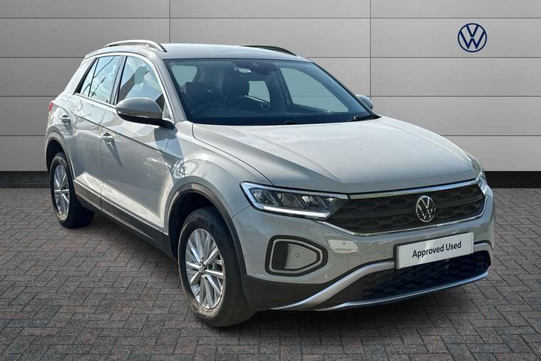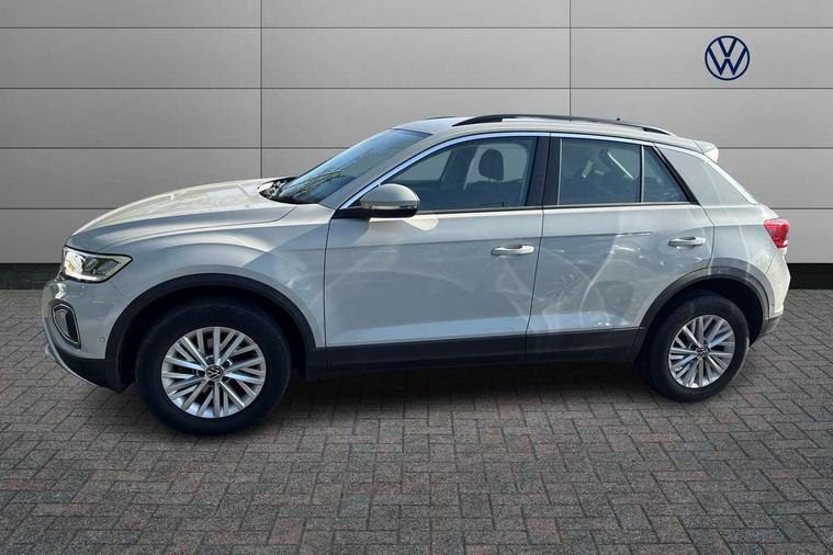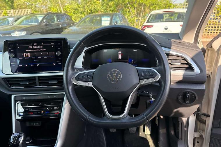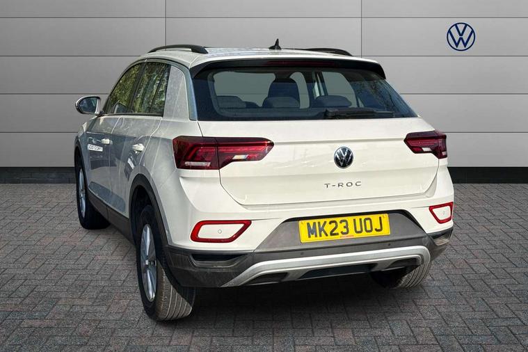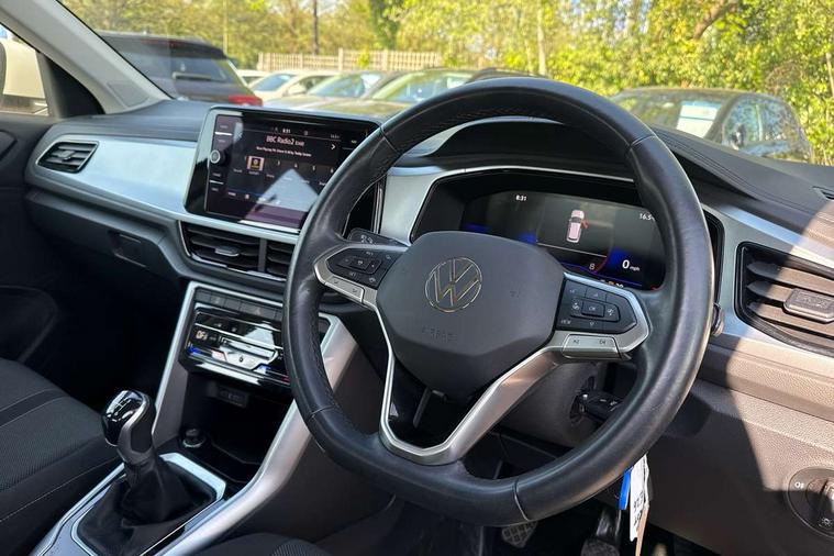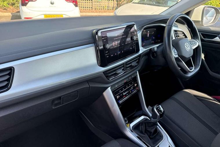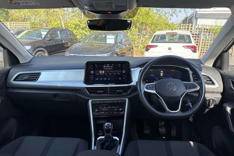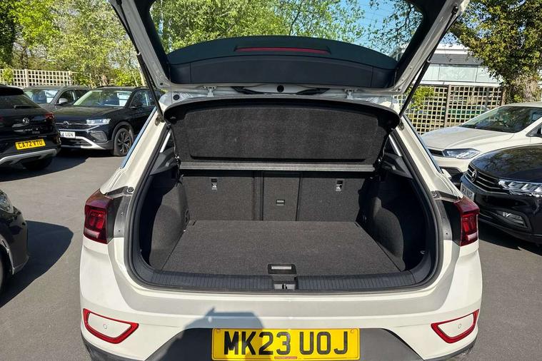 Bluetooth mobile phone interface, Driver alert system with fatigue detection, Driver tips and journey analysis, Emergency call service, Lane keeping system Lane Assist, Modified key software - reduce switch off time for key status change to Long no motion, Online services, Park assist including front and rear parking sensors, Power assisted speed sensitive steering, Service interval indicator, Tailgate/trunk lid release from outside, Think blue trainer driver tips and journey analysis, Warning sound and light for front seatbelts unfastened, Wireless app connect, Battery regeneration during braking, Front shock absorption, Rear shock absorption chassis with increased ride height, Start/stop function with battery regeneration, DAB Digital radio, Diversity antenna for FM reception, Front and rear 6 speakers, Music playback - MP3, WMA and AAC files, Premium USB cable in choice of either Apple or Android smartphone compatibility, SD card slot, Simultaneous pairing of 2 compatible mobile devices, Title and cover art display, We Connect and We Connect Plus functionality, 3rd brake light, Auto dimming interior rear view mirror, Automatic hazard lights activation under emergency braking, Automatic headlight control with LED separate daytime running lights with coming/leaving home function, Black roof rails, Body coloured bumpers and radiator grille with chrome trim and front fog lamps with chrome bezel, Body coloured exterior mirror housings and door handles, Extended roof spoiler, Exterior mirrors aspherical on driver side, convex on front passenger side, External USB type C socket and charging sockets, Front windscreen wiper with intermittent wipe and 4 position delay, Heated rear window, LED Headlights, LED rear combination lamps, LED rear number plate lights, LED tail lamp rear comination lamps, Power windows with comfort operation and circuit breaker, Rain sensor, Rear exhaust tailpipe, Rear fog light on one side and reversing lights on both sides, Rear side wing doors, Rear wash/wipe with intermittent wipe setting, Remote electrically foldable door mirrors, puddle lights and reverse activated passenger's door mirror, 12V power socket in centre console, 3 rear head restraints, 3 seat bench in 2nd row, 4 load lashing points in luggage compartment, Air care climatronic air conditoning system with active combination filter and 2-zone temperature control, Ambient lighting with mirror logo projection, Cloth upholstery, Door and side trim panel in cloth, Drawer under drivers seat, Driver/front passenger seat height adjustment, Front centre armrest, Front comfort sports seats, Front cupholders x 2, Front reading light, Instrument lighting, white adjustable panel illumination, Interior light delay, Isofix child seat preparation, Leather gearshift handle, Load-through provision with cup holder when folded down ('Unsplit rear seat bench, split folding backrest, with centre armrest), Luggage compartment lighting, Lumbar support for driver's and front passengers seat, Non-folding front passenger seat backrest, Single front passenger seat, Storage compartment in left and right luggage area, Storage compartment in rear doors, Storage compartments in driver and front passenger doors, Sunvisors with illuminated vanity mirrors, Variable boot floor, height adjustable and removable, Driver assistance pack without proactive passenger protection - T-Roc, 3 point height adj front seatbelts + pretensioners, 3 point seatbelts in outer rear with ECE label, ABS, Child locks on rear doors, Driver and front passenger airbag with front passenger airbag deactivation, Driver and front passenger safety-optimised head restraints, Drivers seatbelt reminder, Electronic parking brake, Electronic Stability Control (ESC) inc EDL (Electronic Differential Lock) and ASR (Traction Control), Front and rear passengers curtain airbag system including front side airbags, Front assist with city emergency braking and pedestrian monitoring, Front disc brakes, Front seat side impact airbags, Hill start assist, Predictive pedestrian protection, Rear disc brakes, Single tone horn, Tyre pressure loss indicator, Volkswagen roadside assistance, Alarm with interior protection, Anti-theft alarm system with interior monitoring, backup horn, and towing protection, Remote central locking with SAFELOCK, radio remote control with 2 remote control folding keys, Pewter matt decorative inserts for intrument panel, centre console and door panels at the front, Trims for alloy wheels,