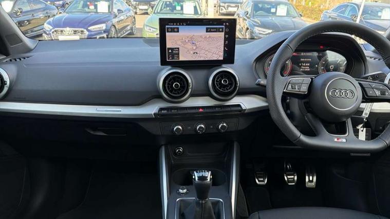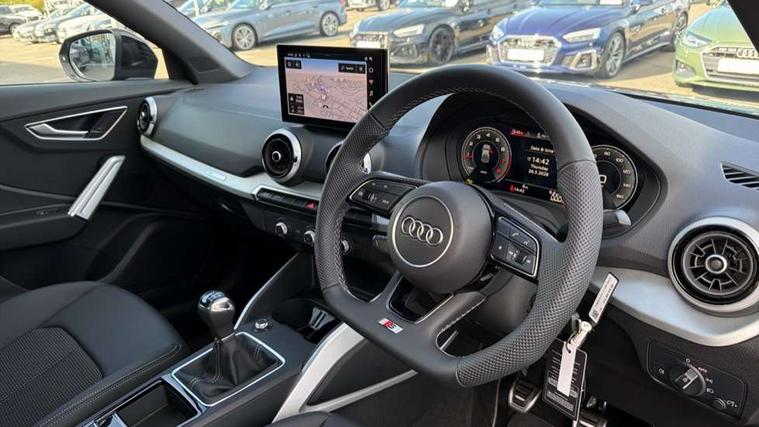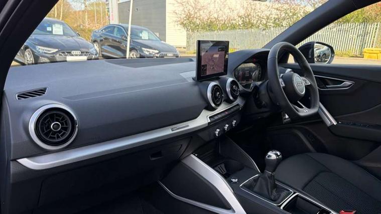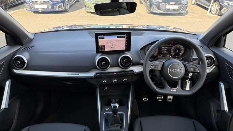 3D map display, Audi connect navigation and infotainment includes innovative services, Audi connect remote and control connects your vehicle to your smartphone, Audi drive select: power steering assistance + engine (modes: comfort, auto, dynamic, efficiency, individual), Audi smartphone interface - Apple carplay/Android Auto, USB connect, 2xSDXC card readers, voice control for navi, telephone, music and 3rd party apps, Audi virtual cockpit, Automatic start/stop system with recuperation, Bluetooth interface includes bluetooth audio streaming, Camera based traffic sign recognition, Cruise control, Distraction and Fatigue warning, E-call, Jukebox hard drive memory for music (10GB), Lane departure warning, MMI navigation plus with 8.8" touchscreen, Natural voice recognition, Power operated tailgate, Progressive steering, Rear parking sensors, Sport suspension, 6 passive loudspeakers, DAB Digital radio, USB type C port, Audi beam, Auto dimming rear view mirror, Black window trims, Bumper in full body colour paint finish, Electrically adjustable, folding, auto dimming and heated door mirrors with integrated LED side indicators, Front windscreen with grey tinted sunband, LED daytime running lights, LED headlights with dipped beam, high beam, position lights, indicators, LED rear lights, LED third brake light, Privacy glass - dark tinted rear and rear side windows from B-pillar backwards, Rear side wing doors, Rear wiper, Variable front intermittent wipers, Wheel arch trims in manhattan grey, 12V socket in front, 3 seat bench in 2nd row, 3 spoke flat bottomed multi-function leather sport steering wheel with S logo, 4-way electric lumbar support for front seats including manual seat height adjustment for both front seats, 60/40 split folding rear seat bench, Black carpets, Black cloth headlining, Front and rear head restraints, Front centre armrest, Front sport seats, Front/rear floor mats, Height/reach adjust steering wheel, Illuminated door sill trims with S logo, ISOFIX child seat mounting in front passenger and rear outer seats, Manual air conditioning, Single front passenger seat, Stainless steel pedals, Black styling pack - Q2, 3x3 point rear seatbelts, 6 airbags - Front, curtain and front side airbags, Electromechanical parking brake, Electronic stabilisation control including ABS, ASR and EDL, Front passenger airbag deactivation, Hill hold assist, Pre-sense front with pedestrian recognition, Seatbelt monitoring, Tyre pressure warning light with visual and acoustic warning, Warning triangle and first aid kit, Anti theft wheel bolts, Electronically operated child locks, Remote central door locking, Thatcham category 1 alarm, Aluminium interior element, Black dashboard, Gloss black centre console, Matt brushed aluminium trim inlays, Tool kit,