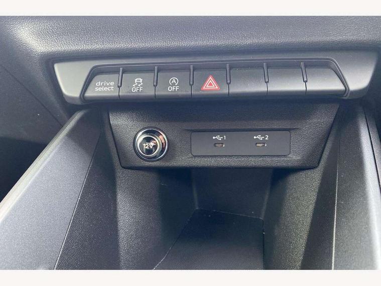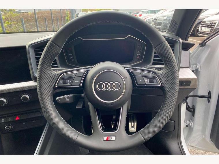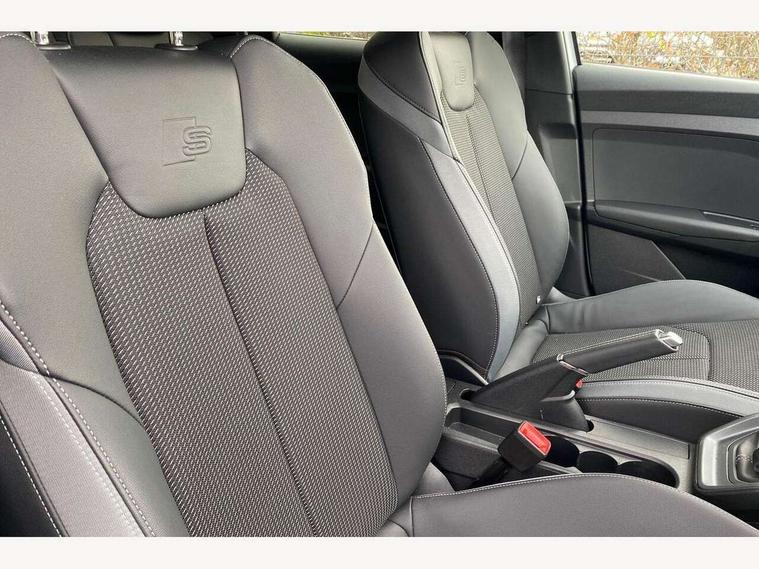 10.25" Digital instrument cluster display classis style instrument dials + speed, odometer, time, outside temperature, telephone menu + fuel level warning, Advanced driver attention and drowsiness monitor, Audi connect emergency call and service, Audi drive select, Audi remote connect and control, Bluetooth interface, Camera based traffic sign recognition, Cruise control, Driver's information system, Electromechanical power steering, Lane departure warning system, Rear parking sensor, Service interval indicator, Smartphone interface, Speed limiter, Start stop system with recuperation, Voice control system, Washer fluid level indicator, Sports suspension, 2 x USB type C connection points, 6 loudspeakers, DAB Digital radio, MMI radio plus with 10.1" colour MMI display screen and MMI touch, Auto dimming rear view mirror, Body coloured door mirrors, Door sill trims with aluminium inlays and S line logo in front, Electric front and rear windows, Electrically adjustable, heated, folding door mirrors with integrated LED side indicator, Front side air inlets in grained matt black and C frame in anthracite black, Headlight cleaning system, Heat insulating glass windscreen and side windows, Heated rear windscreen, High level LED brake light, LED daytime running lights, LED headlights with range control LED rear lights + dynamic rear indicators, Light and rain sensors, Privacy glass, Radiator grille and rear diffuser in matt anthracite black, Radiator protective grille frame in matt aluminium silver, Rear fog lights, Rear side wing doors, Rear wiper, Side front spoiler lips in grained matt black, 12V socket in centre console with two cup holders, 3 rear seats with headrests, 3 seat bench in 2nd row, 3 spoke leather multi-function plus steering wheel features S badging and grips in perforated leather with contrast stitching, 40:60 Split folding rear seat or fully collapsed, Black carpets, Black cloth headlining, Front and rear velour black floor mats with contrast stitching in fine silver, Front head restraints, Front passenger seat, Height and reach adjustable steering wheel, Interior lighting includes roof module, front and rear reading lights and right luggage compartment lighting, ISOFIX child seat mounting for front passenger and outer rear seats including top tether attachment point of outer rear seats, Leather gear knob with aluminium trim, Leather handbrake grip, Manual air conditioning, Manual height adjustable for driver and front passenger seat, Manually adjustable lumbar support in front seats, Stainless steel pedals, Ambient lighting package - A1, Luggage compartment pack - A1, S line exterior styling pack - A1 Sportback, 3x3 point rear seatbelts, Audi pre-sense front with pedestrain and cyclist recognition, Brake assist function, Driver and front passenger airbag with front side and head airbags, Electronic Stability Control including ABS, EBD, ASR and EDL, Front passenger airbag deactivation switch, Hill hold assist, Manual rear child locks, Seatbelt height adjustment for front seats, Seatbelt monitoring, Tyre pressure loss indicator, Warning triangle and first aid kit, Anti theft alarm, Anti theft wheel bolts, Immobiliser, Remote control key with safelock, Aluminium trim for control switches, air vents and digital instrument cluster, Black dashboard, Silver grey inlays polygon structure in diamond paint finish, Structured grey accent surfaces insert of air vents, interior door handle recesses and centre console in quartz paint finish,